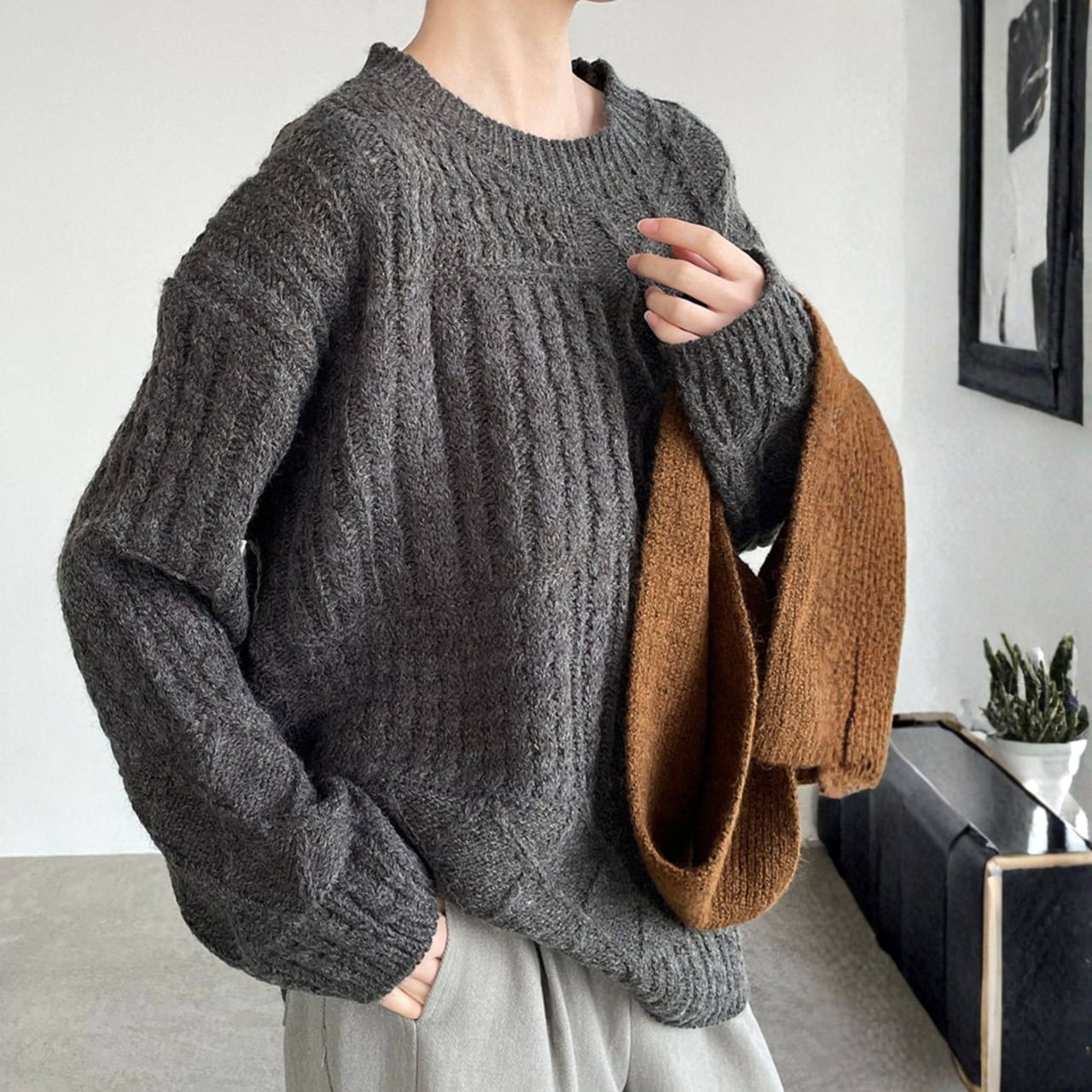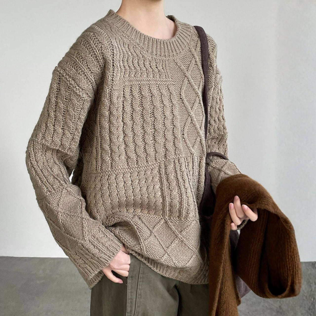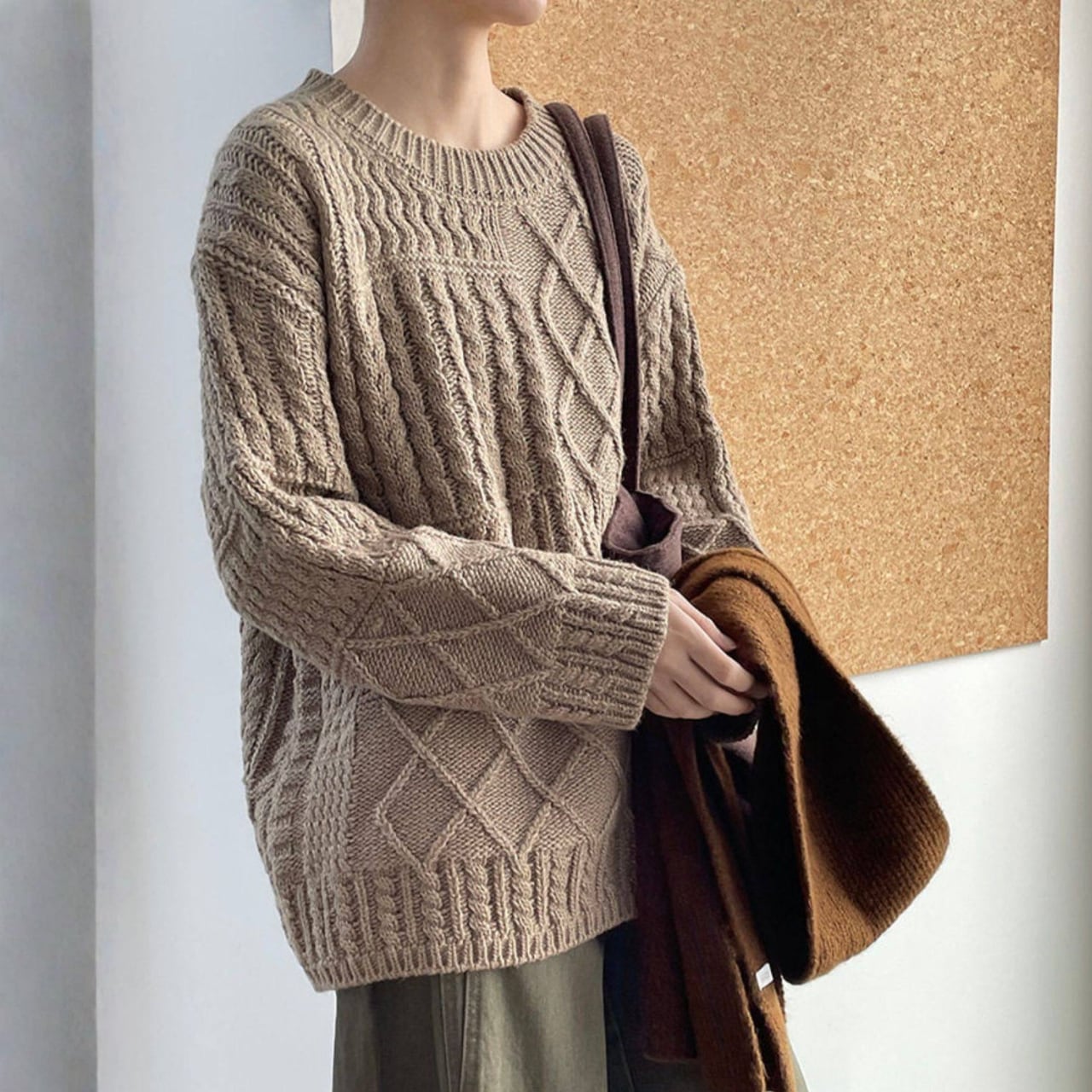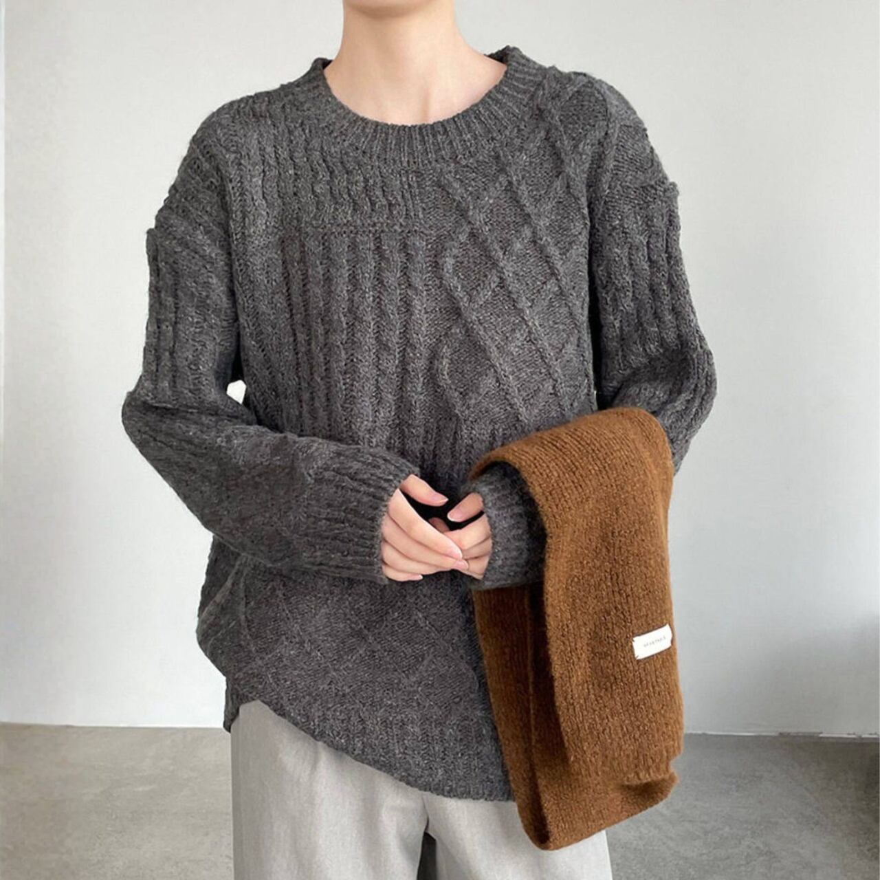 リラックス感漂うケーブルニット。
