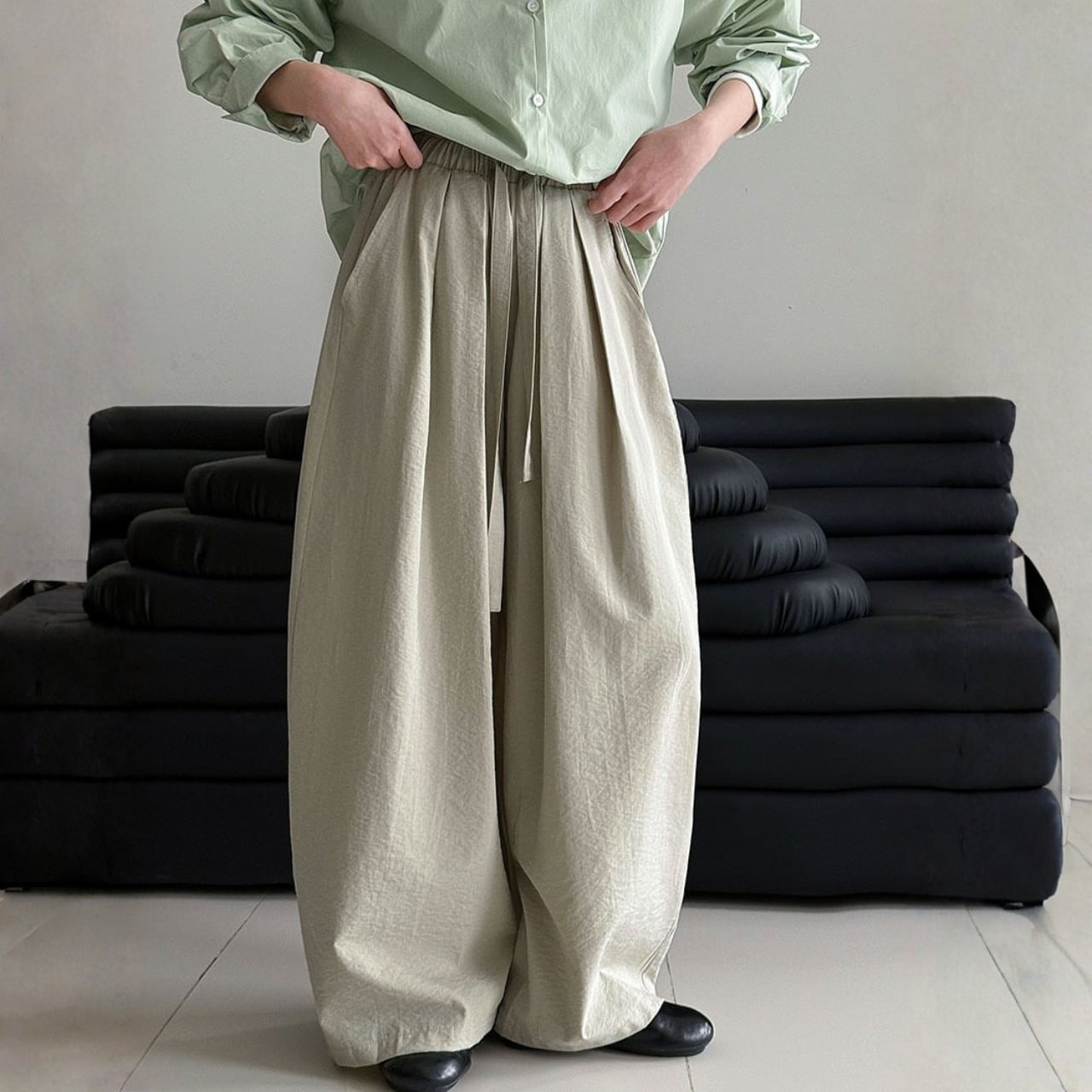 ドローストリング ゆったりワイドパンツ N00259