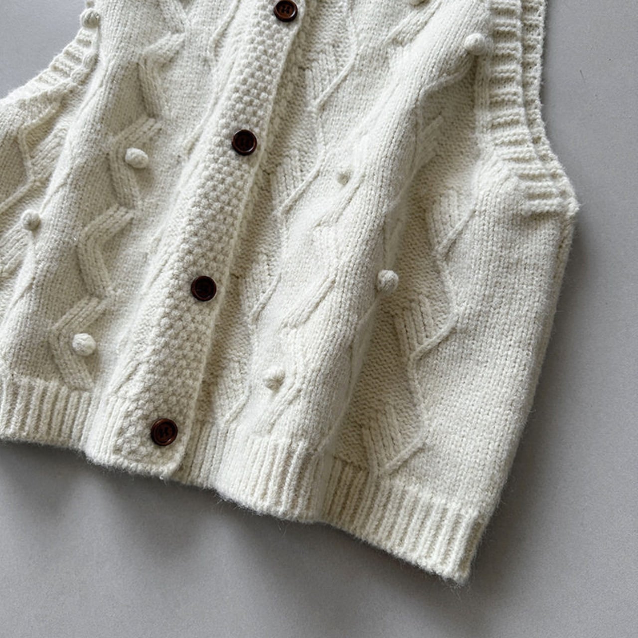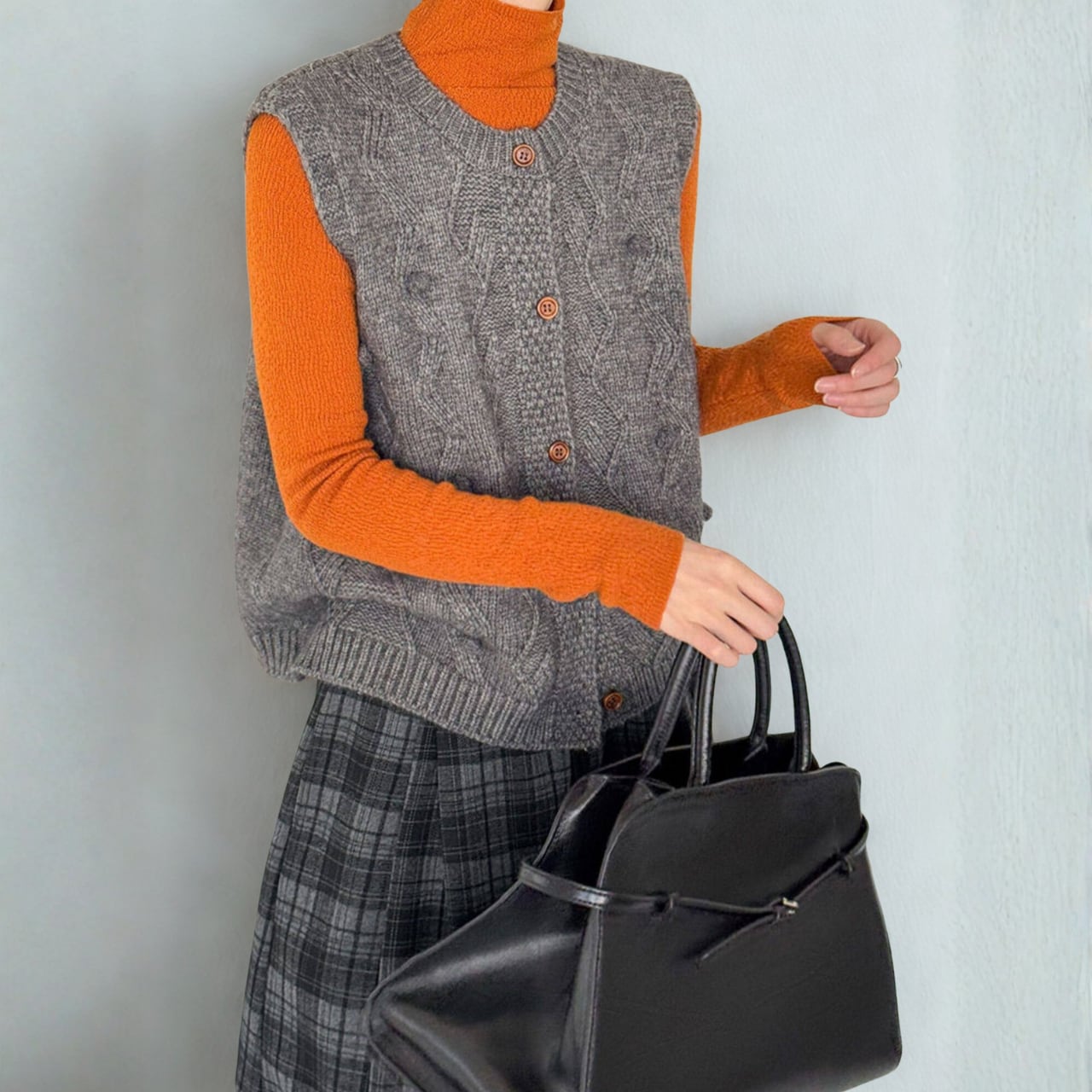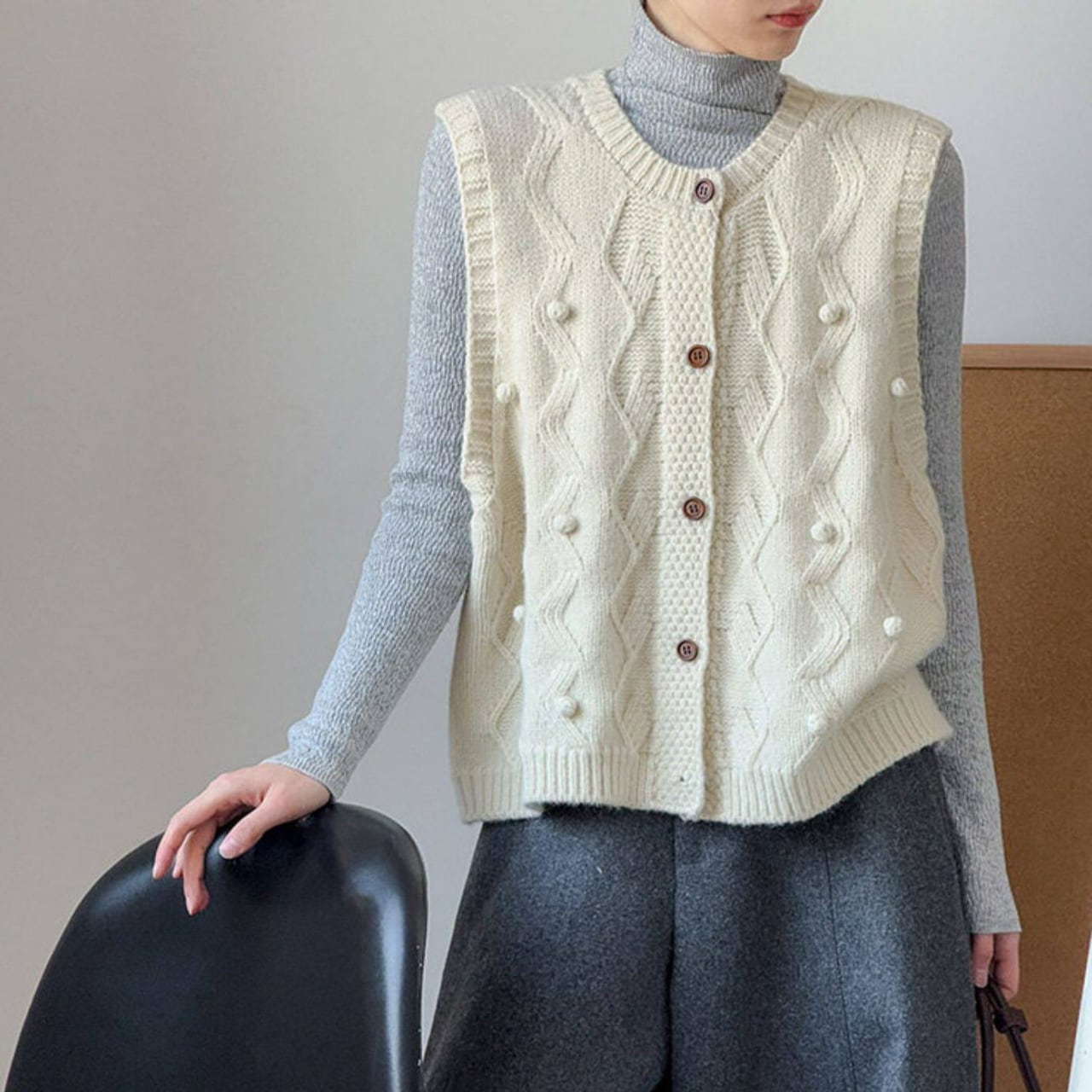 繊細な編みデザインがアクセントになったニットベストは、いつものコーディネートに新鮮さをプラスします。
