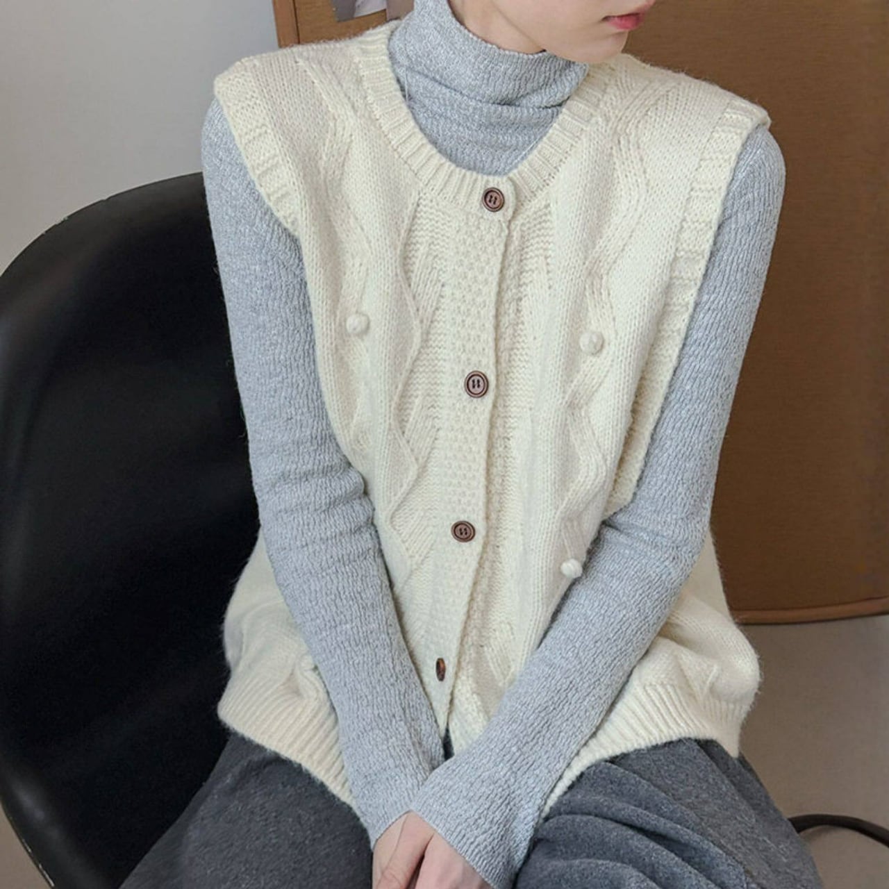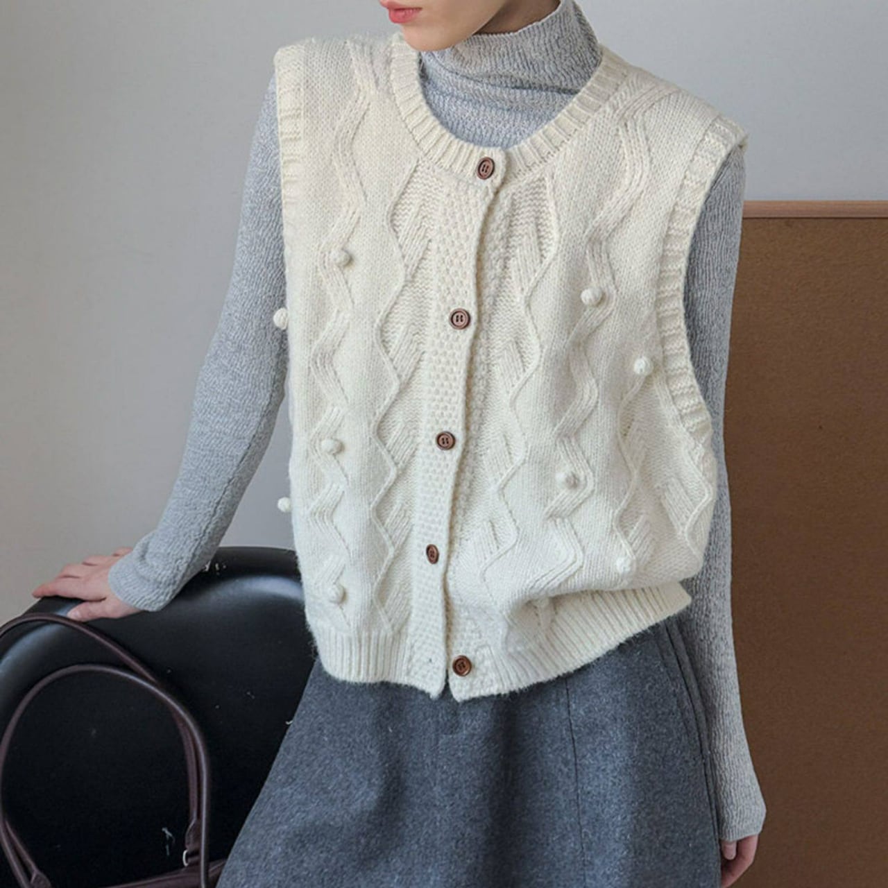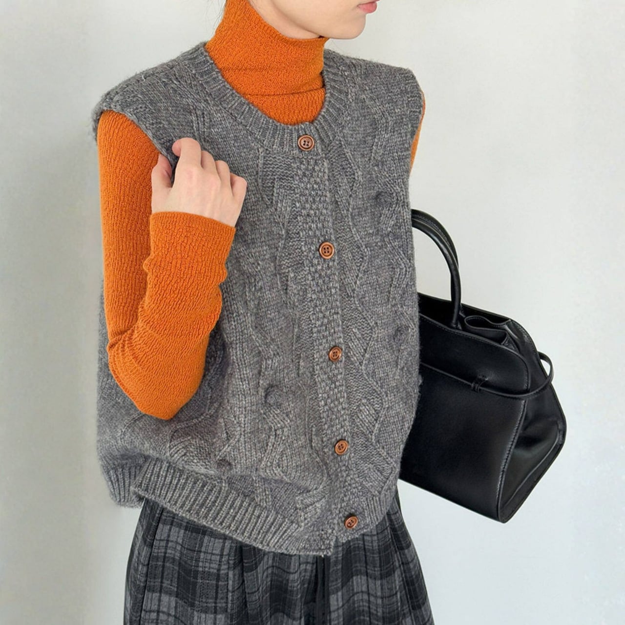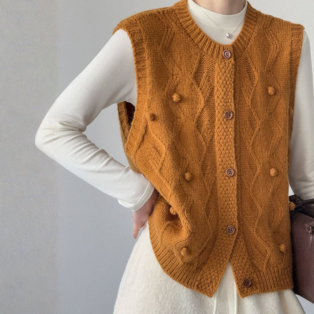 繊細な編みデザインがアクセントになったニットベストは、いつものコーディネートに新鮮さをプラスします。
