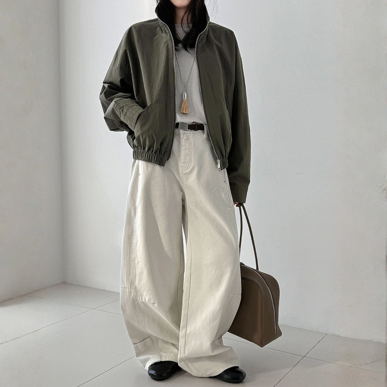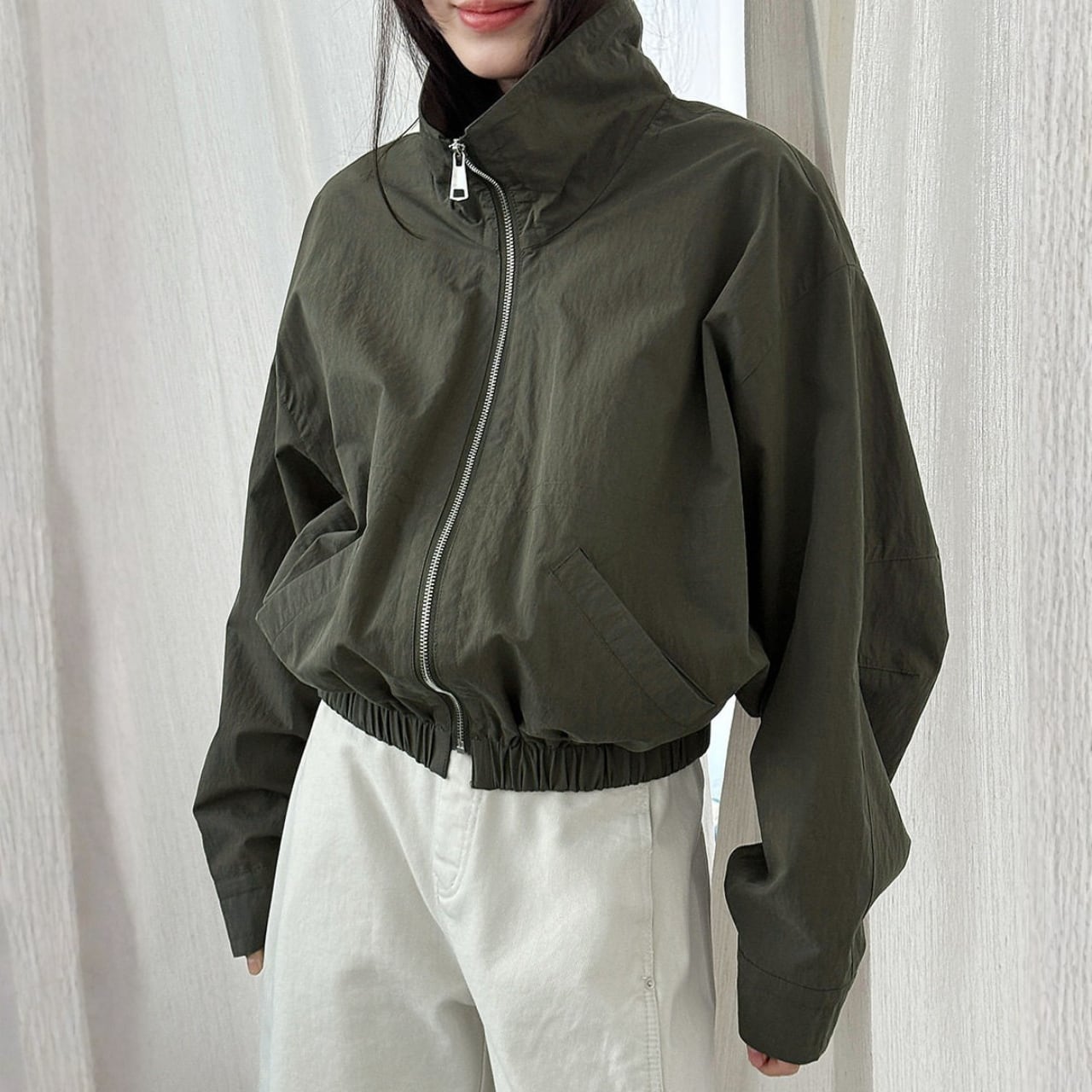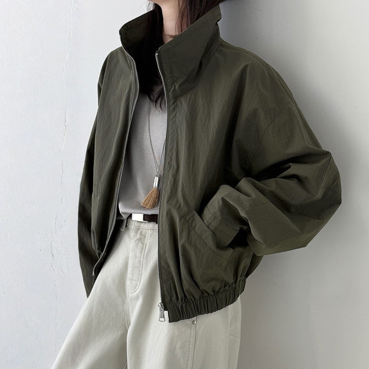 ジップアップ ドロップショルダーゆったりジャケット N00272