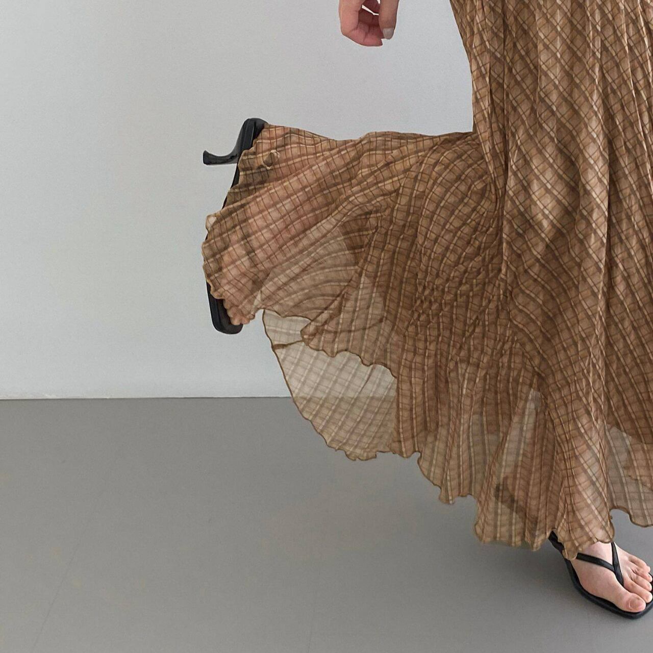 歩くたびにふわりと揺れるフレアが、女性らしさを引き立てます。