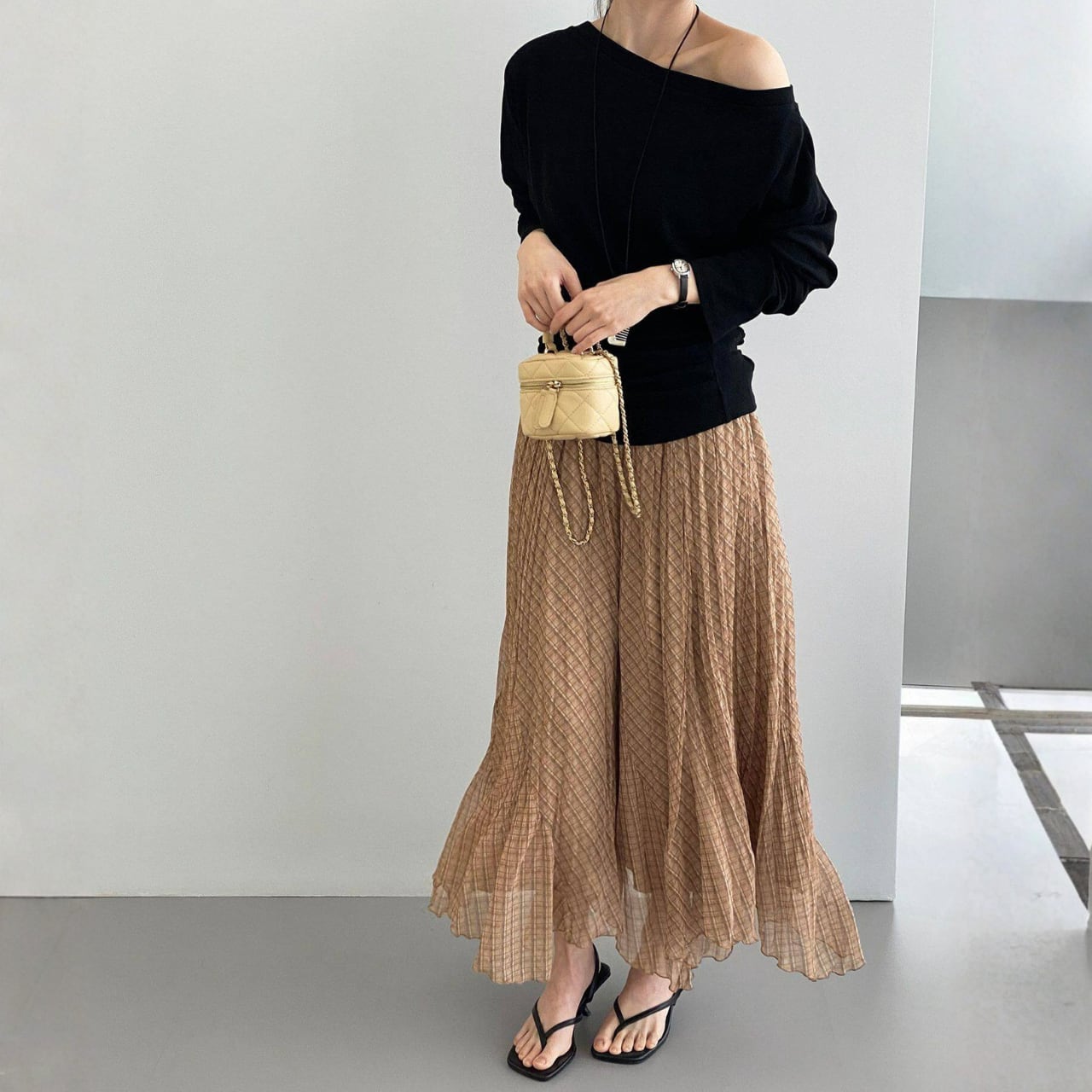 シンプルなトップスと合わせるだけで、こなれた大人カジュアルスタイルが完成します。