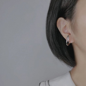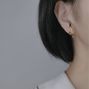 2連のフープが耳元を飾るイヤーカフ(片耳用)。シンプルなデザインなので、お手持ちのアクセサリーとも合わせやすく、様々なスタイリングをお楽しみいただけます。オフィススタイルから、休日のカジュアルスタイルまで、シーンを選ばず活躍するアイテムです。