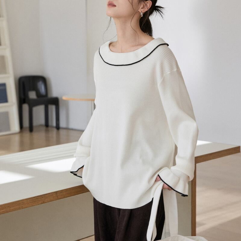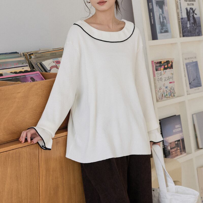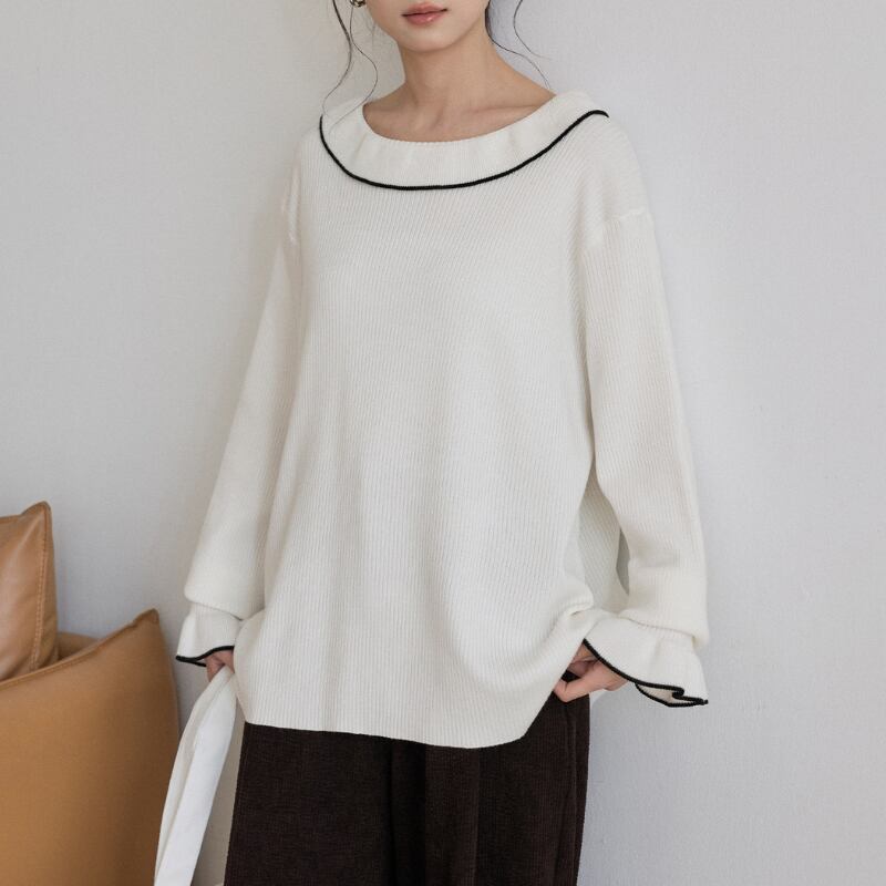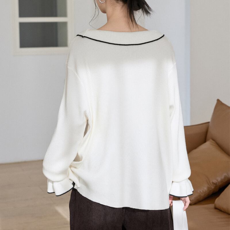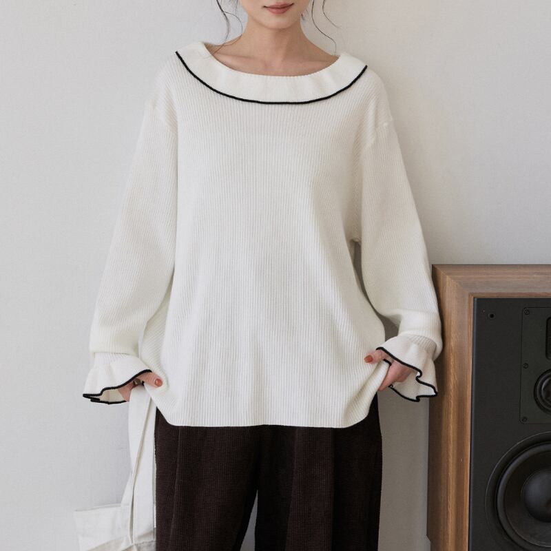 首元と袖口の配色トリムが、さりげないアクセントを加えます。