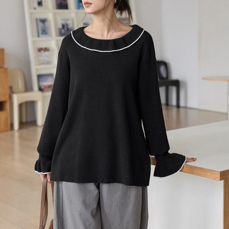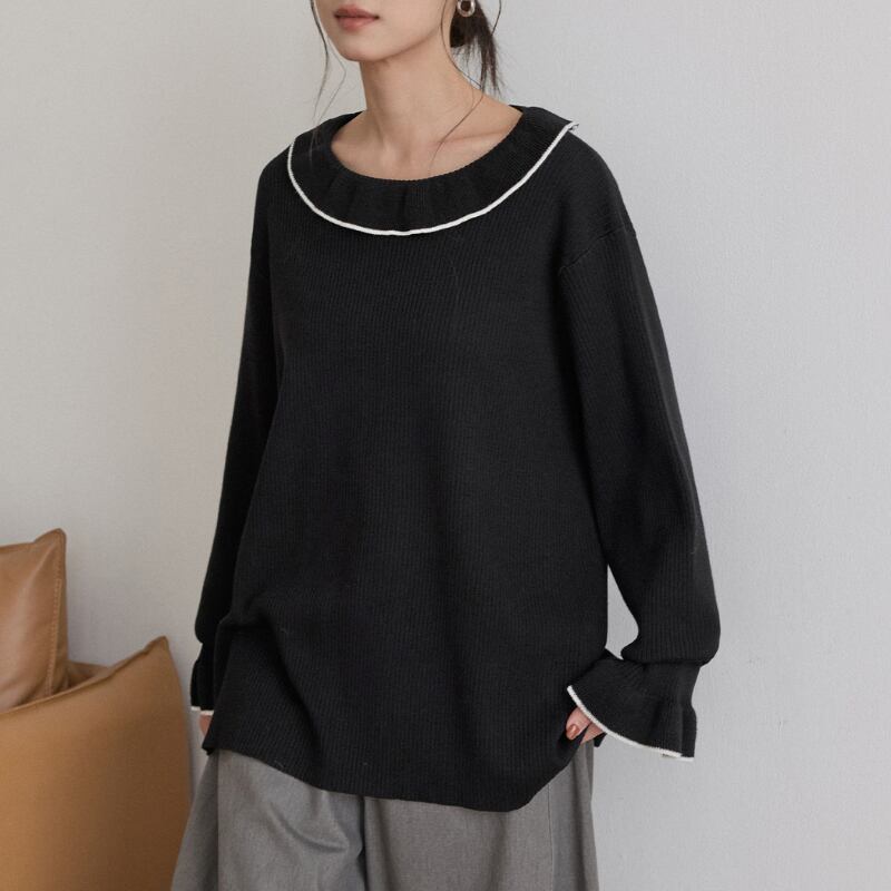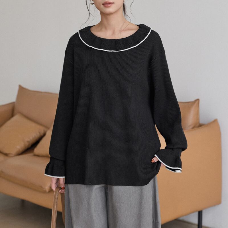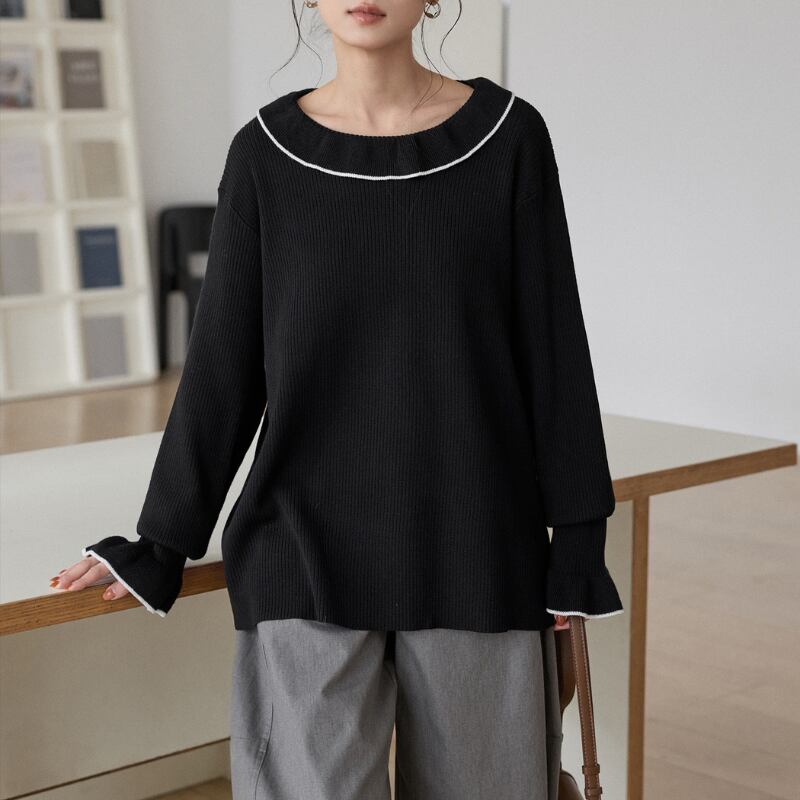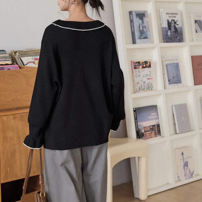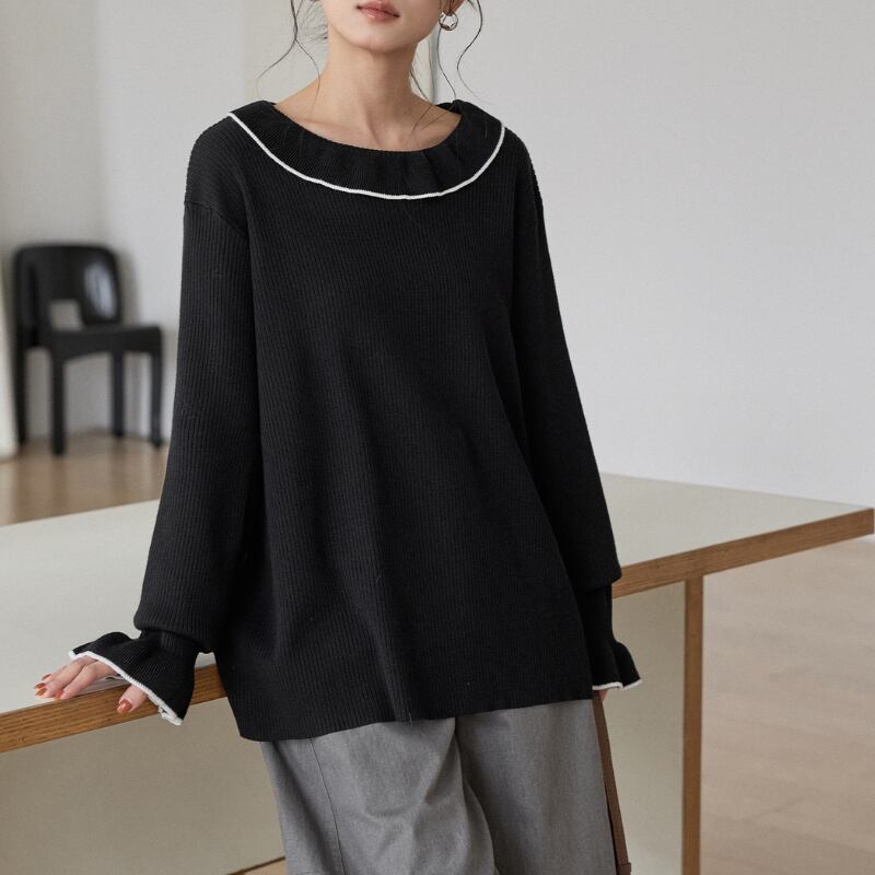 首元と袖口の配色トリムが、さりげないアクセントを加えます。