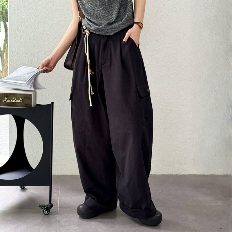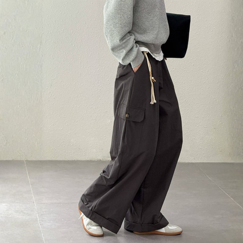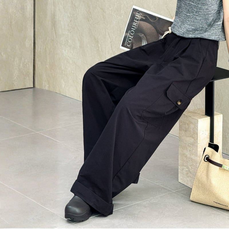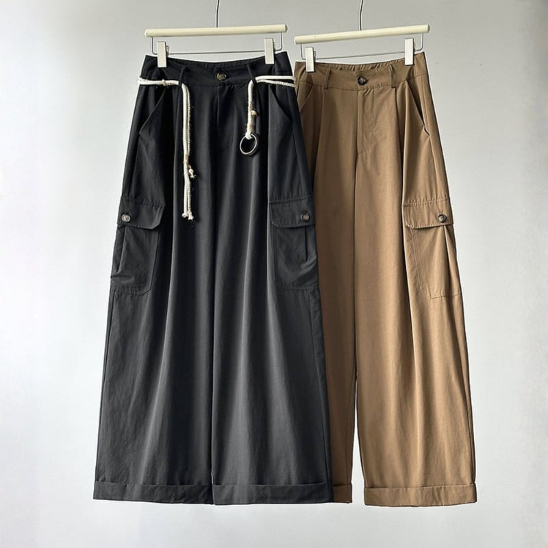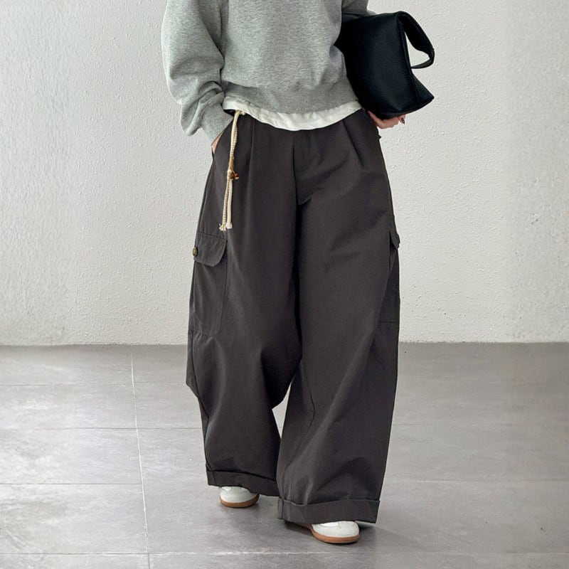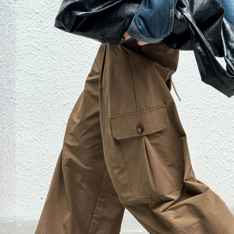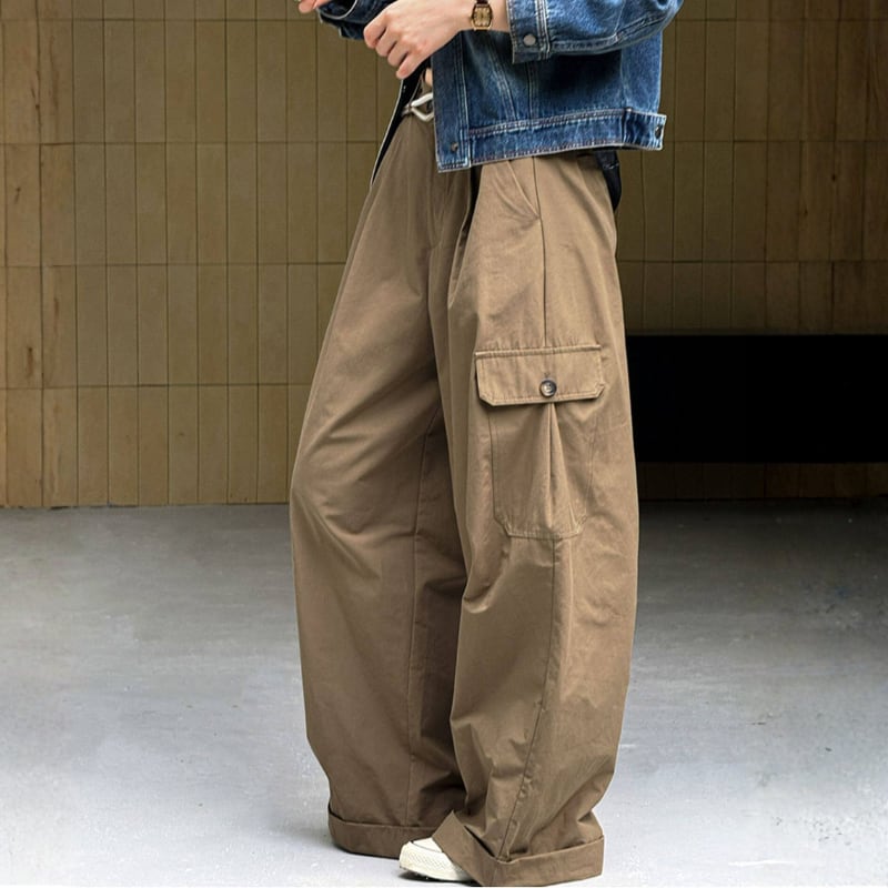 ゆったりとしたワイドレッグデザインで、リラックスした着心地のカーゴパンツ。