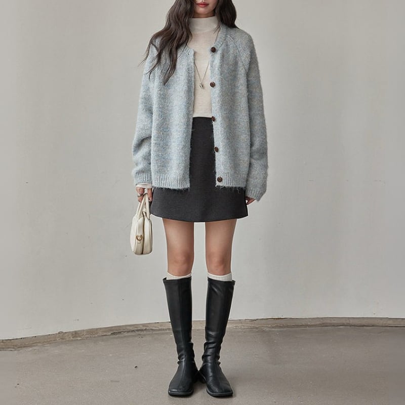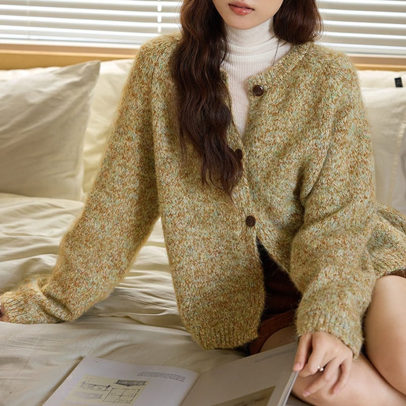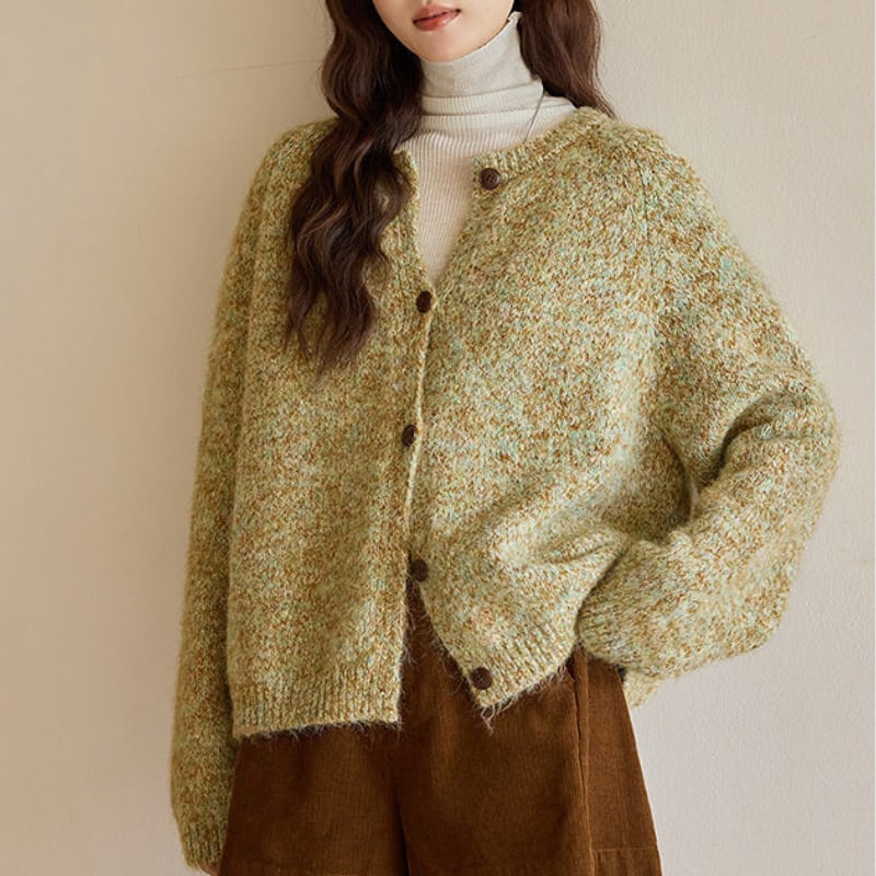 ボタンフロント ゆったりニットカーディガン N00297