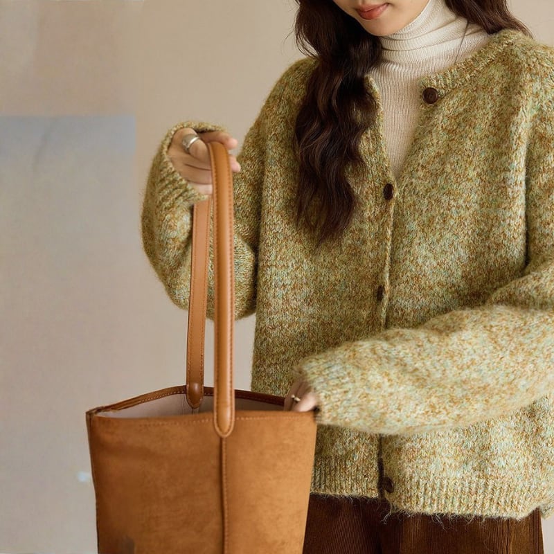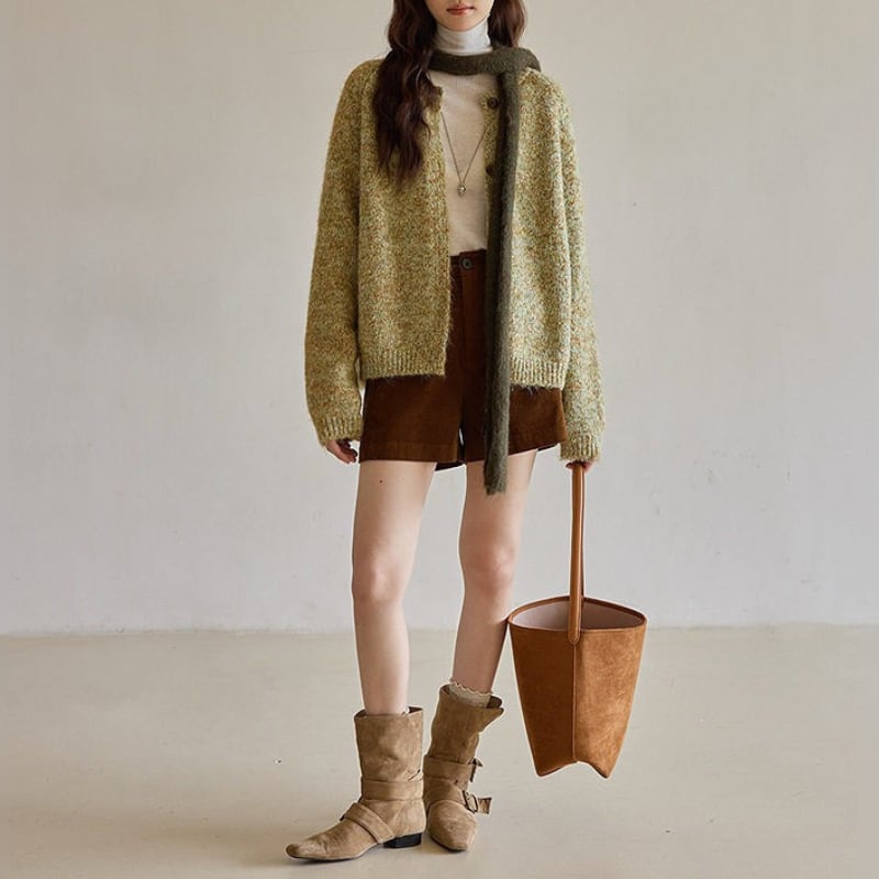 暖かみのあるニット素材を使用した、オーバーサイズカーディガン。