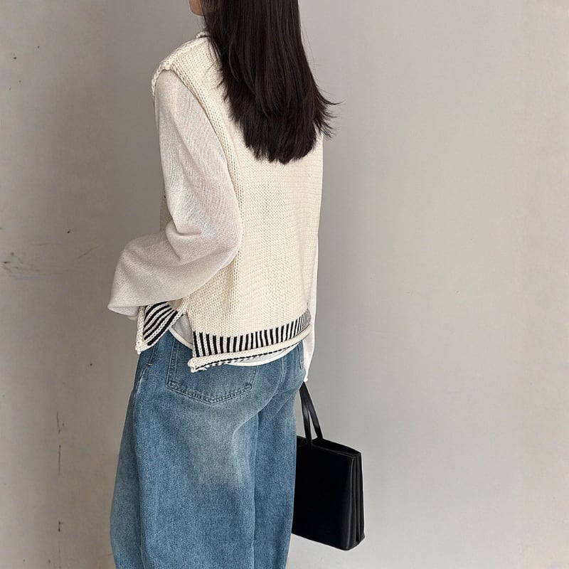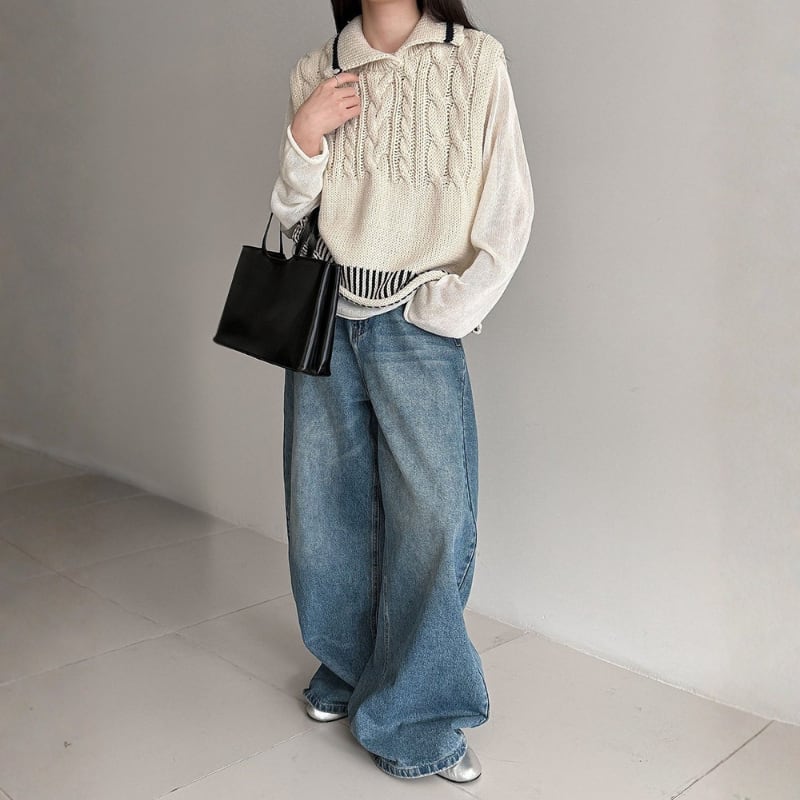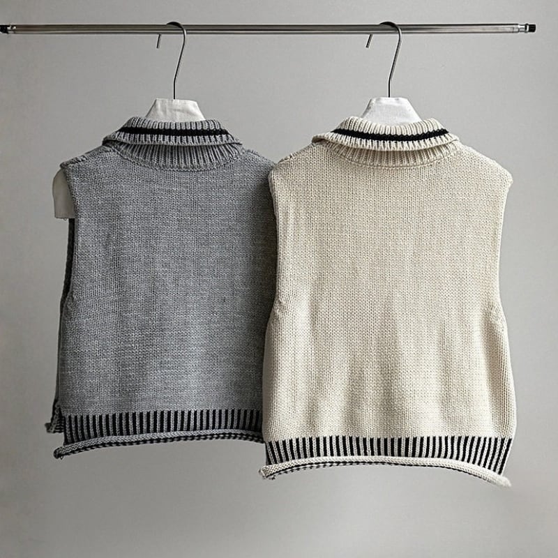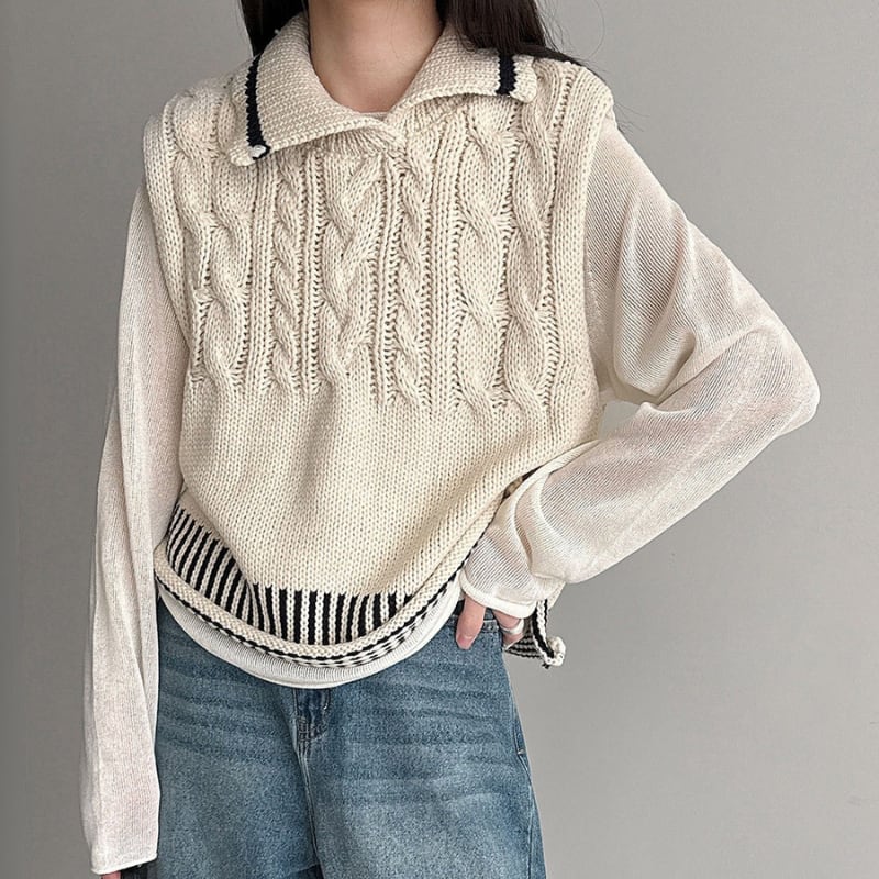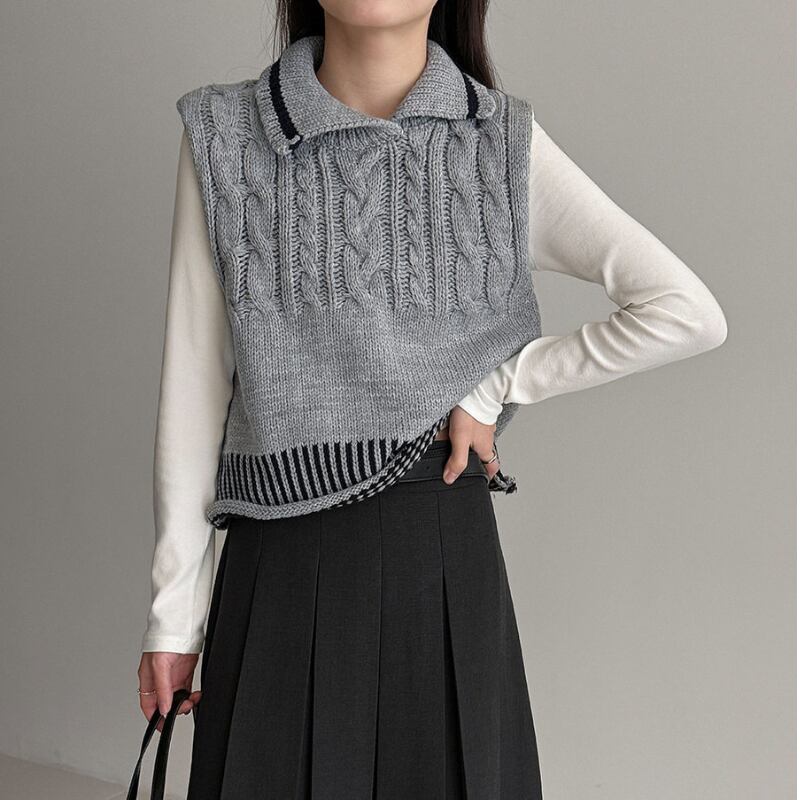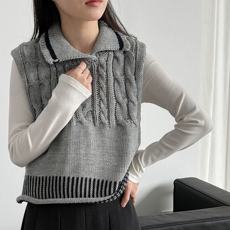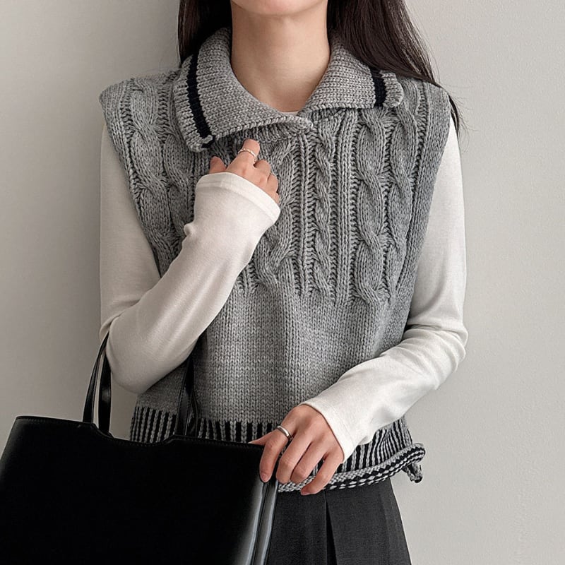 ケーブル編み オープンカラーニットベスト N00299