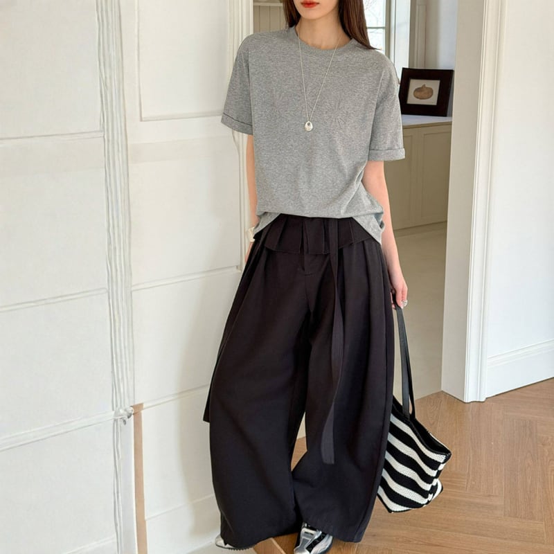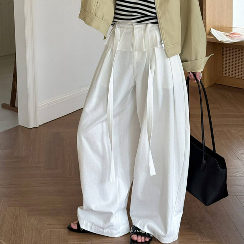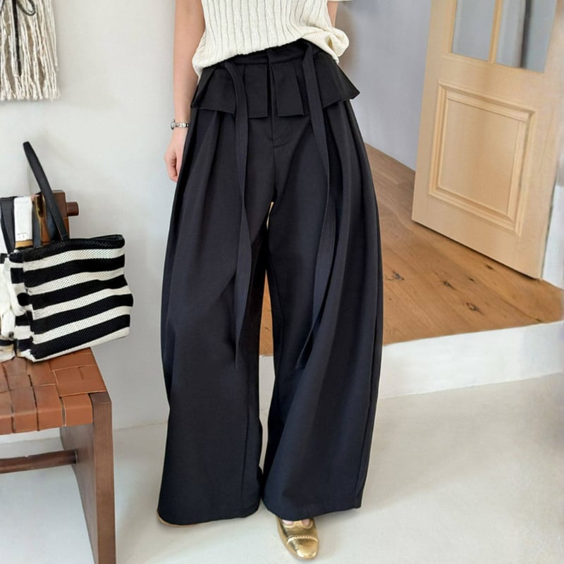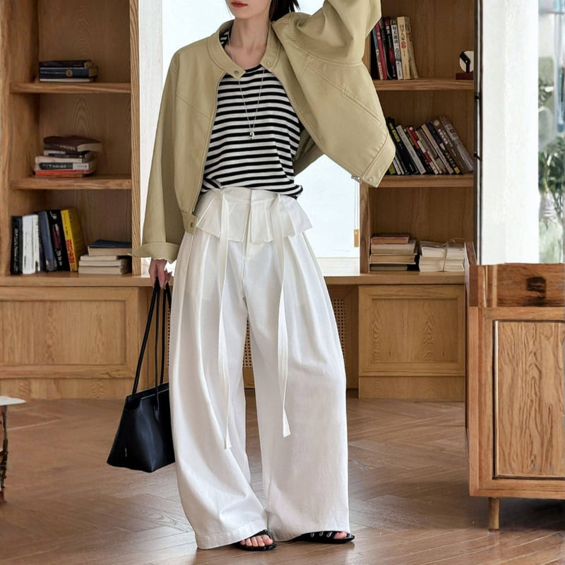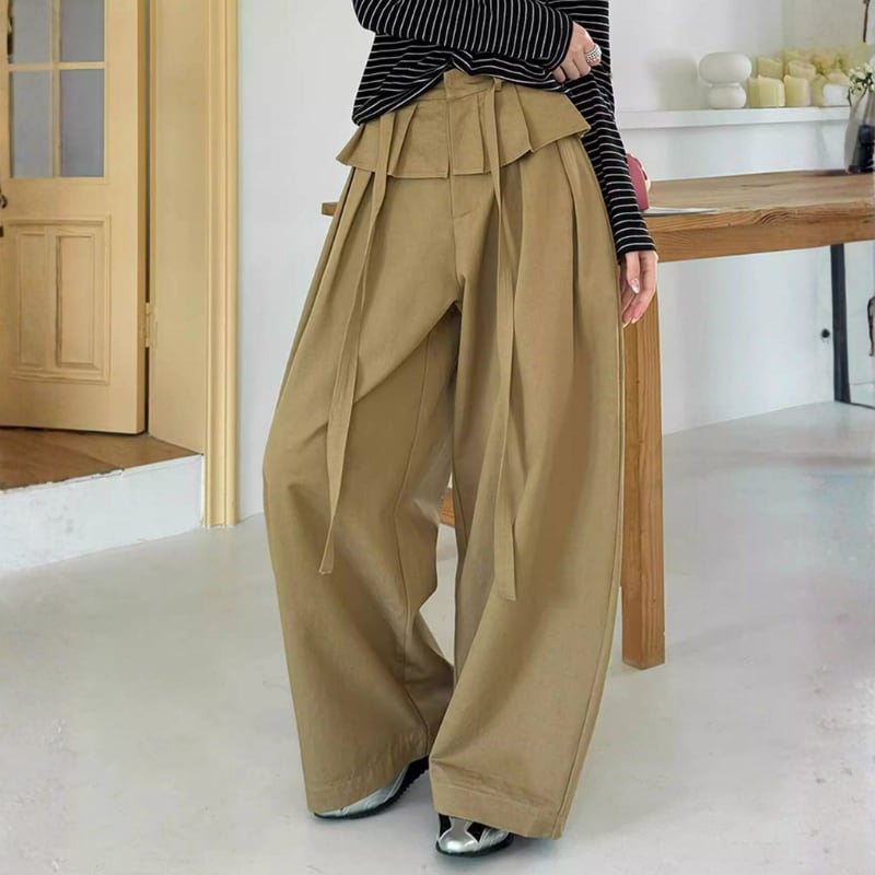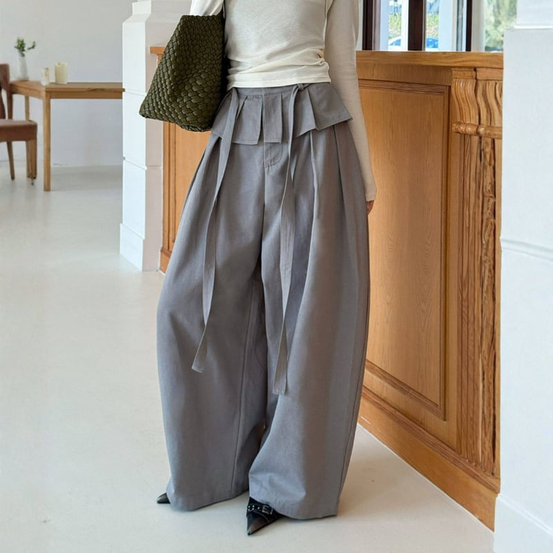 ウエストリボン ペプラムワイドパンツ N00304