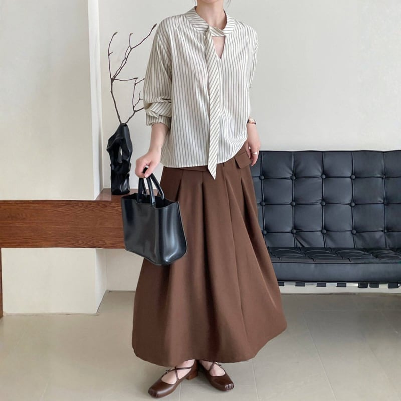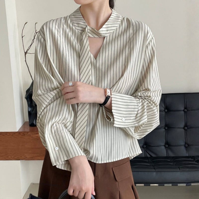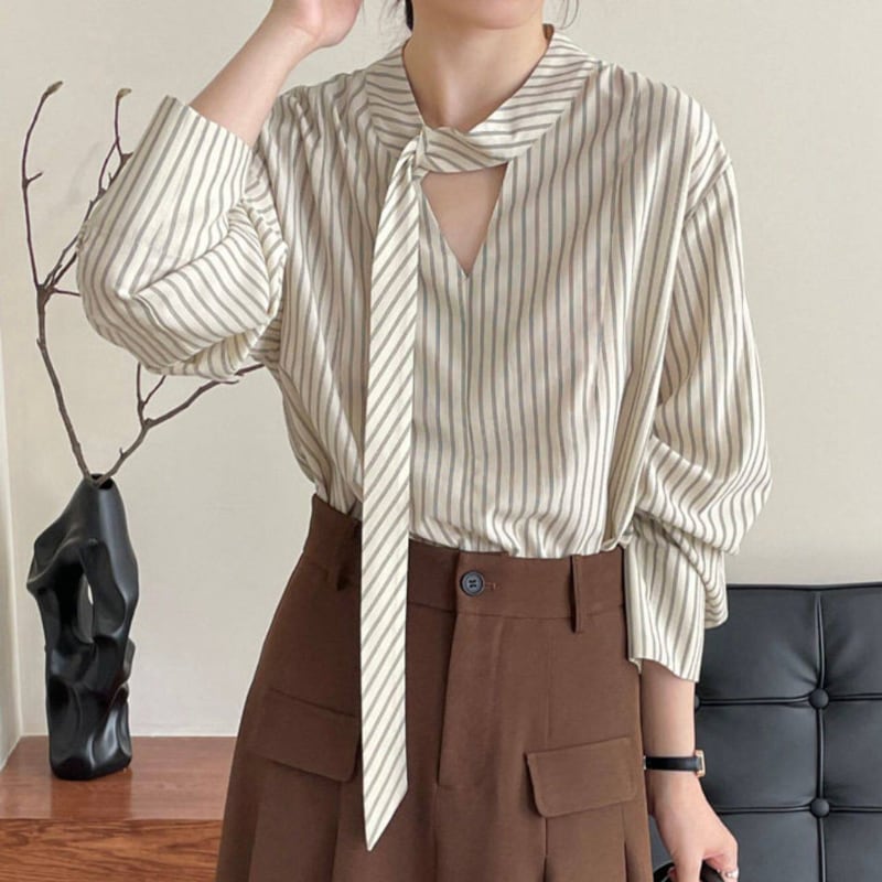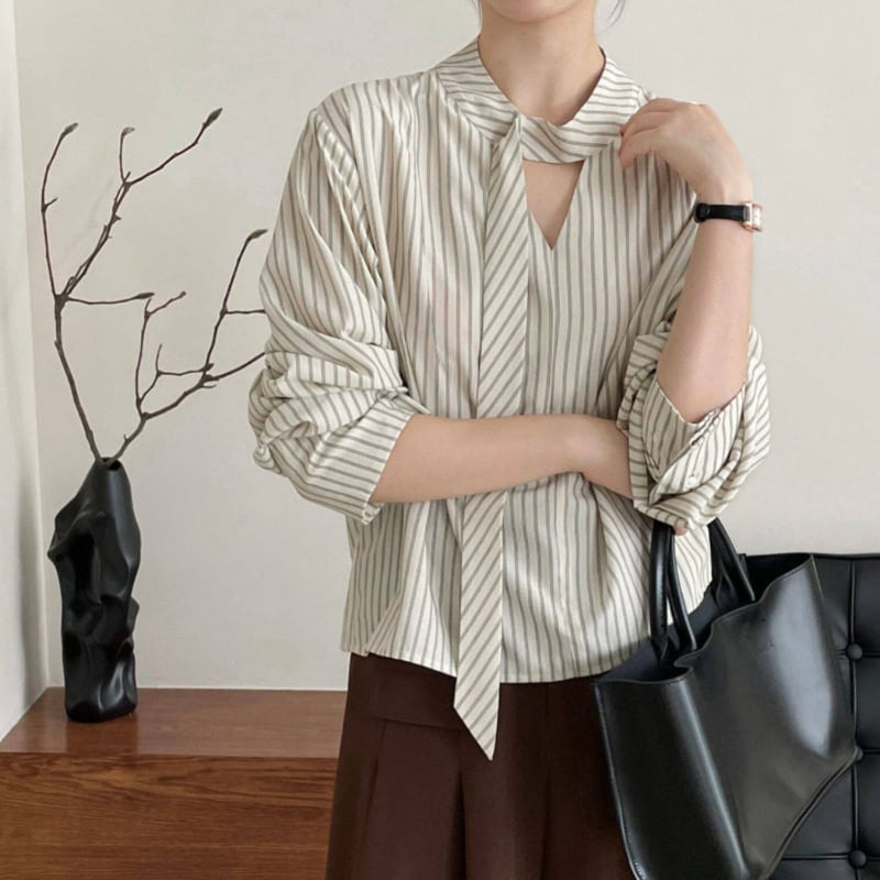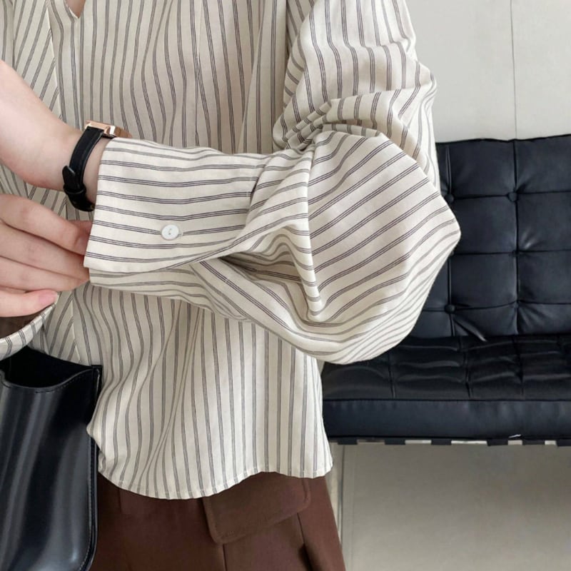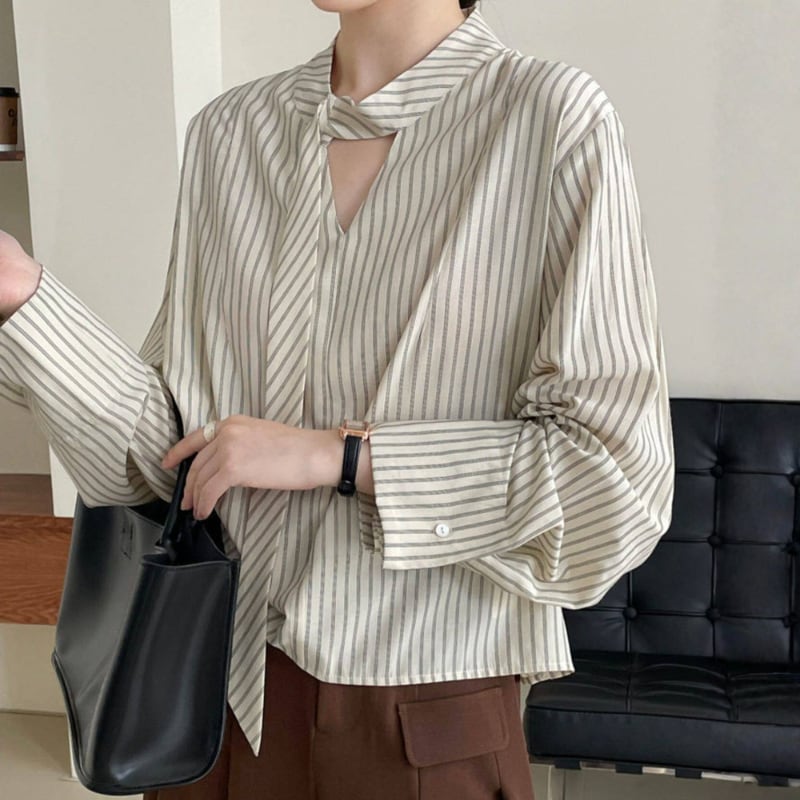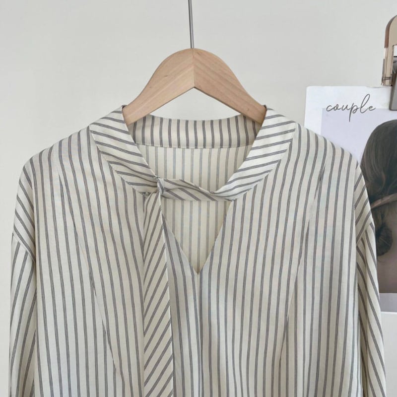 ストライプ柄が爽やかな印象を与えるブラウス。