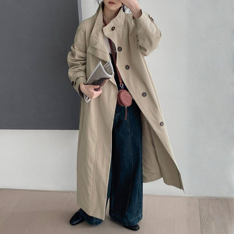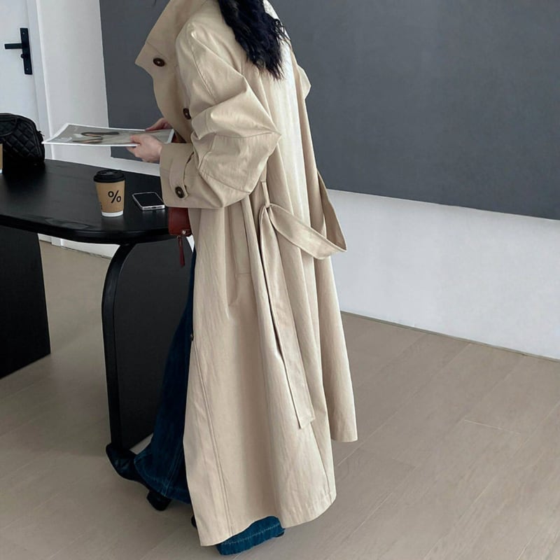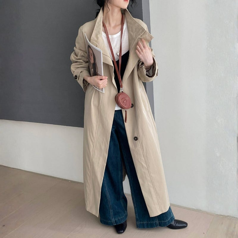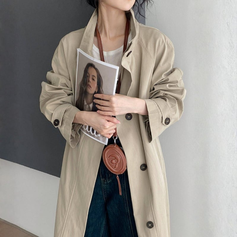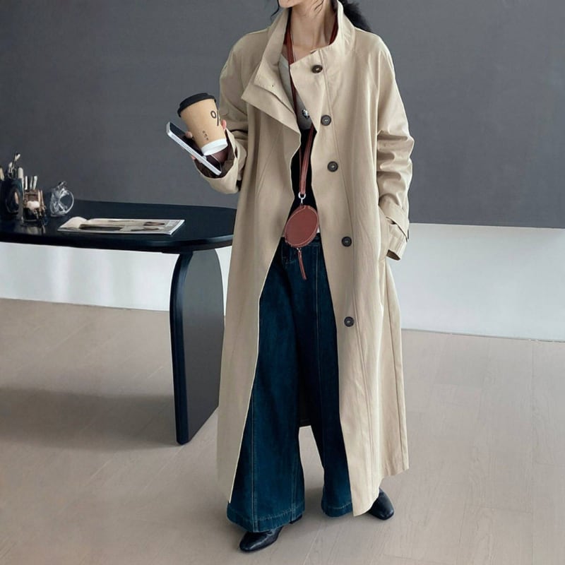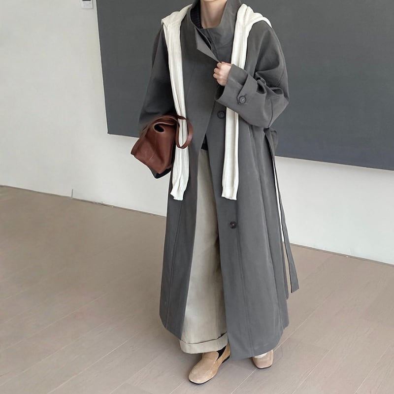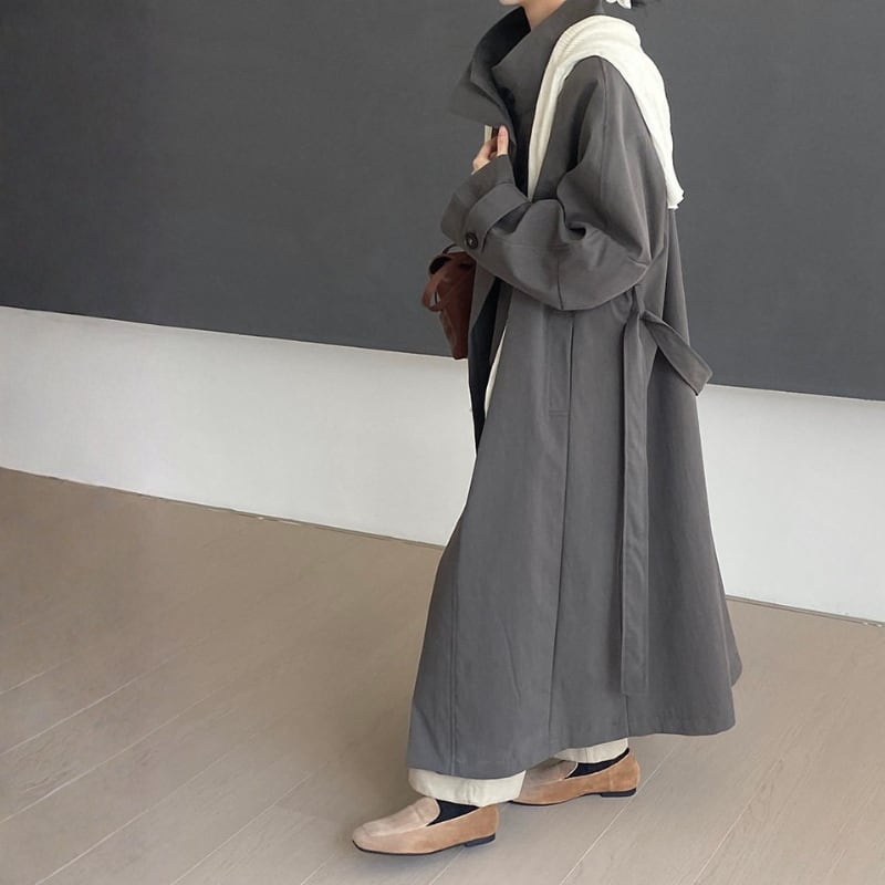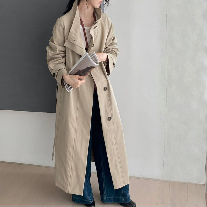 スタンドカラー ロングトレンチコート N00308