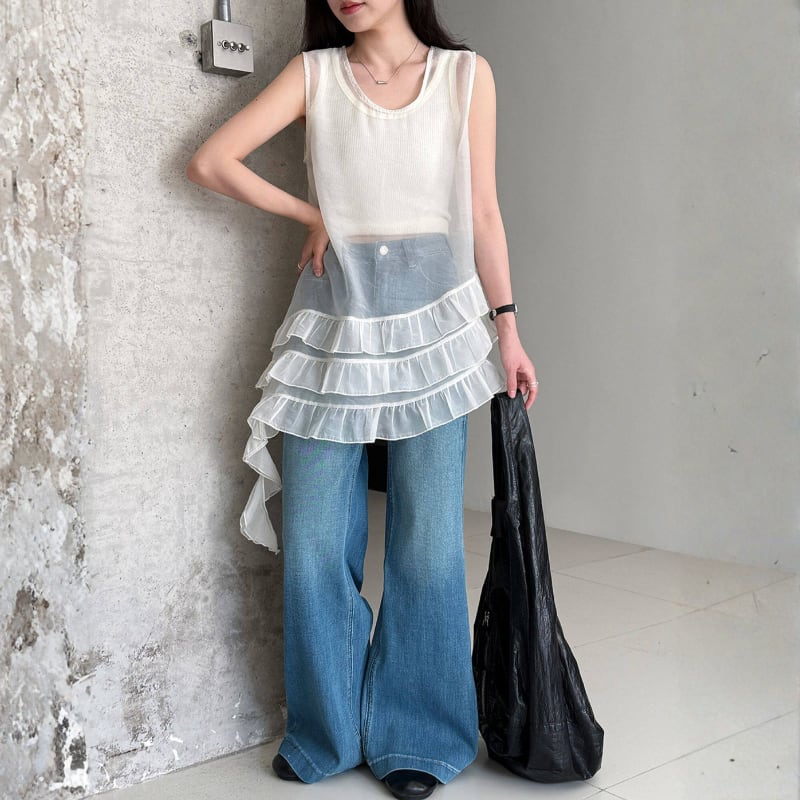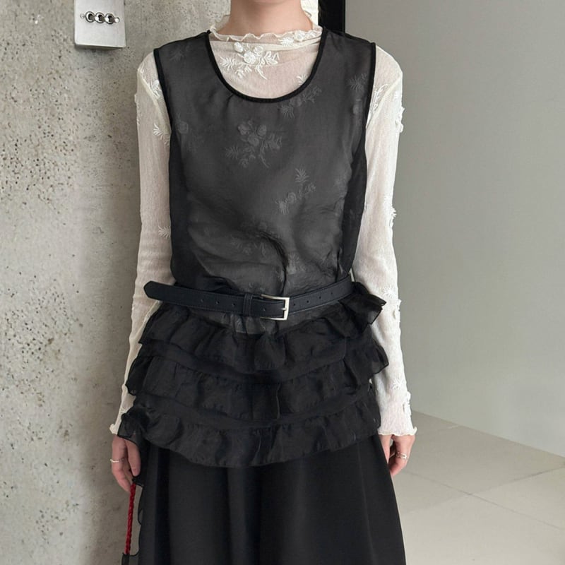フリルがアクセントになった、デザイン性の高いトップスです。