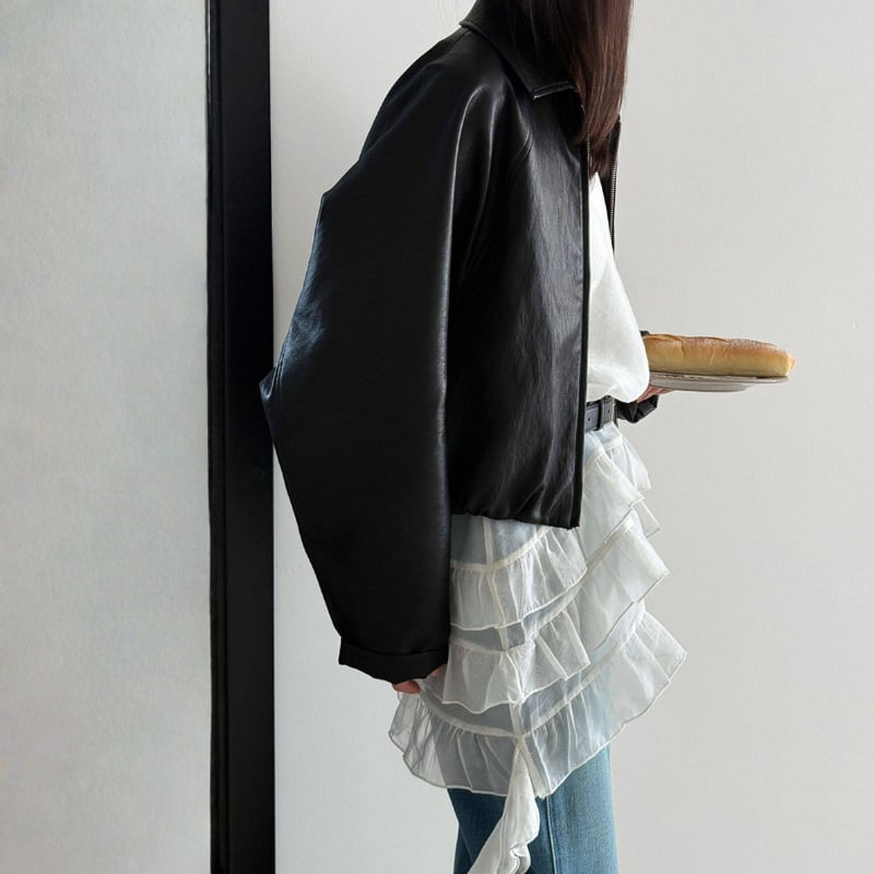 アシンメトリーなヘムラインが、着こなしにユニークな表情を加えます。