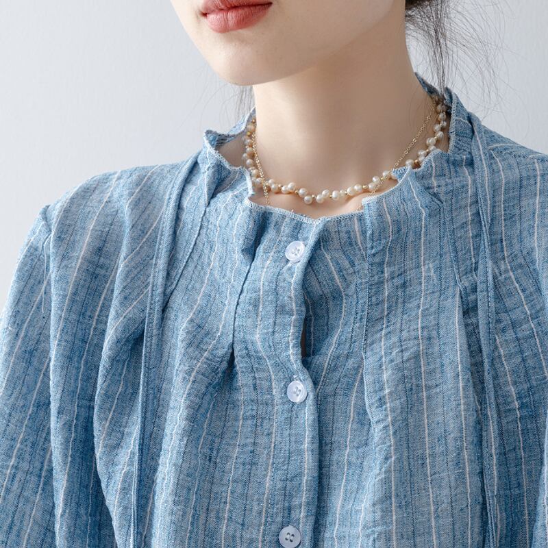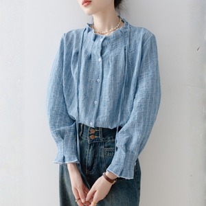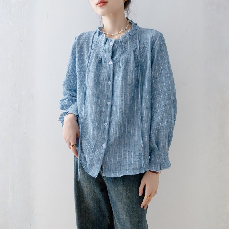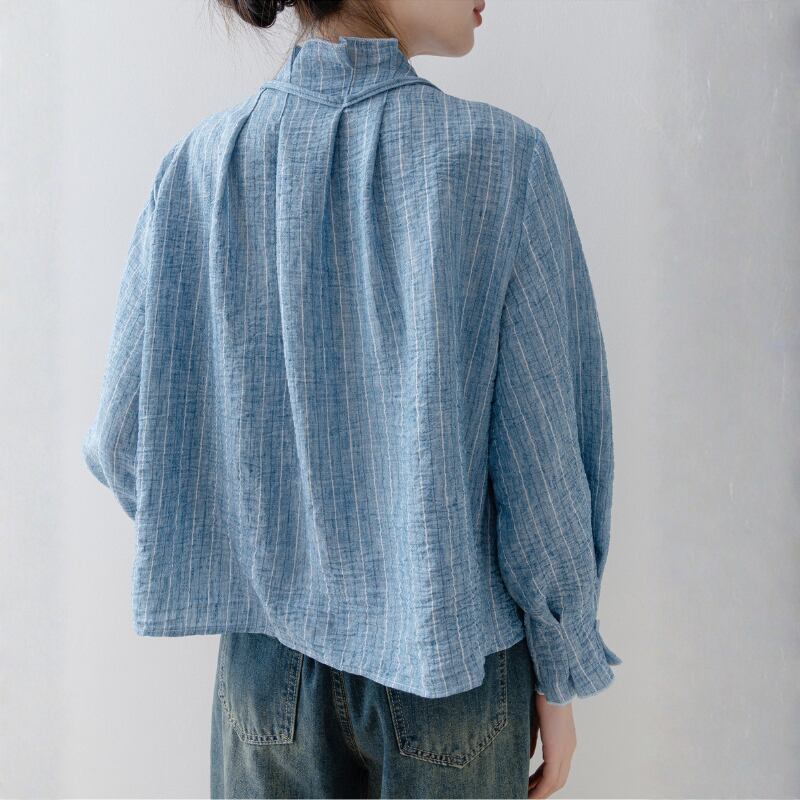 ギャザーネック ストライプシャツ N00322