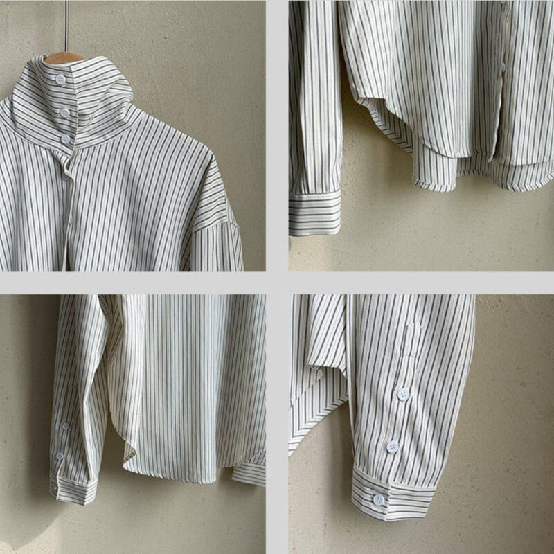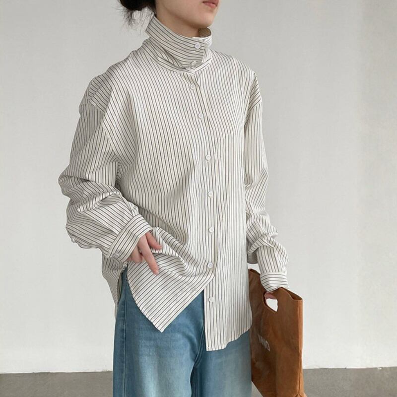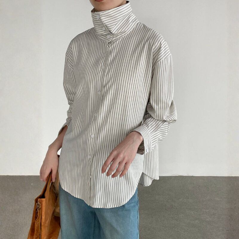 ストライプ柄 ハイネックシャツ N00327