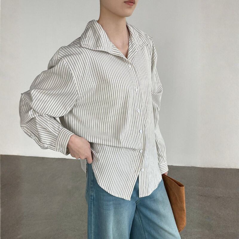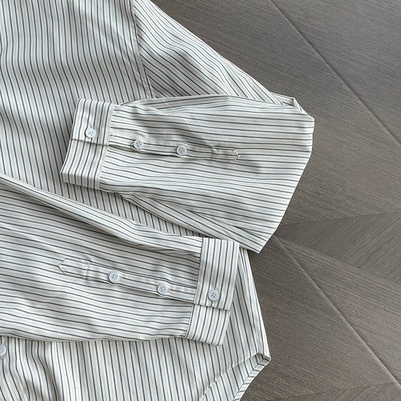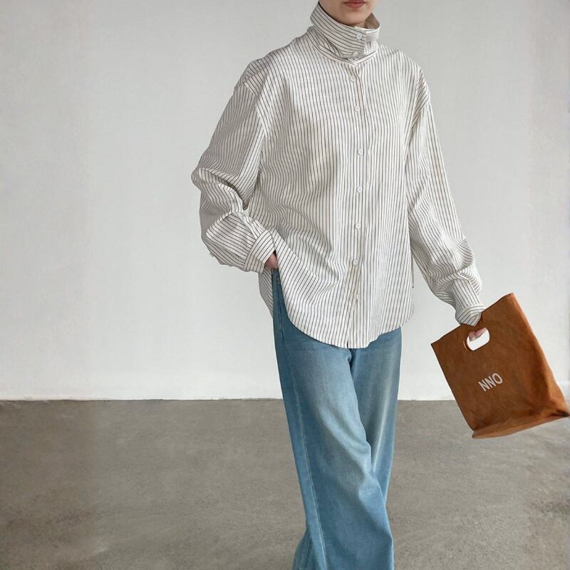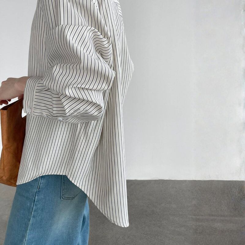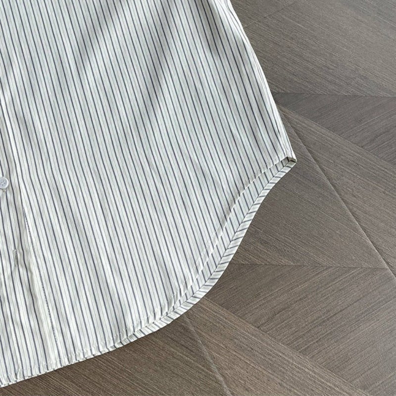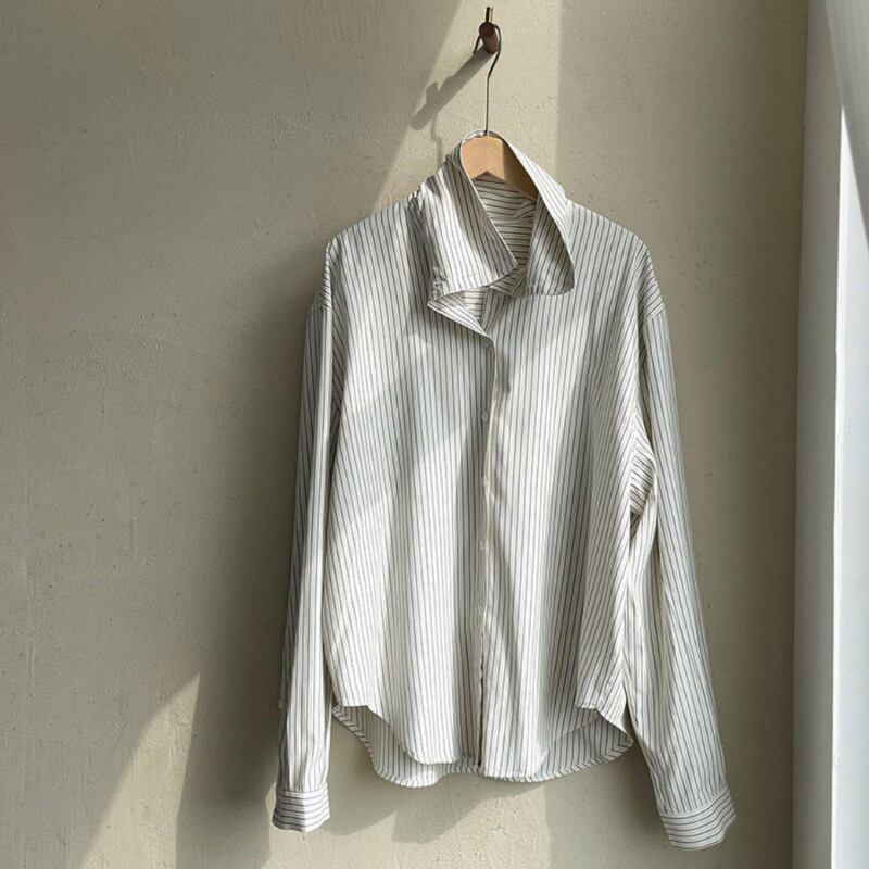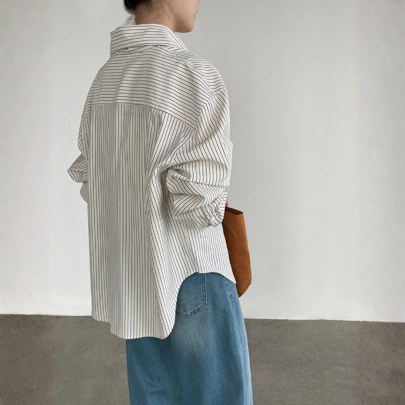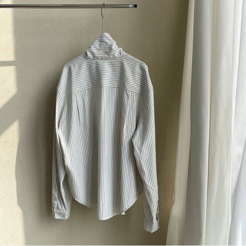落ち着いたストライプ柄の長袖シャツは、大人のカジュアルスタイルにぴったりのアイテムです。
