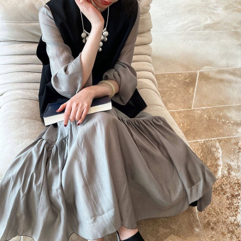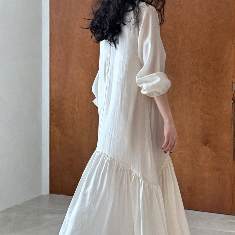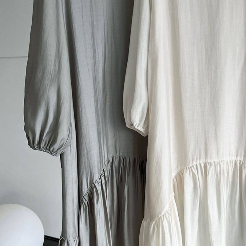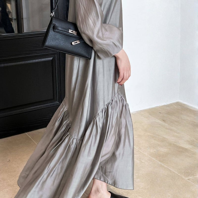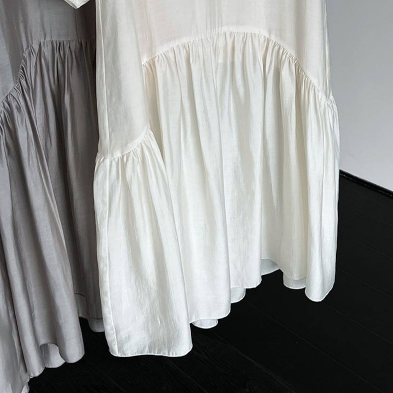 裾にかけて広がるフレアデザインが動くたびに軽やかに揺れ、女性らしい柔らかさをプラスします。