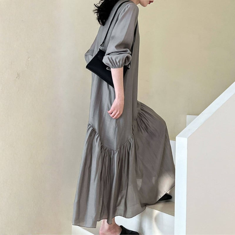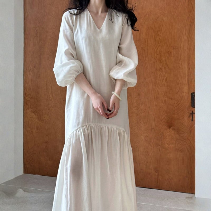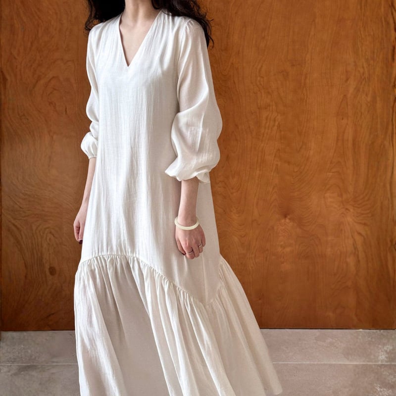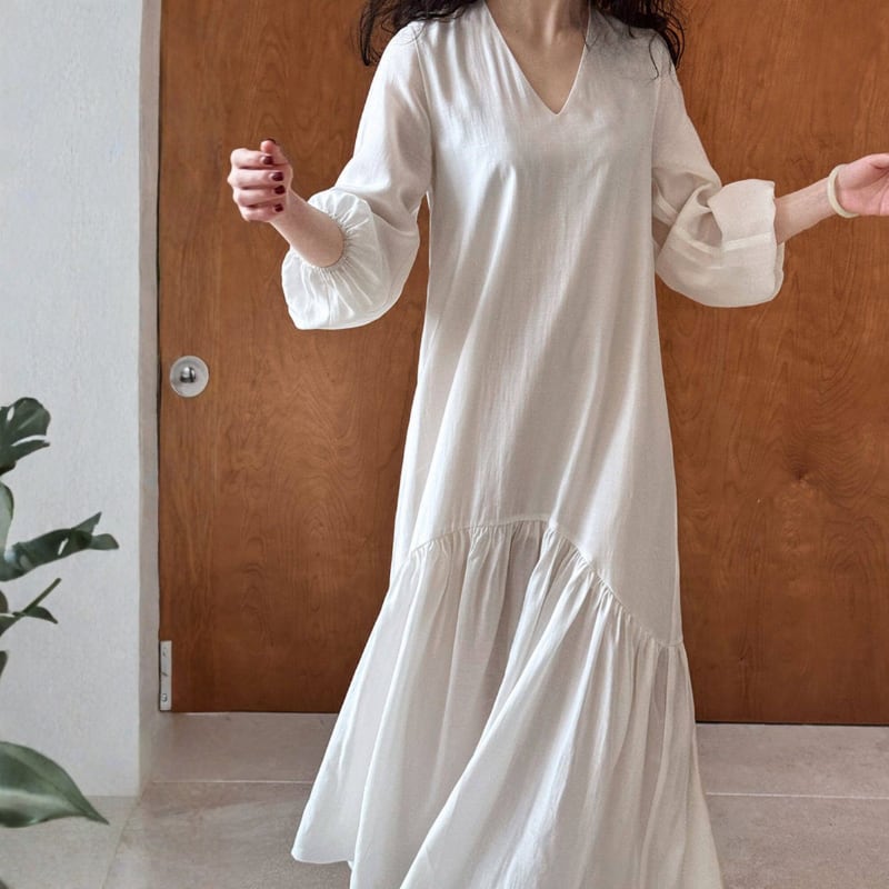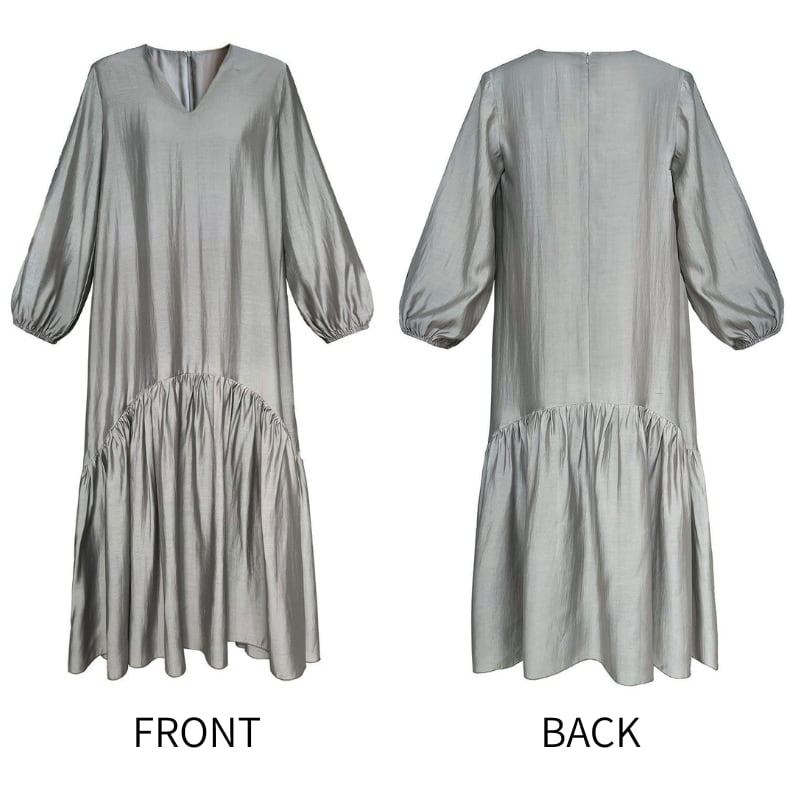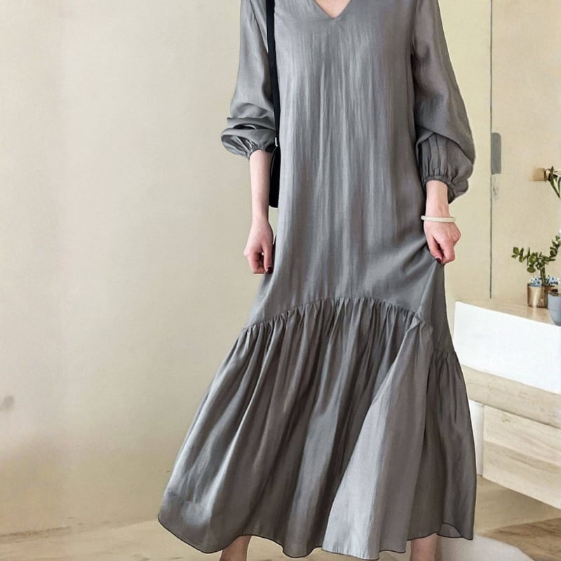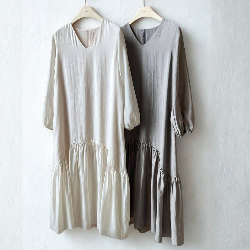 Vネック ゆったりフレアワンピース N00329