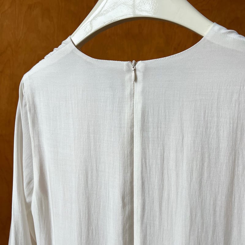 すっきりとしたVネックが首元を美しく見せ、シンプルながらも洗練された印象に仕上げてくれます。