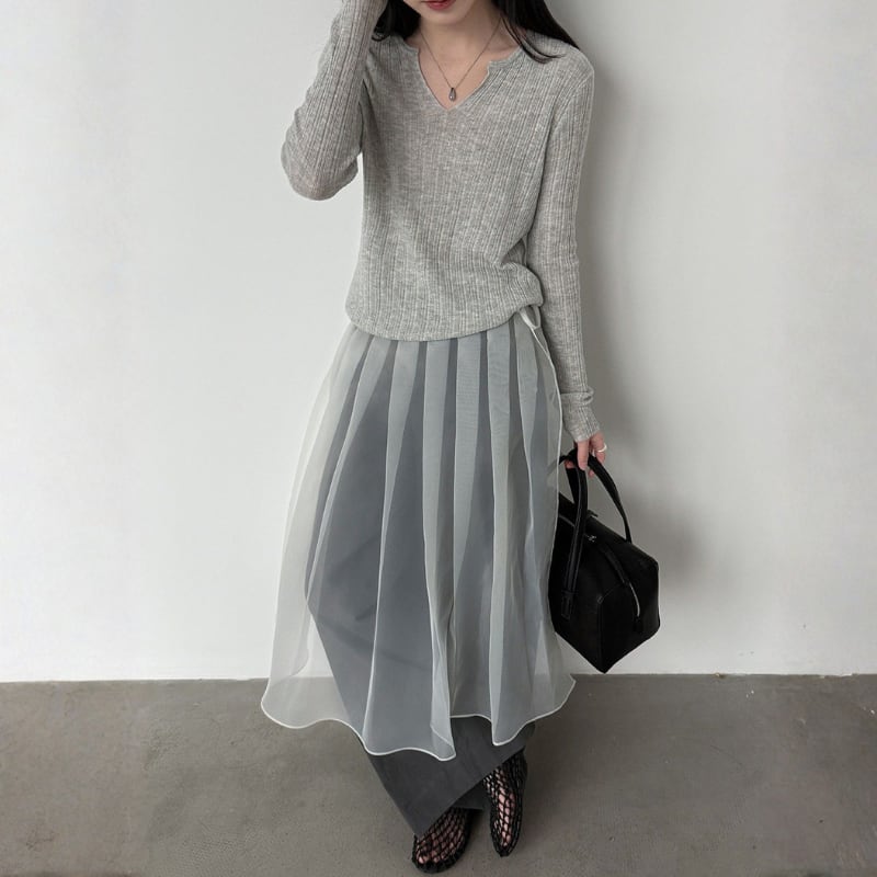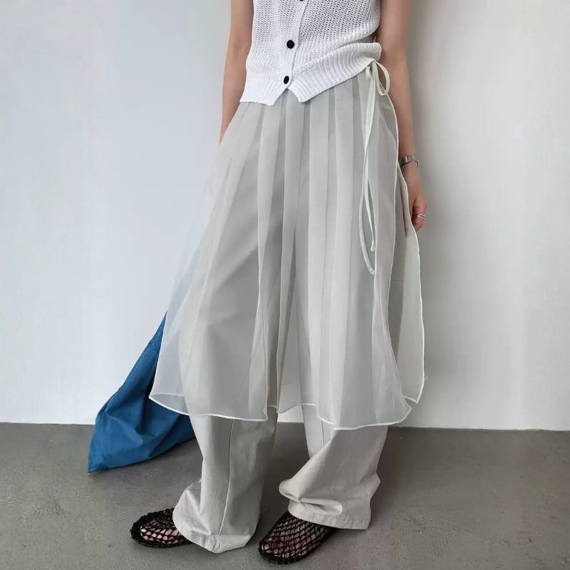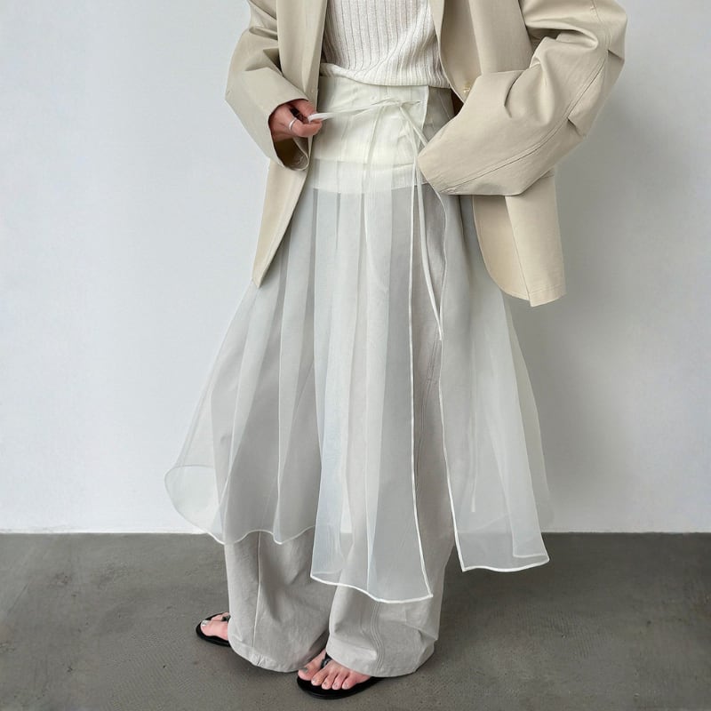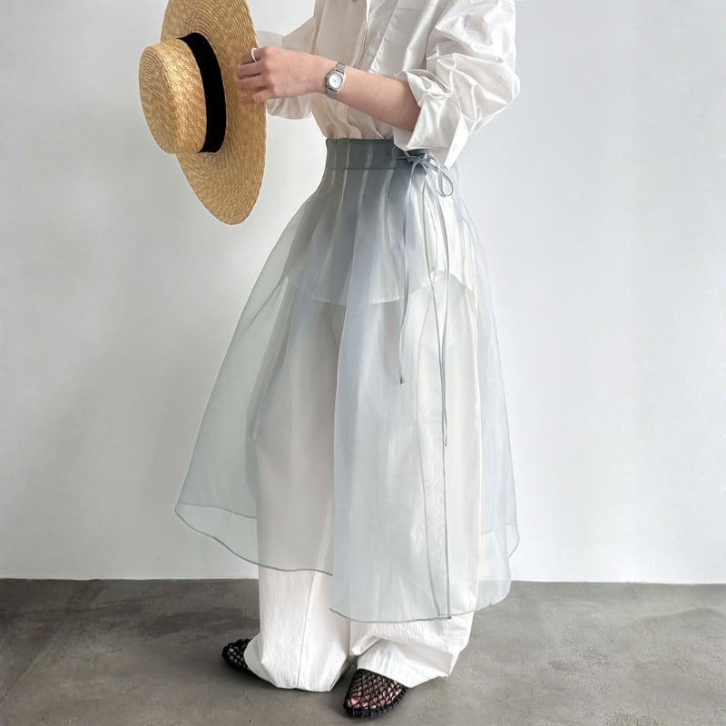 ウエストリボン メッシュチュールスカート N00342
