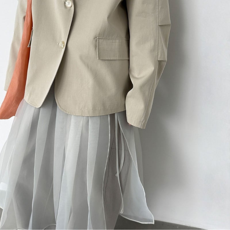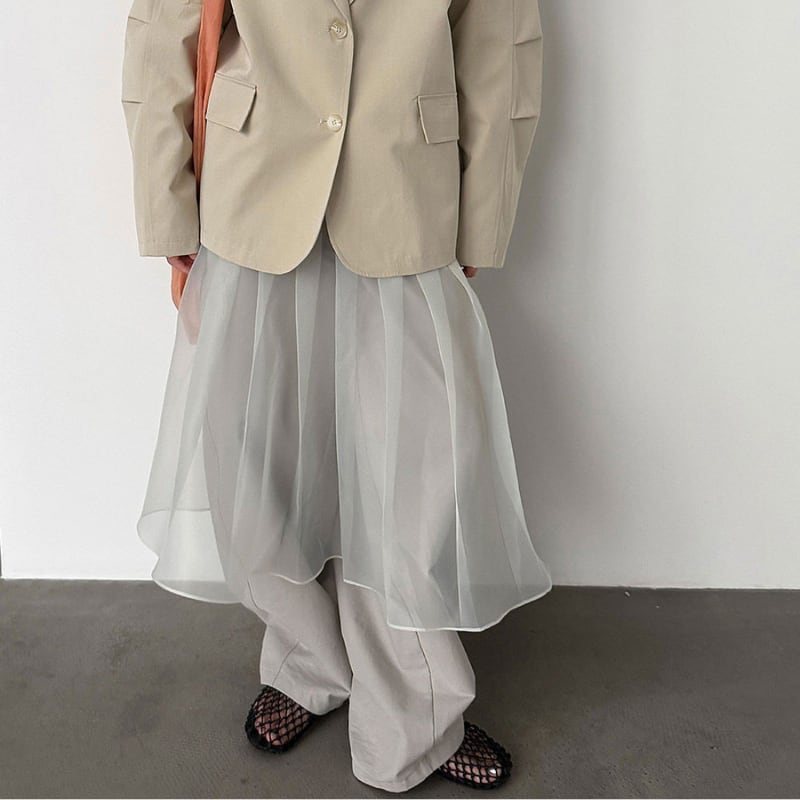 軽やかな素材で、動きに合わせてふわりと揺れるチュールが、女性らしさを引き立てます。