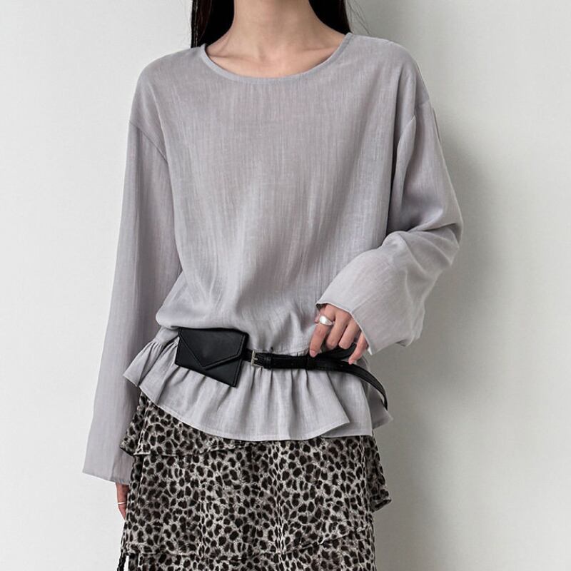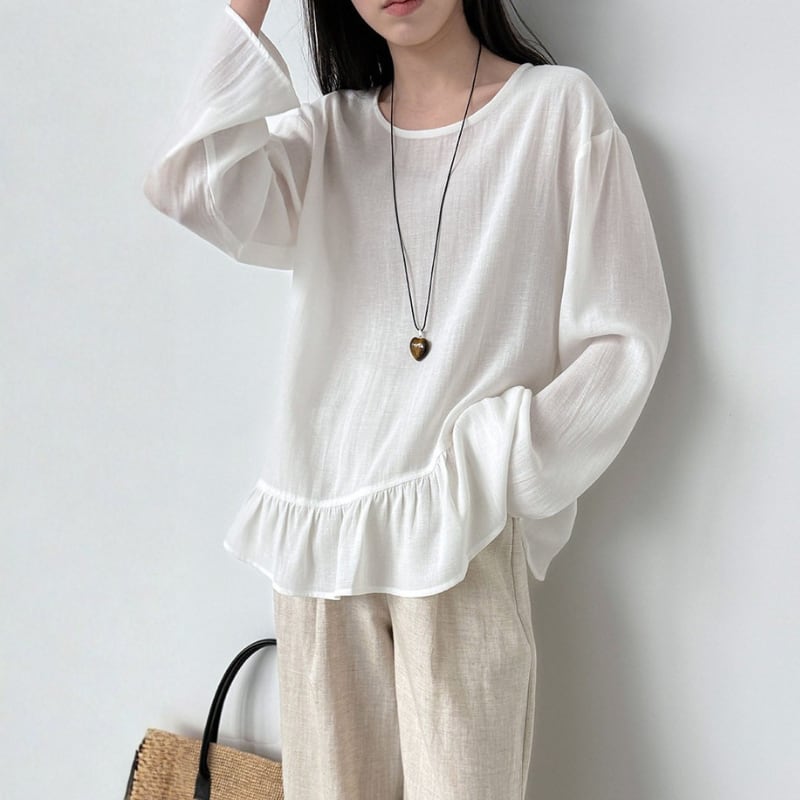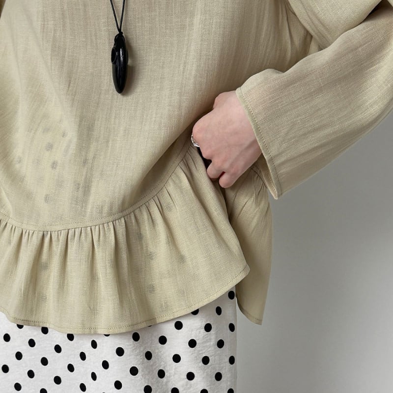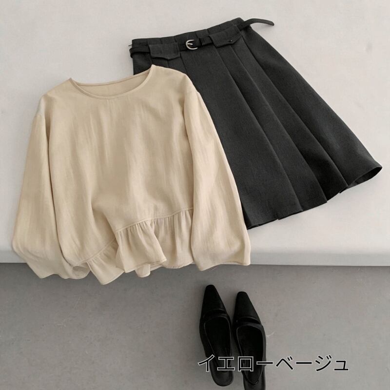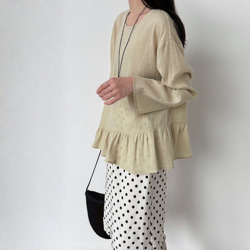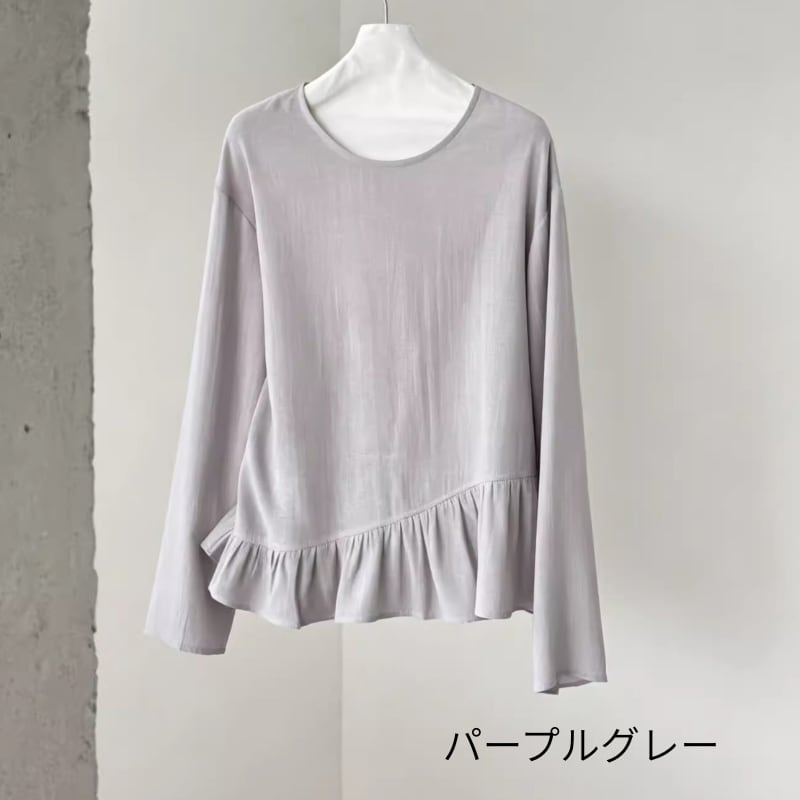 裾のフリルがさりげなく、女性らしさを引き立てるカットソー。