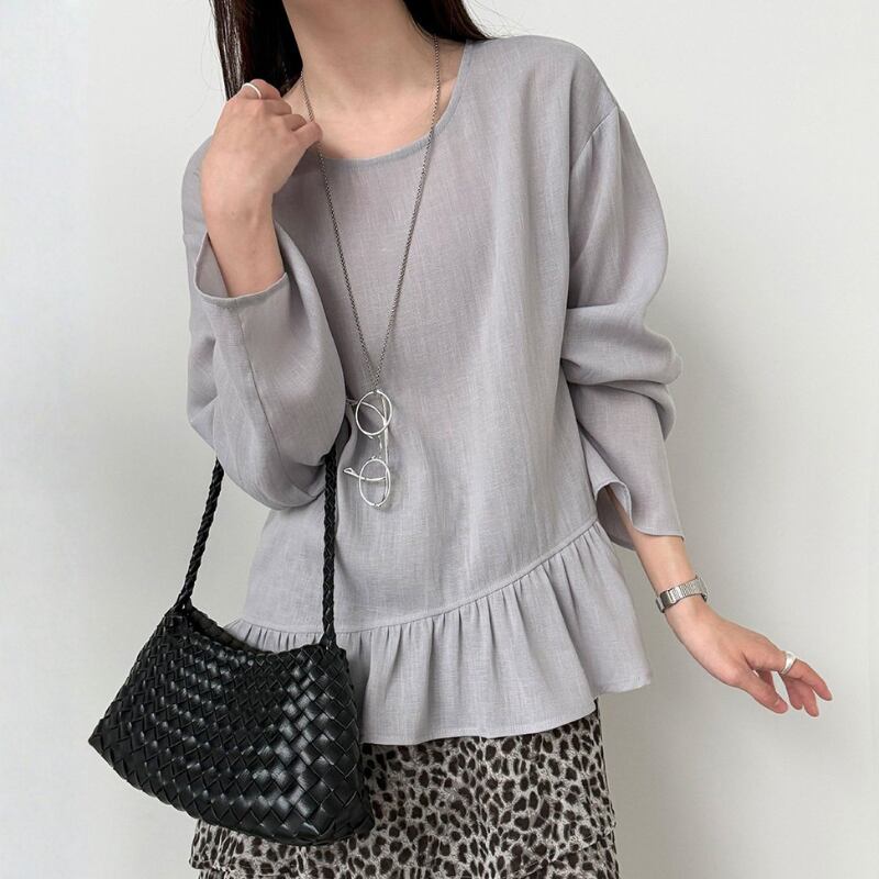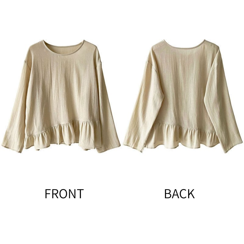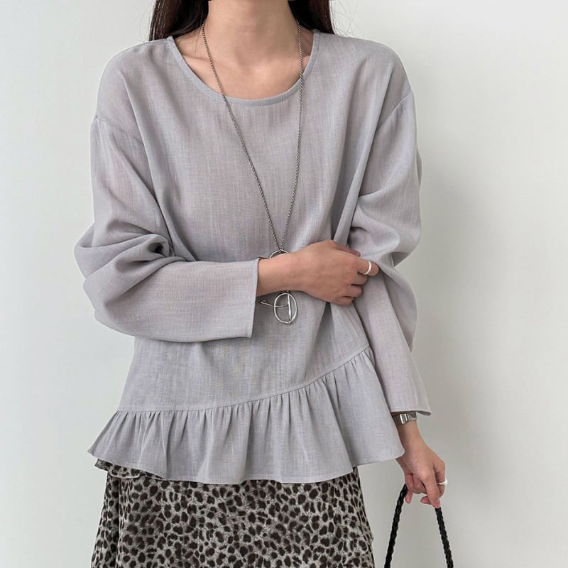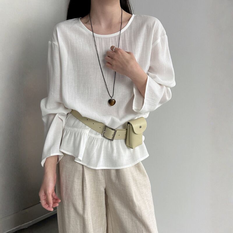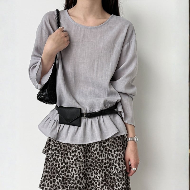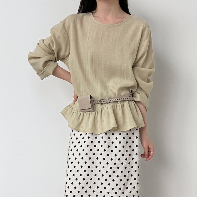 裾のフリルがさりげなく、女性らしさを引き立てるカットソー。
