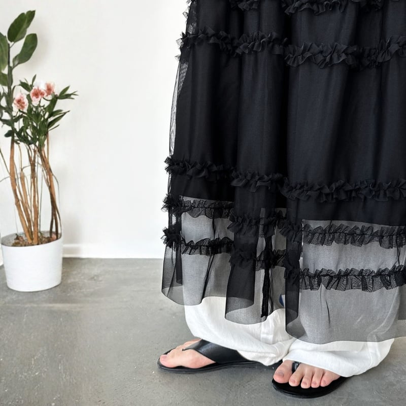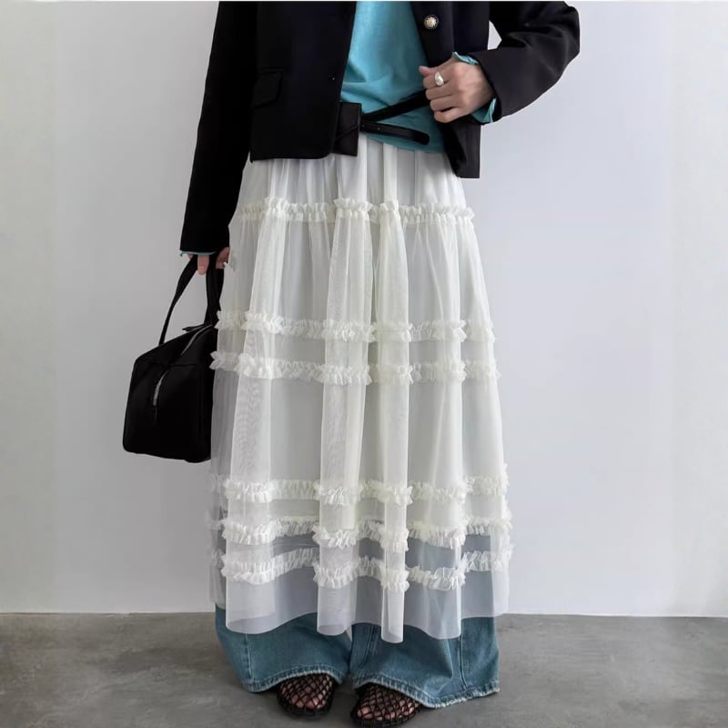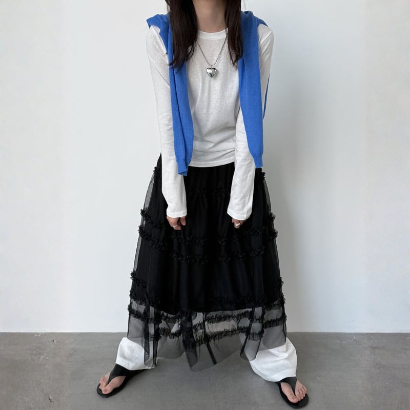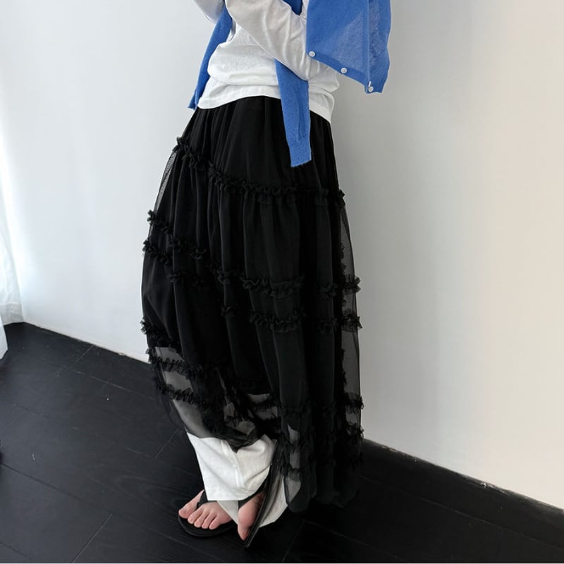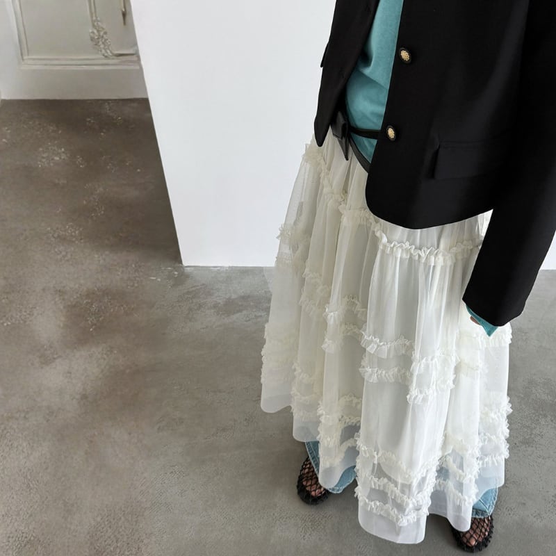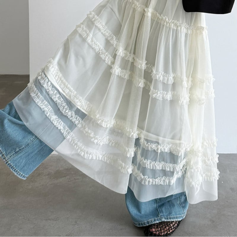 ふんわりとフリルが歩くたびに揺れ、女性らしさを引き立てるスカート。