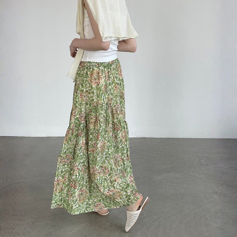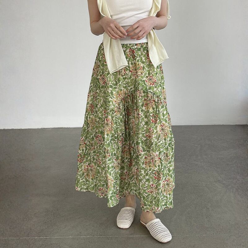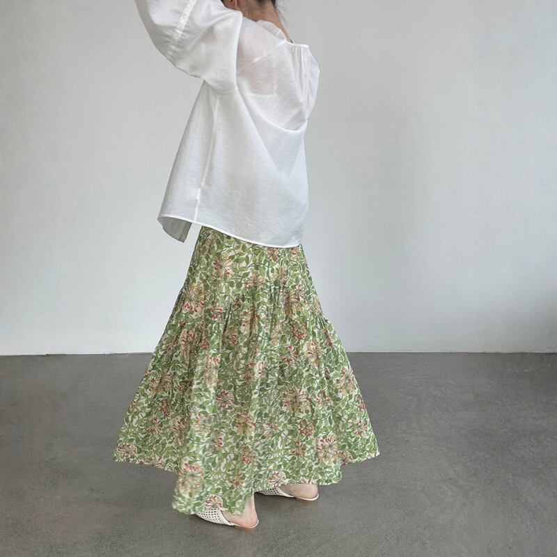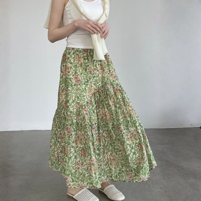 フラワープリントが目を引くスカートは、コーディネートの主役になること間違いなし。