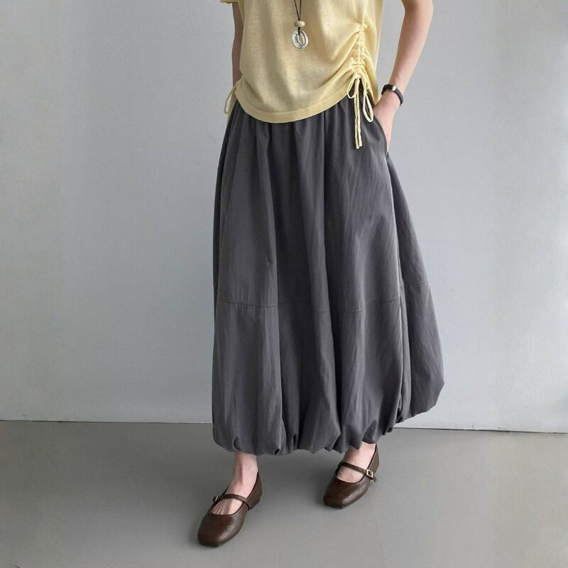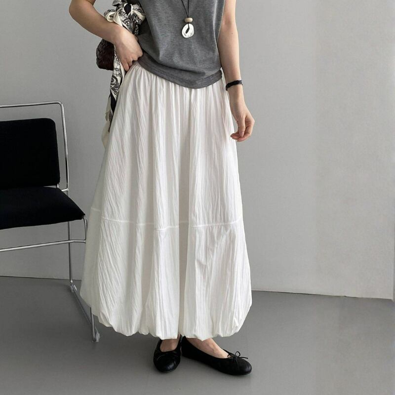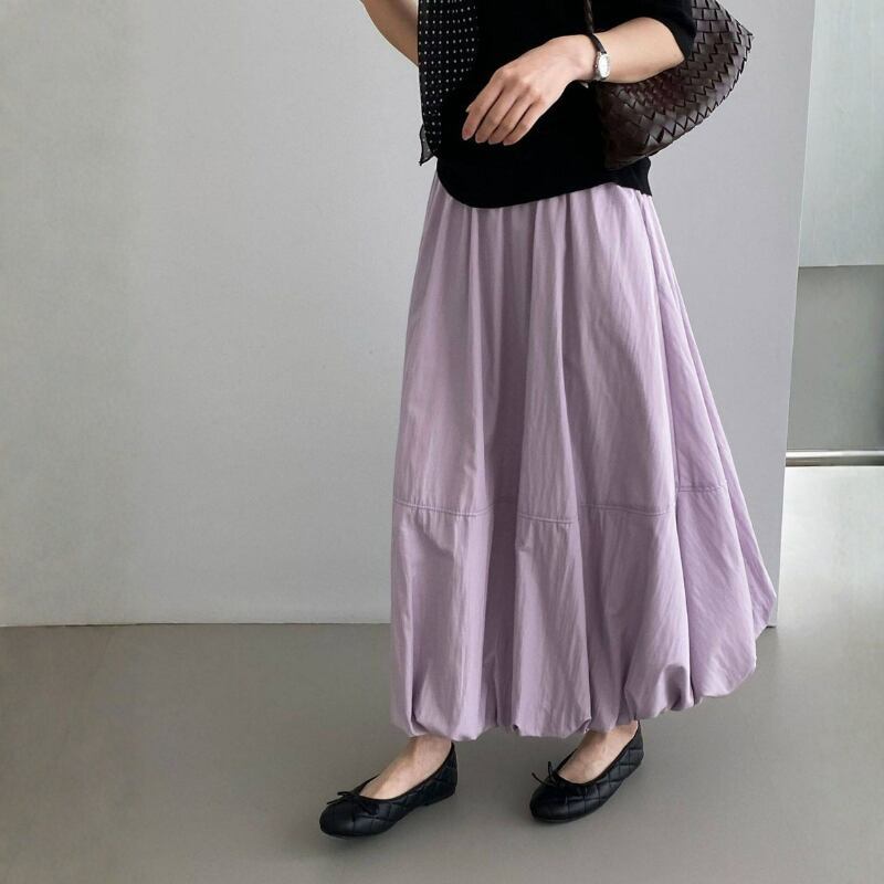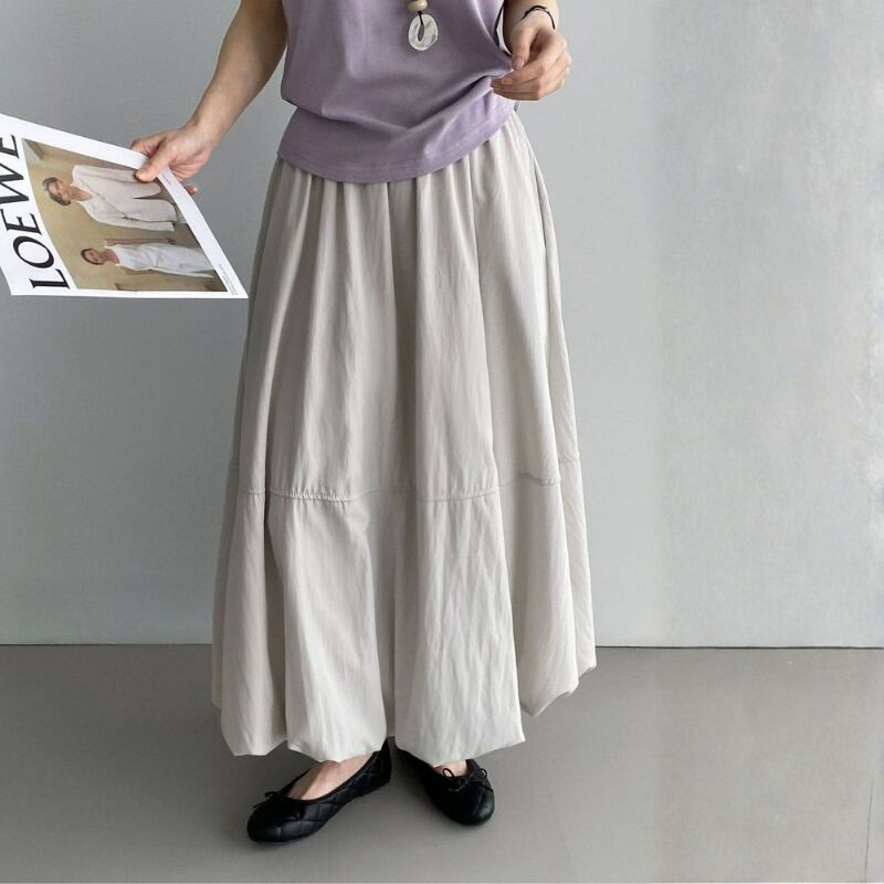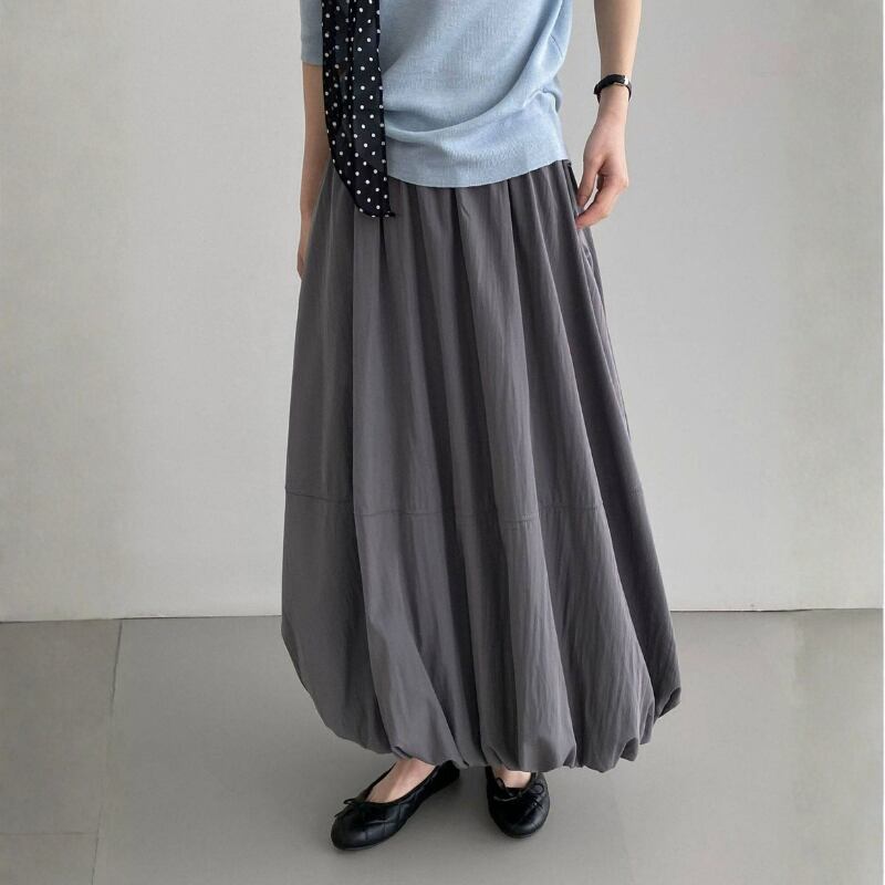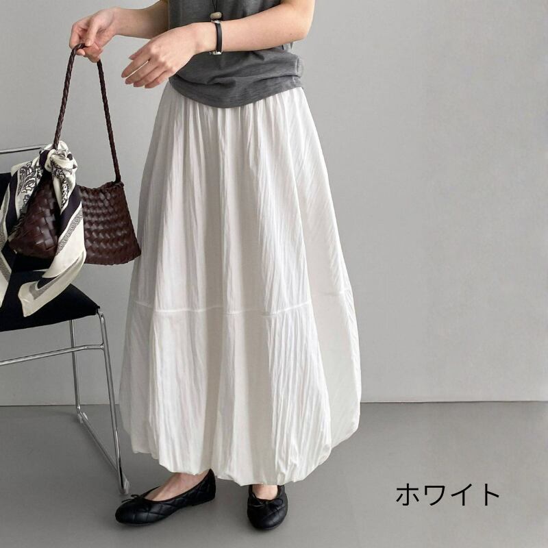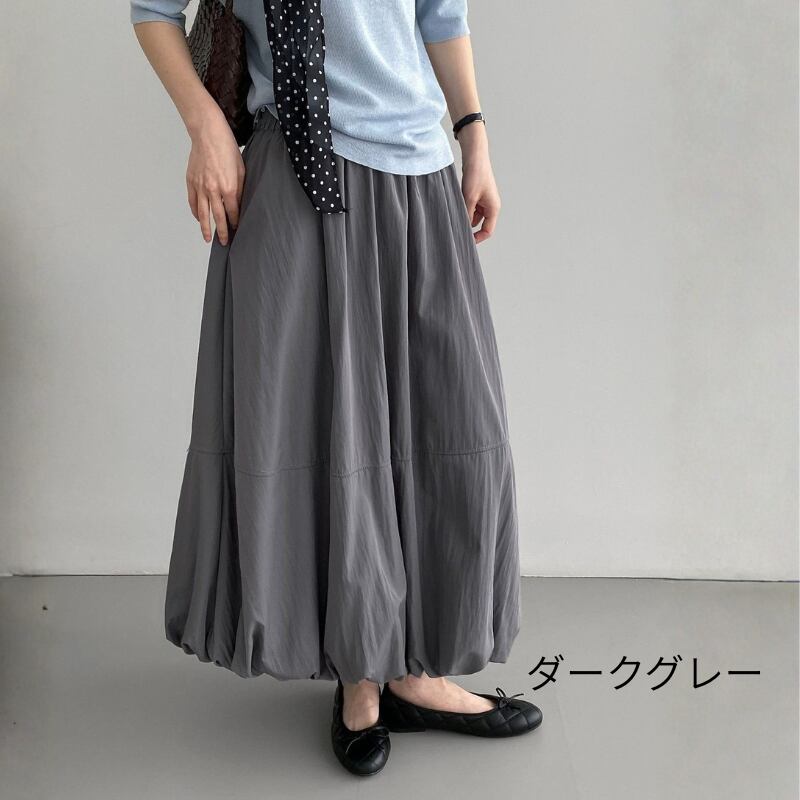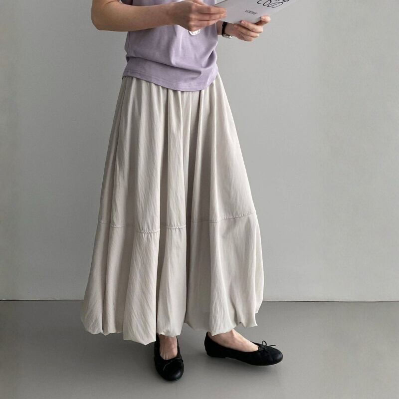 バルーンのような裾のデザインが特徴的なスカート。