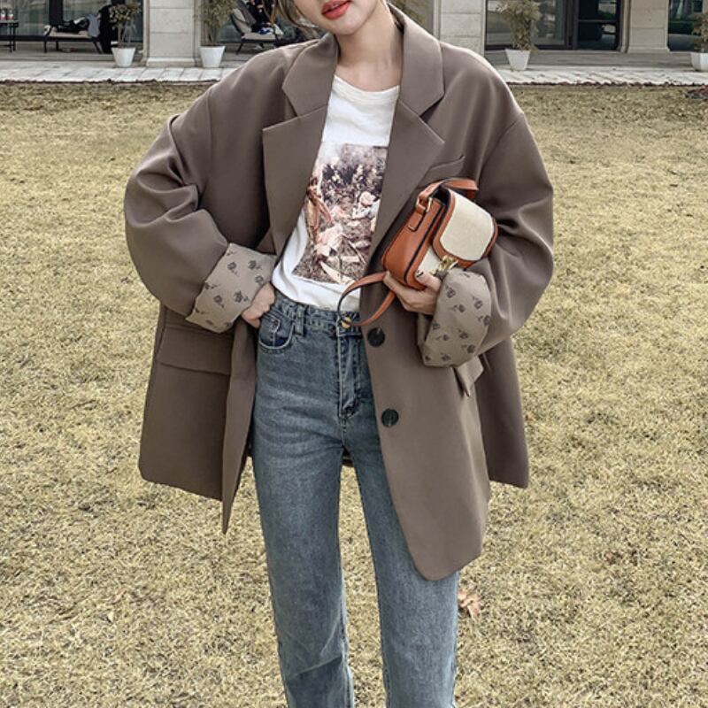 オーバーサイズのシルエットがトレンド感を演出するジャケット。
