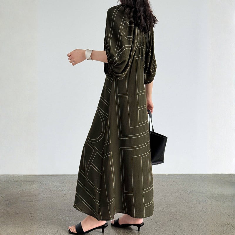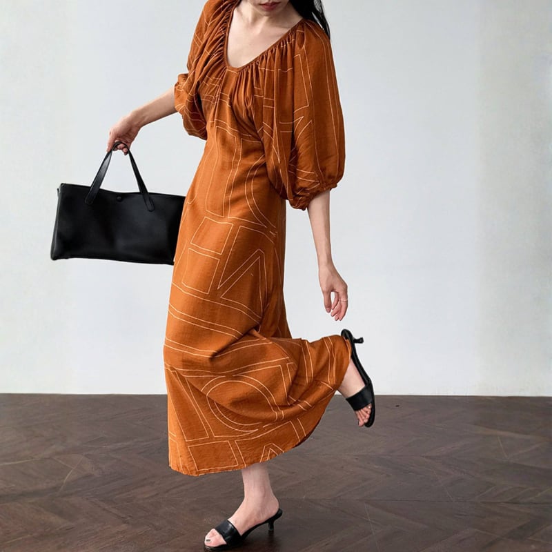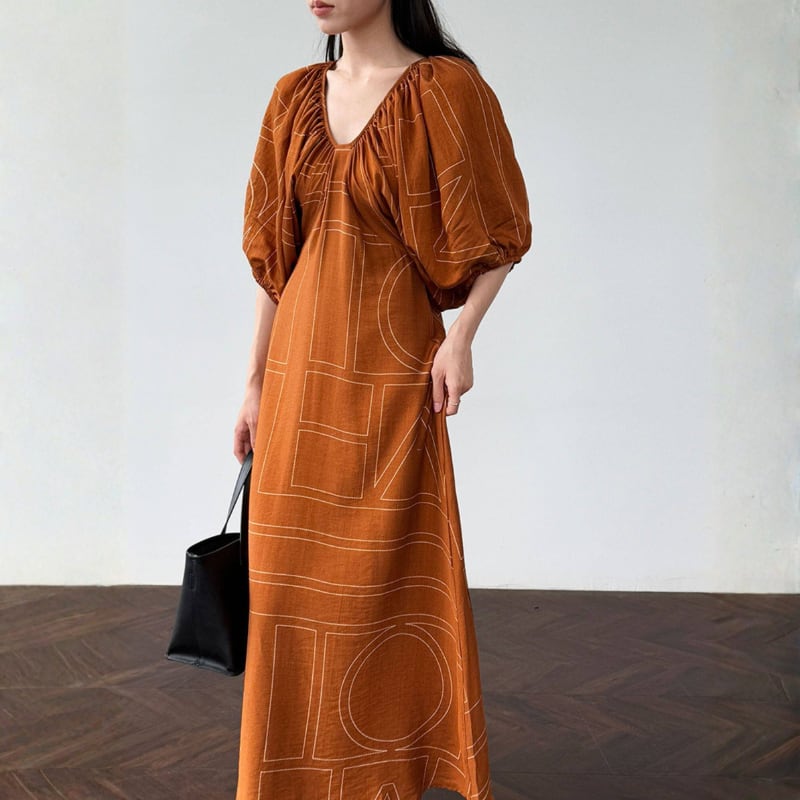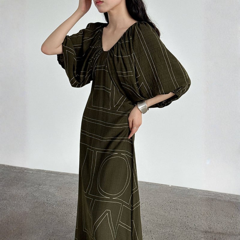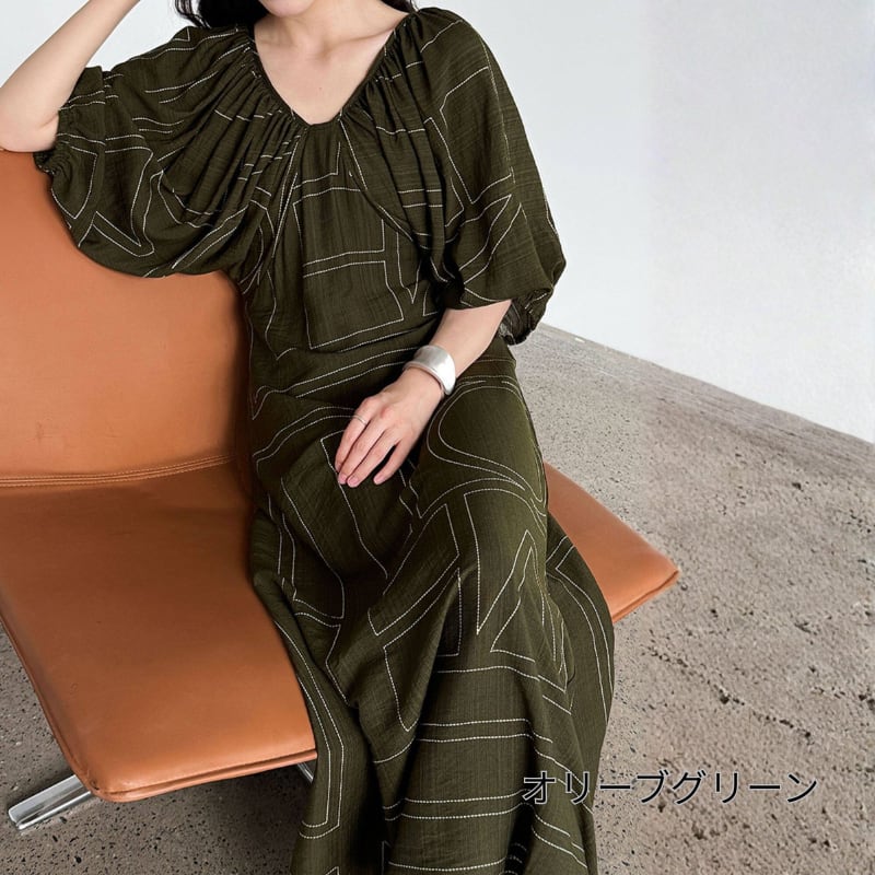 ギャザーネック バルーンスリーブワンピース N00357