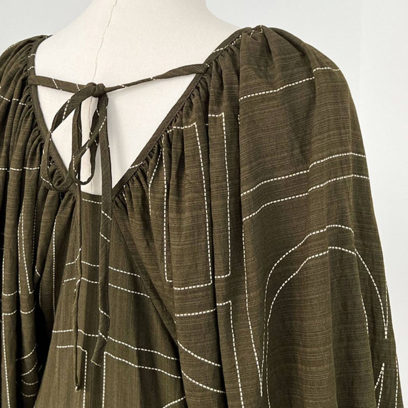 ギャザーが作り出す上品なシルエットは、大人の女性らしさを引き立てます。
