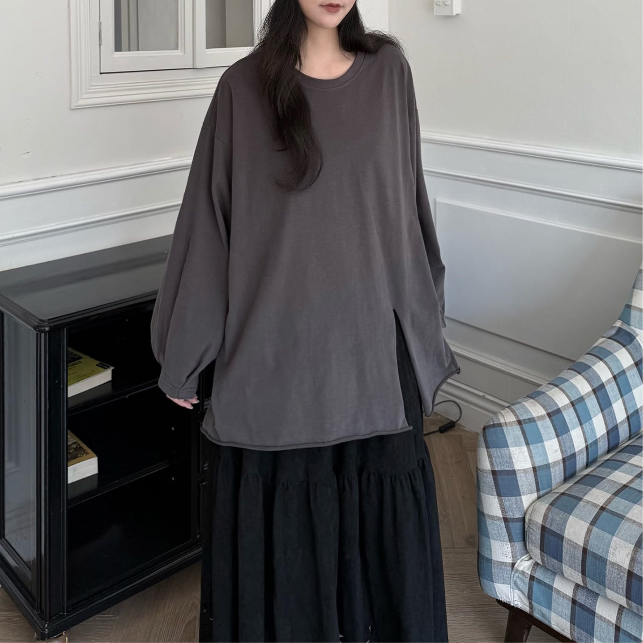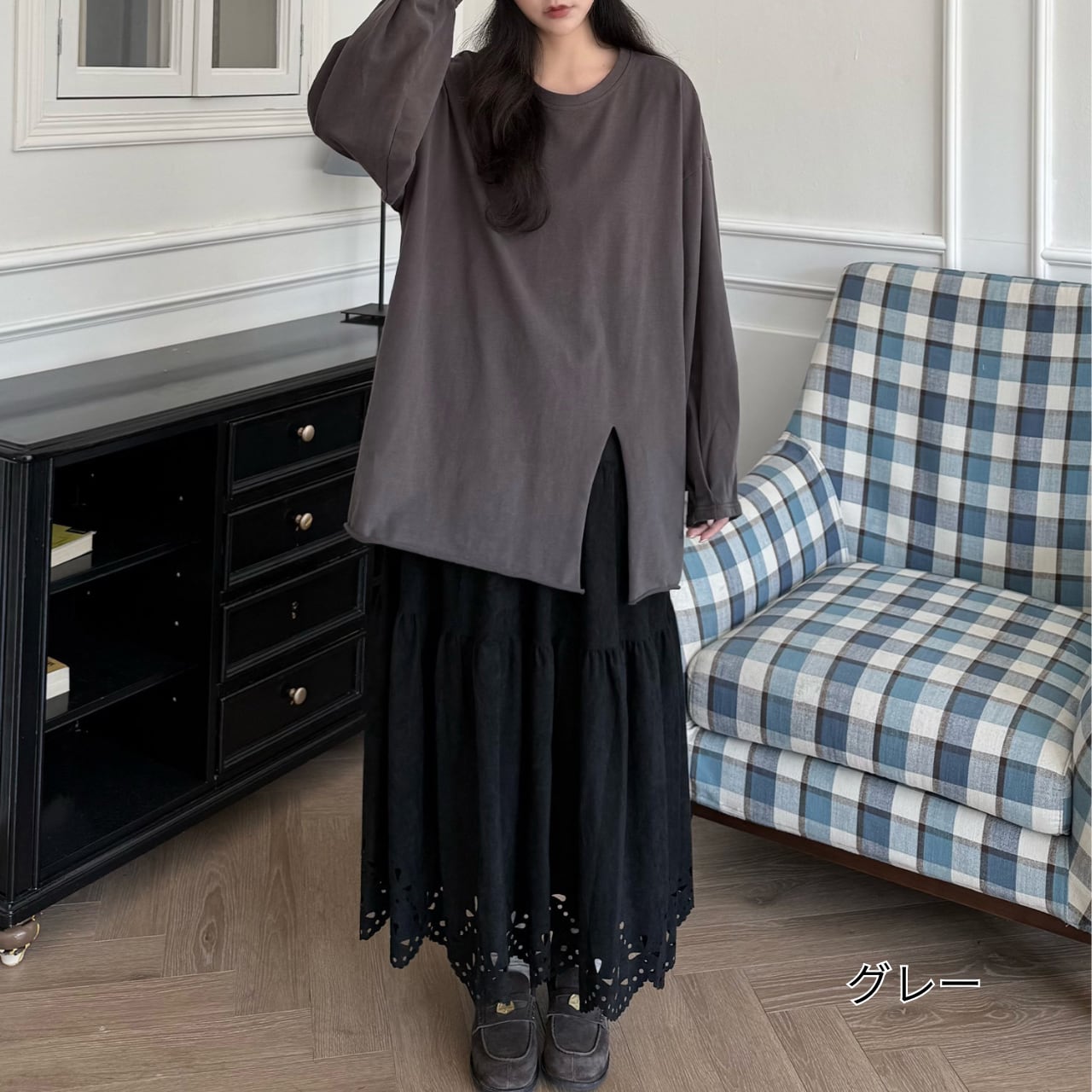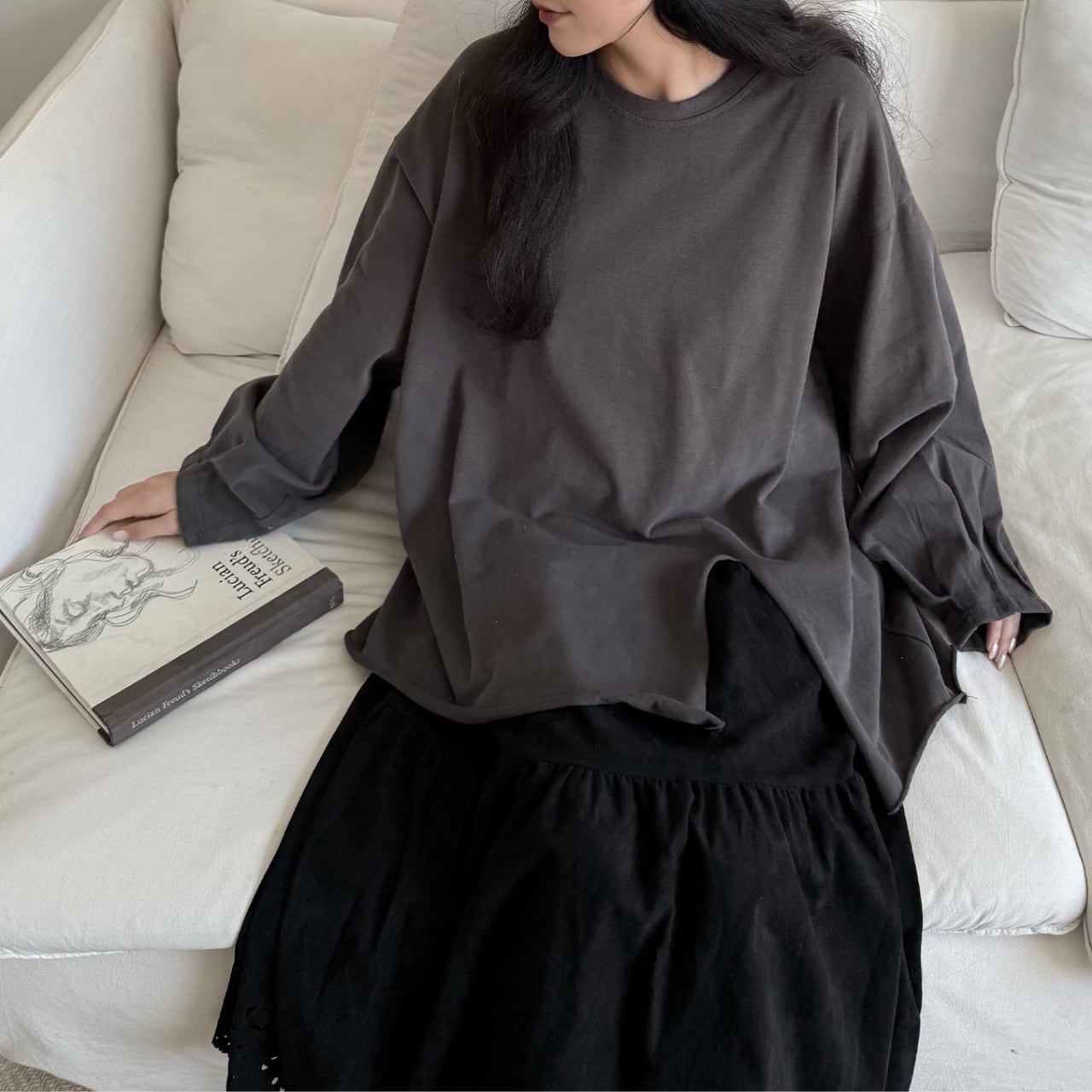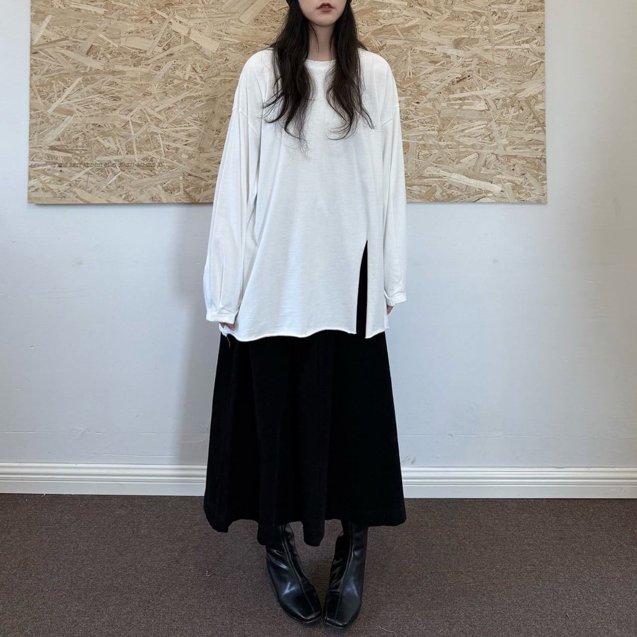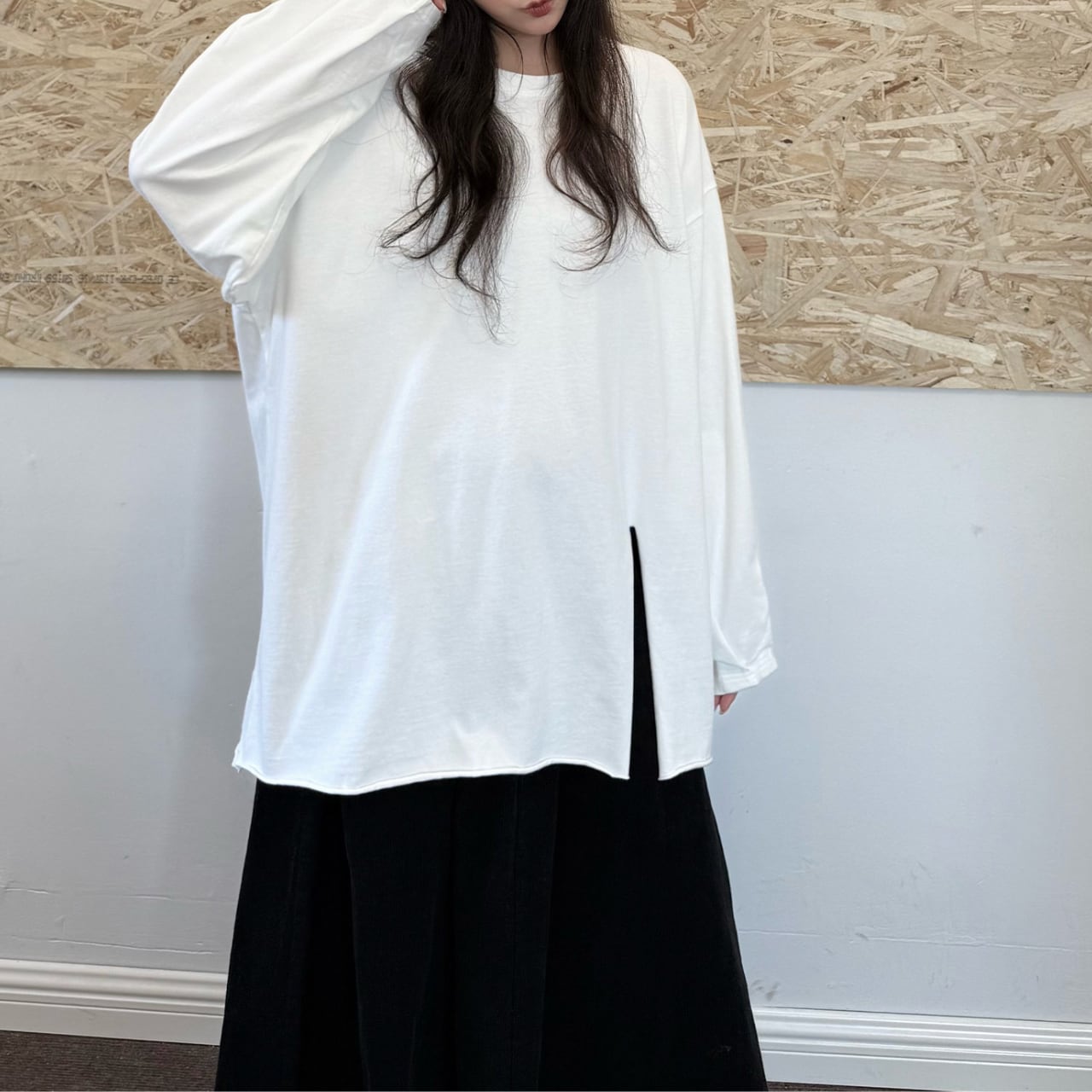 オーバーサイズのシルエットが、こなれ感を演出する長袖Tシャツ。