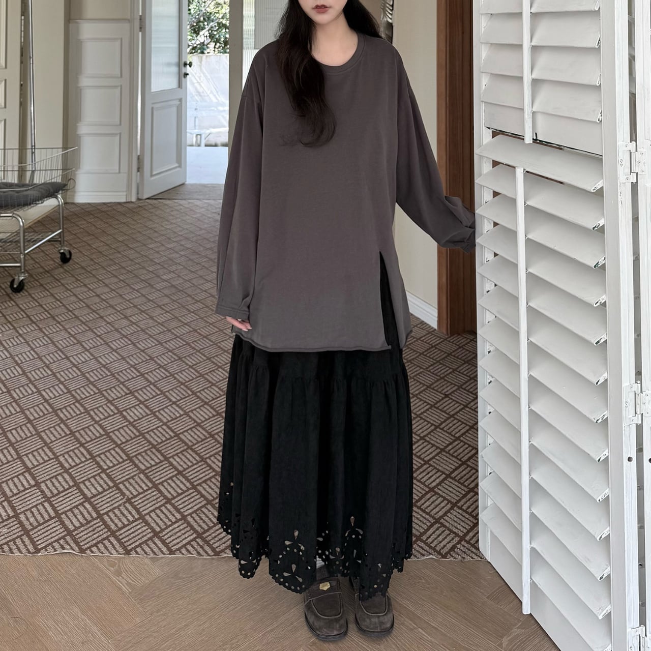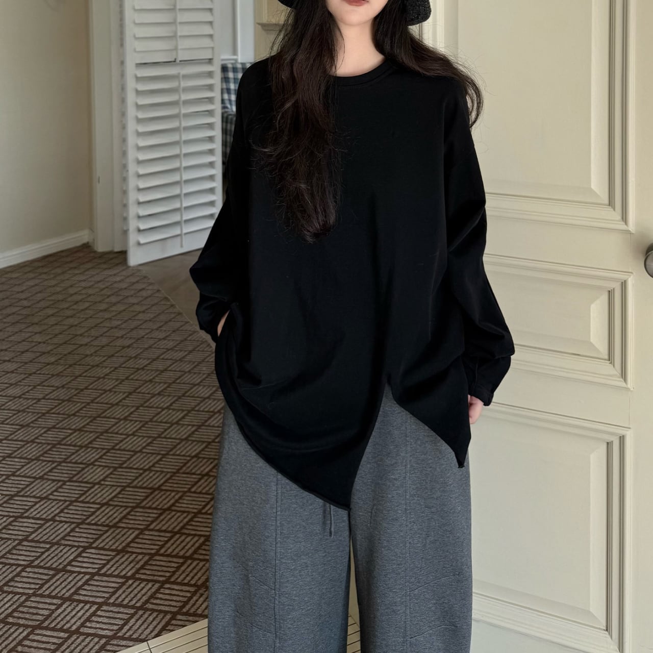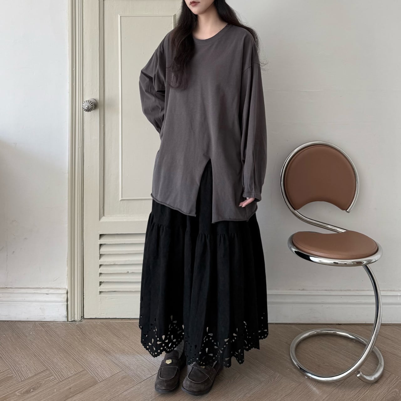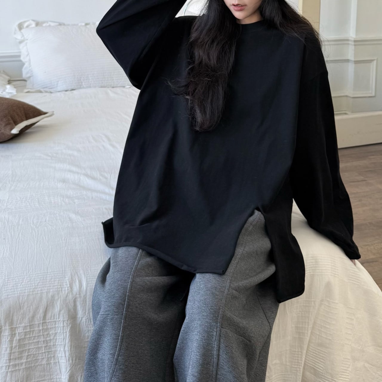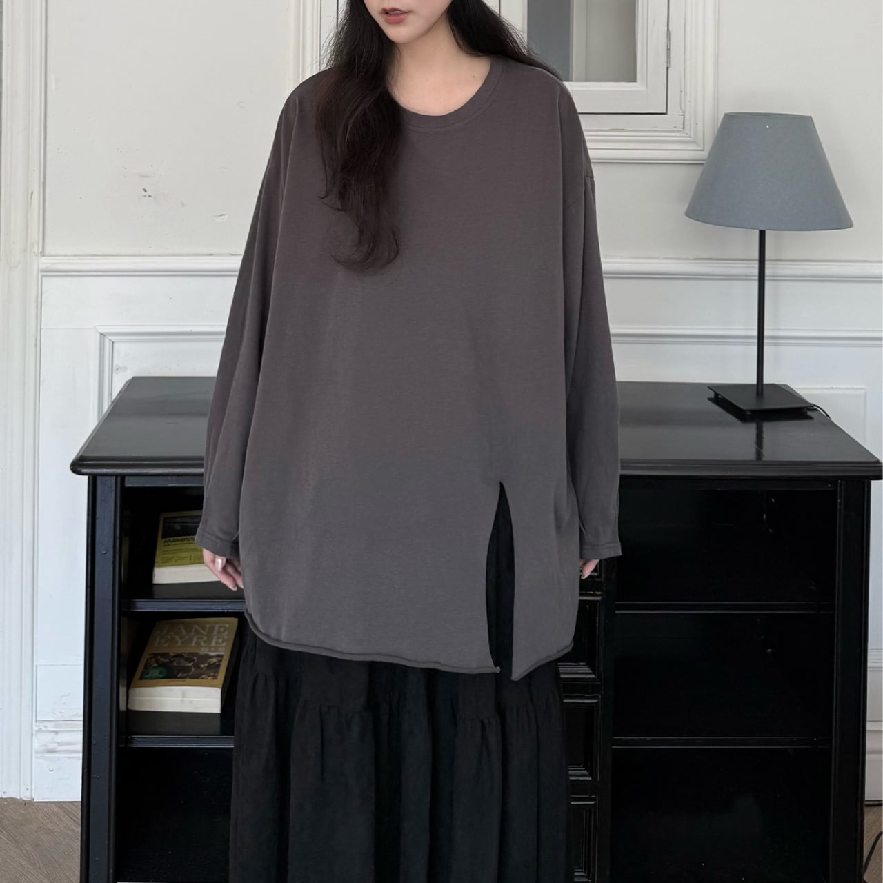 オーバーサイズのシルエットが、こなれ感を演出する長袖Tシャツ。
