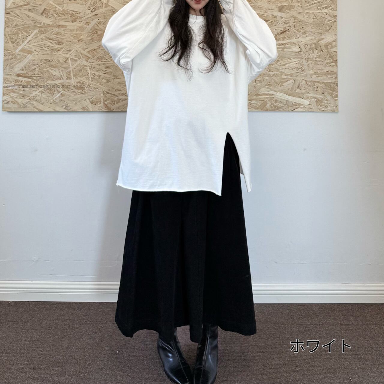 サイドスリットが、コーディネートに抜け感と軽やかさをプラスします。