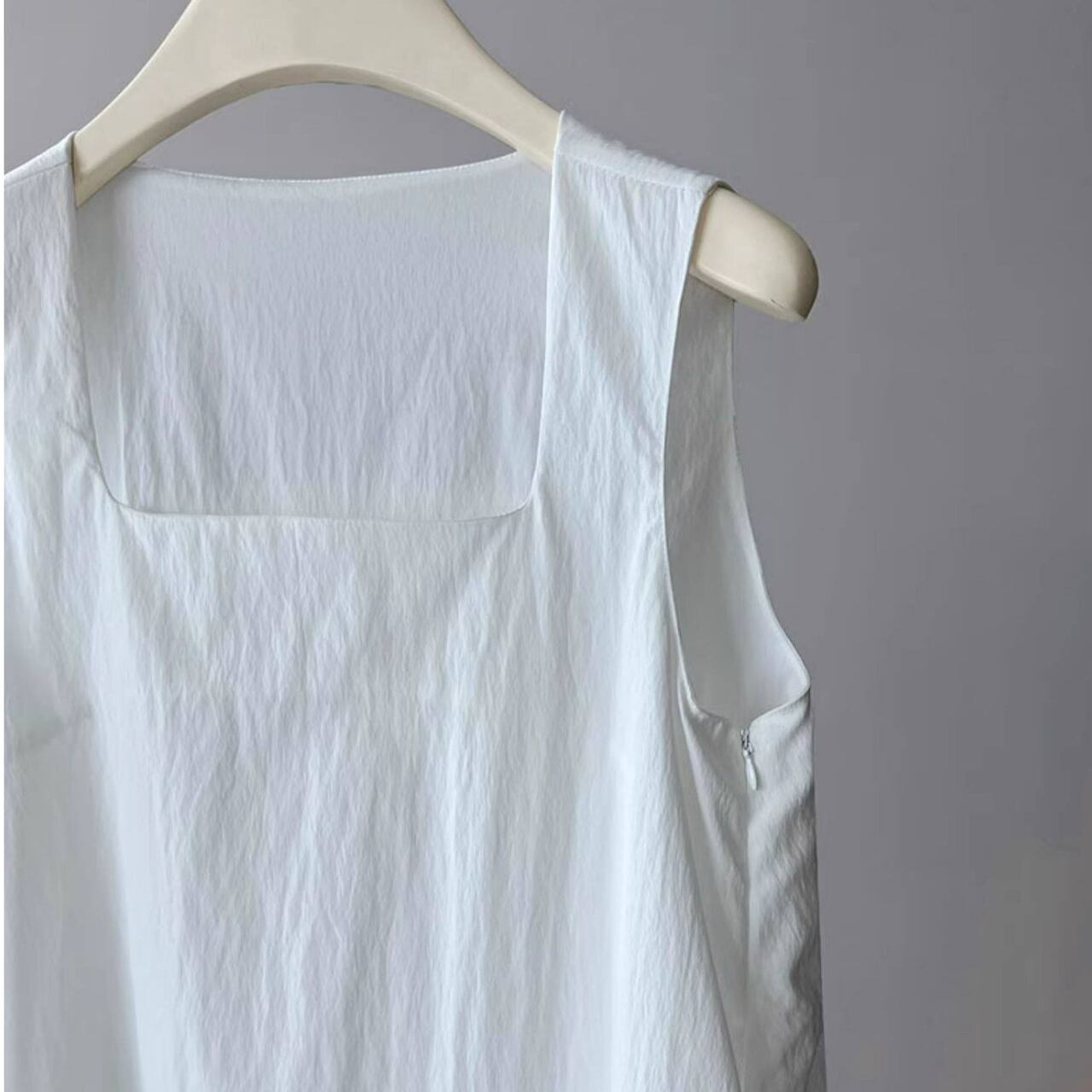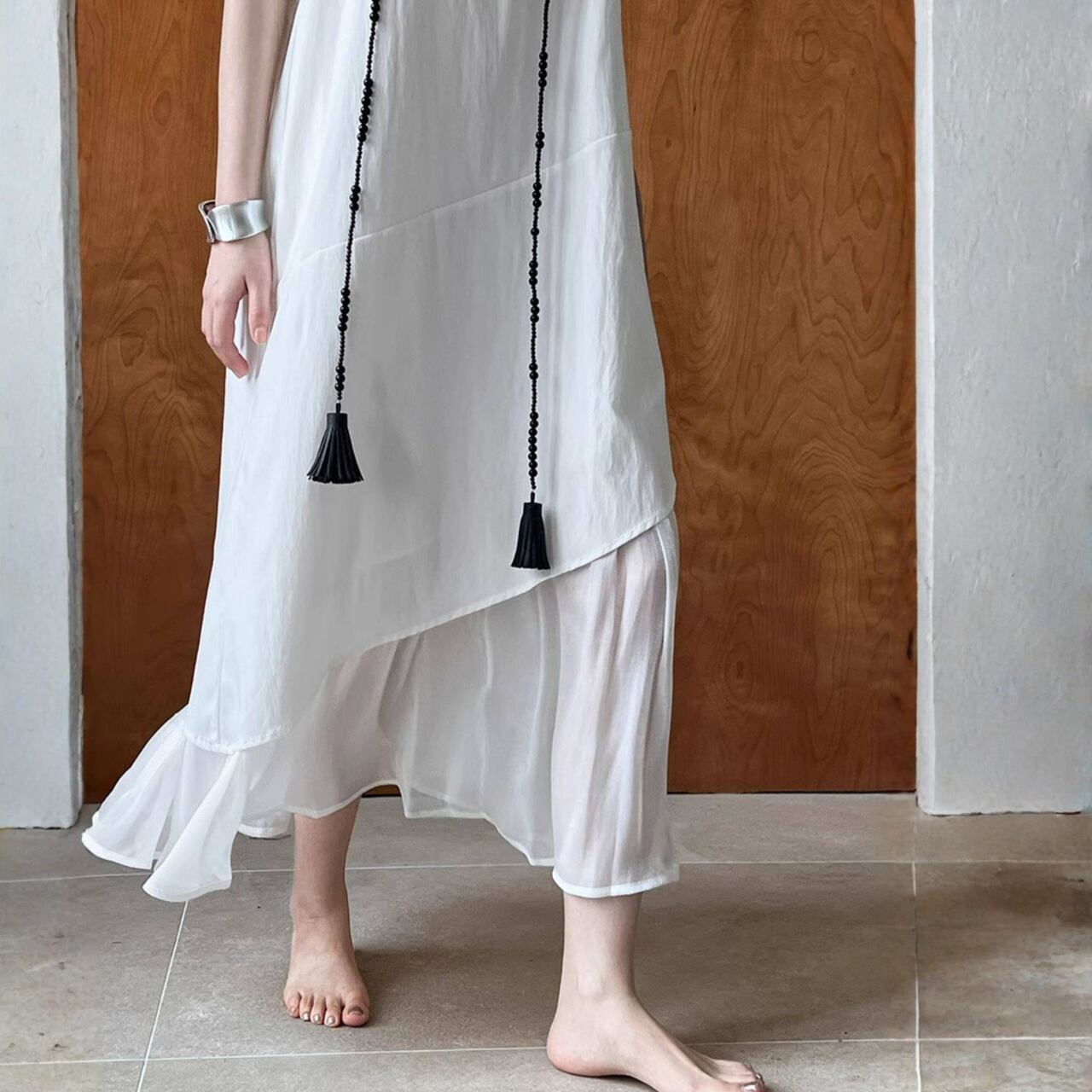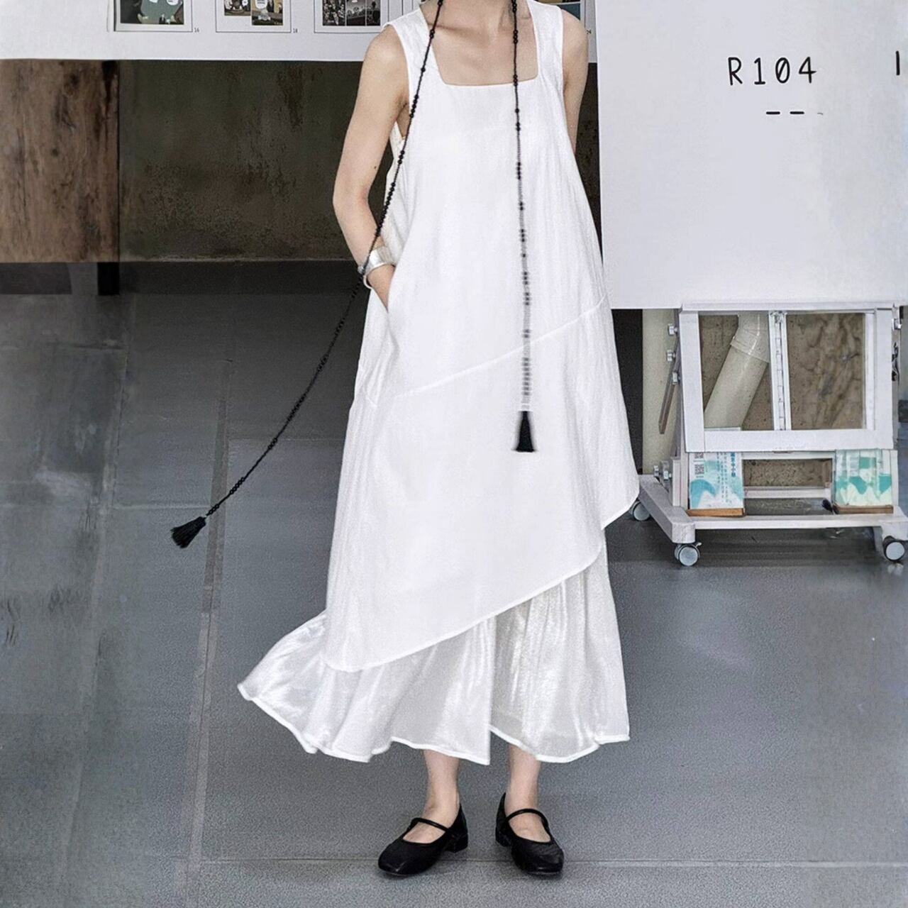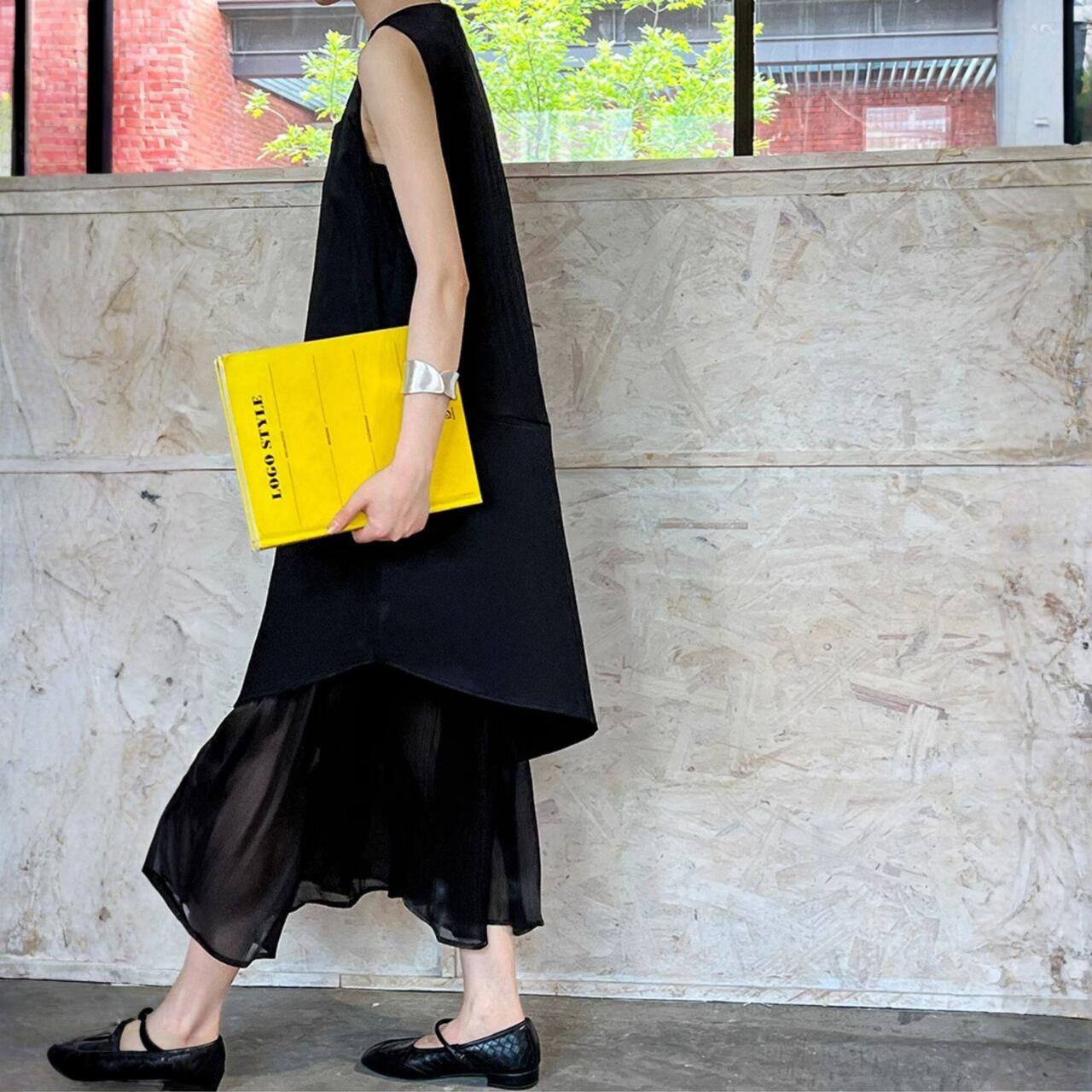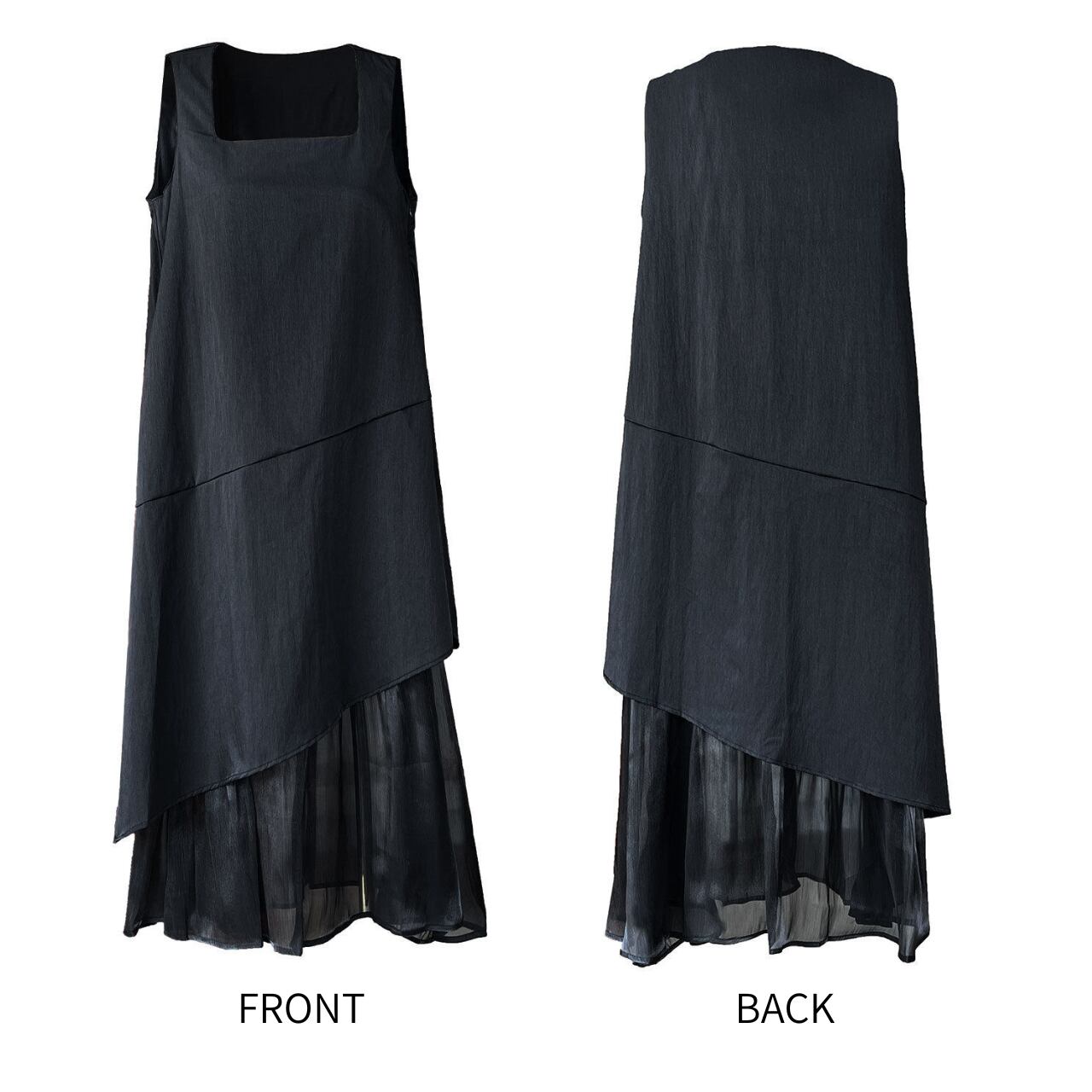 すっきりとしたノースリーブデザインと、アシンメトリーな裾の組み合わせが魅力のワンピース。
