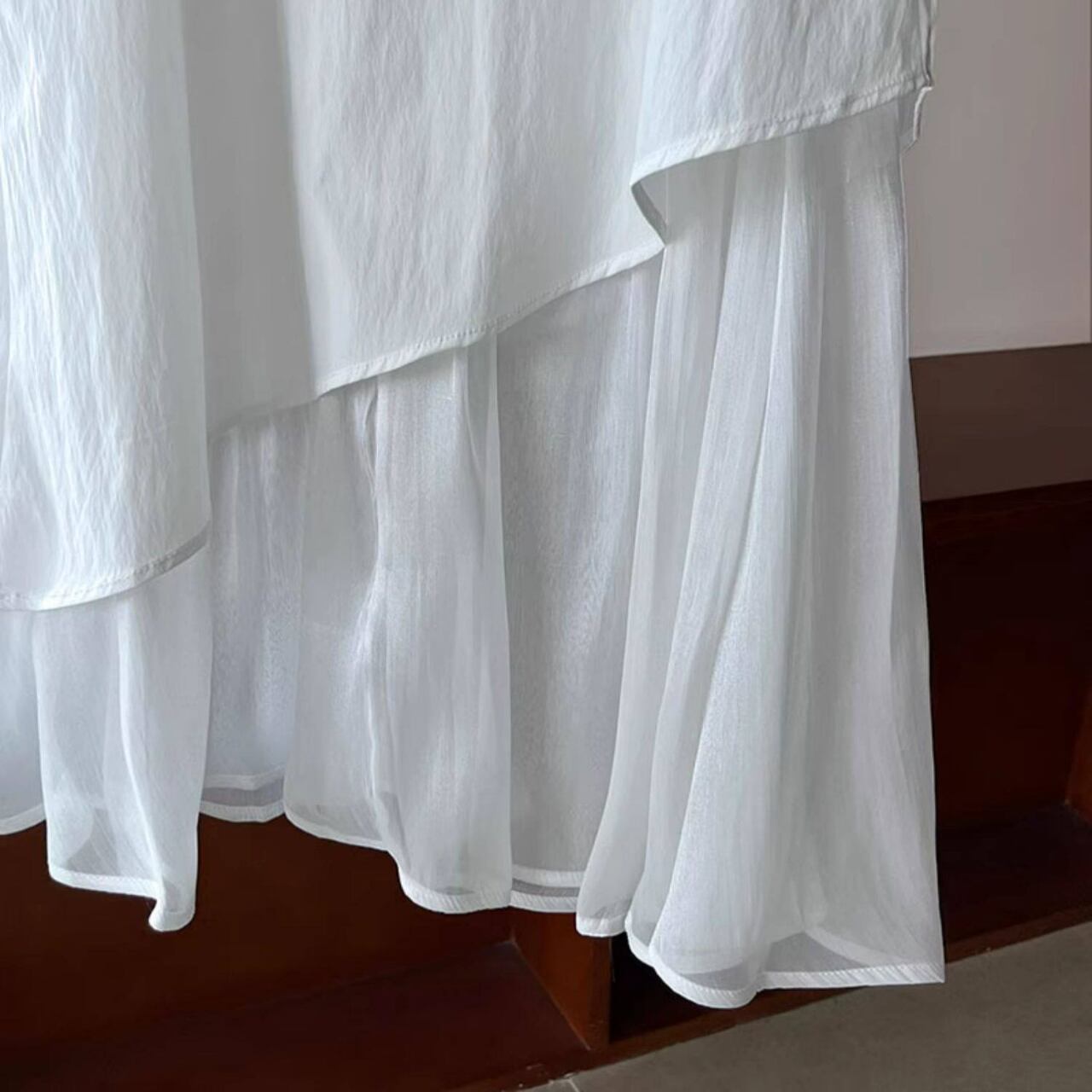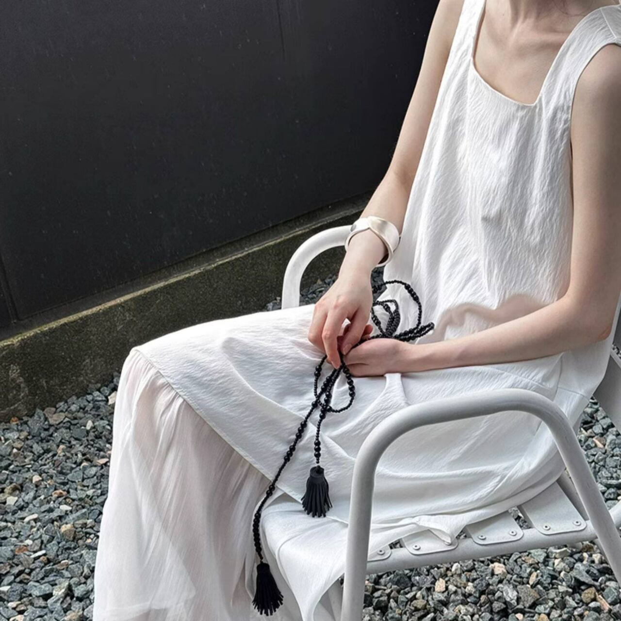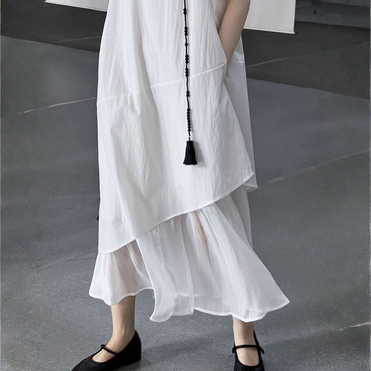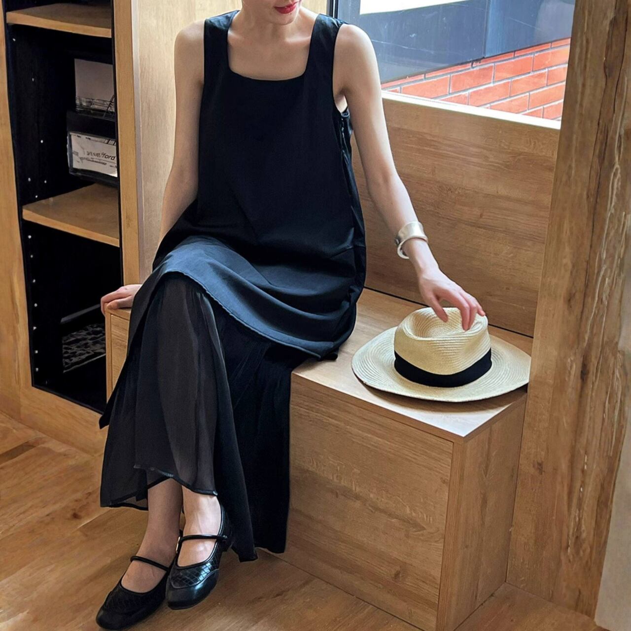 すっきりとしたノースリーブデザインと、アシンメトリーな裾の組み合わせが魅力のワンピース。