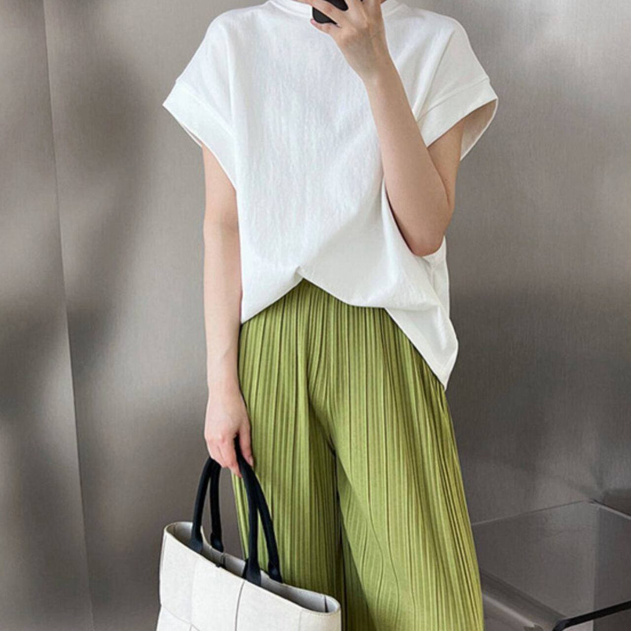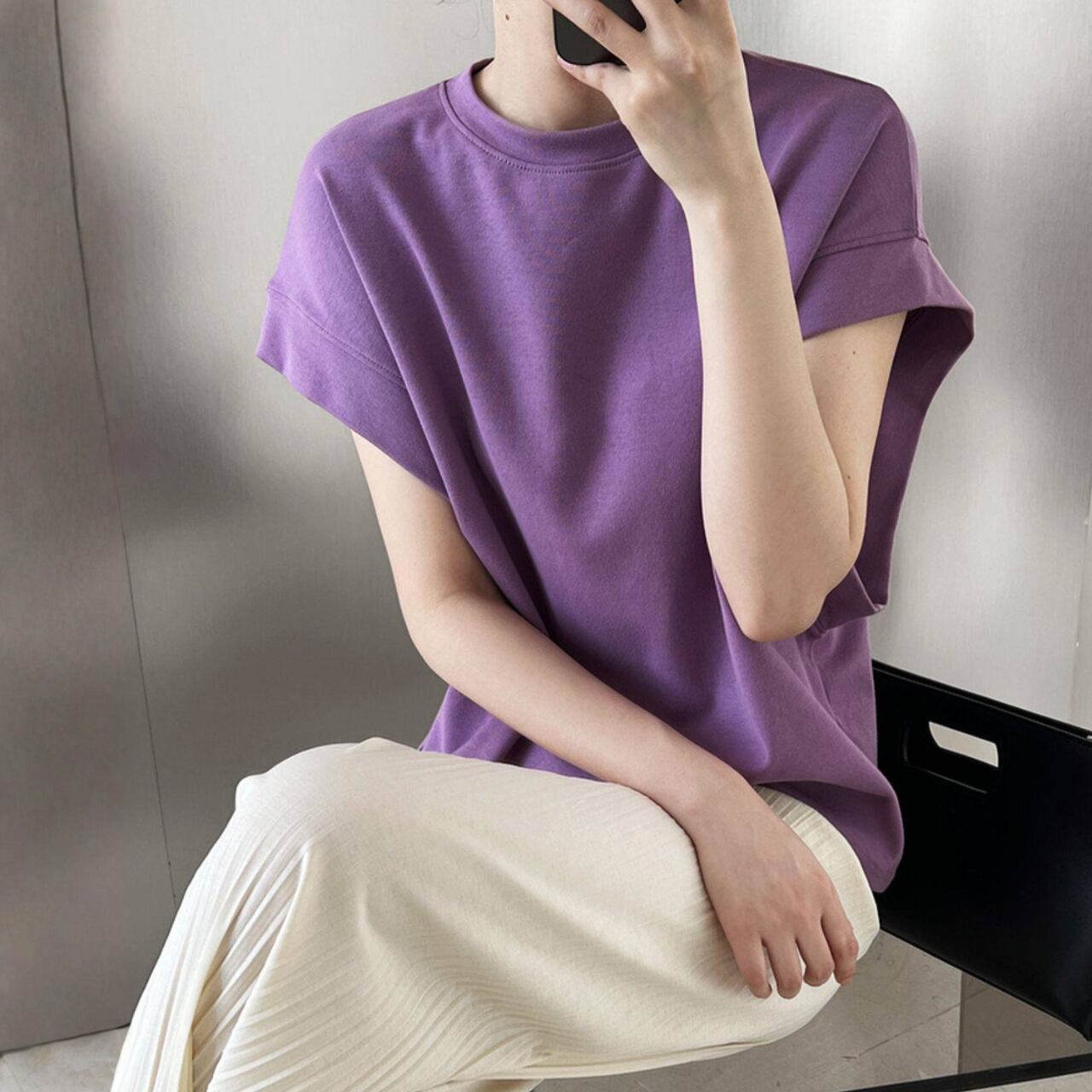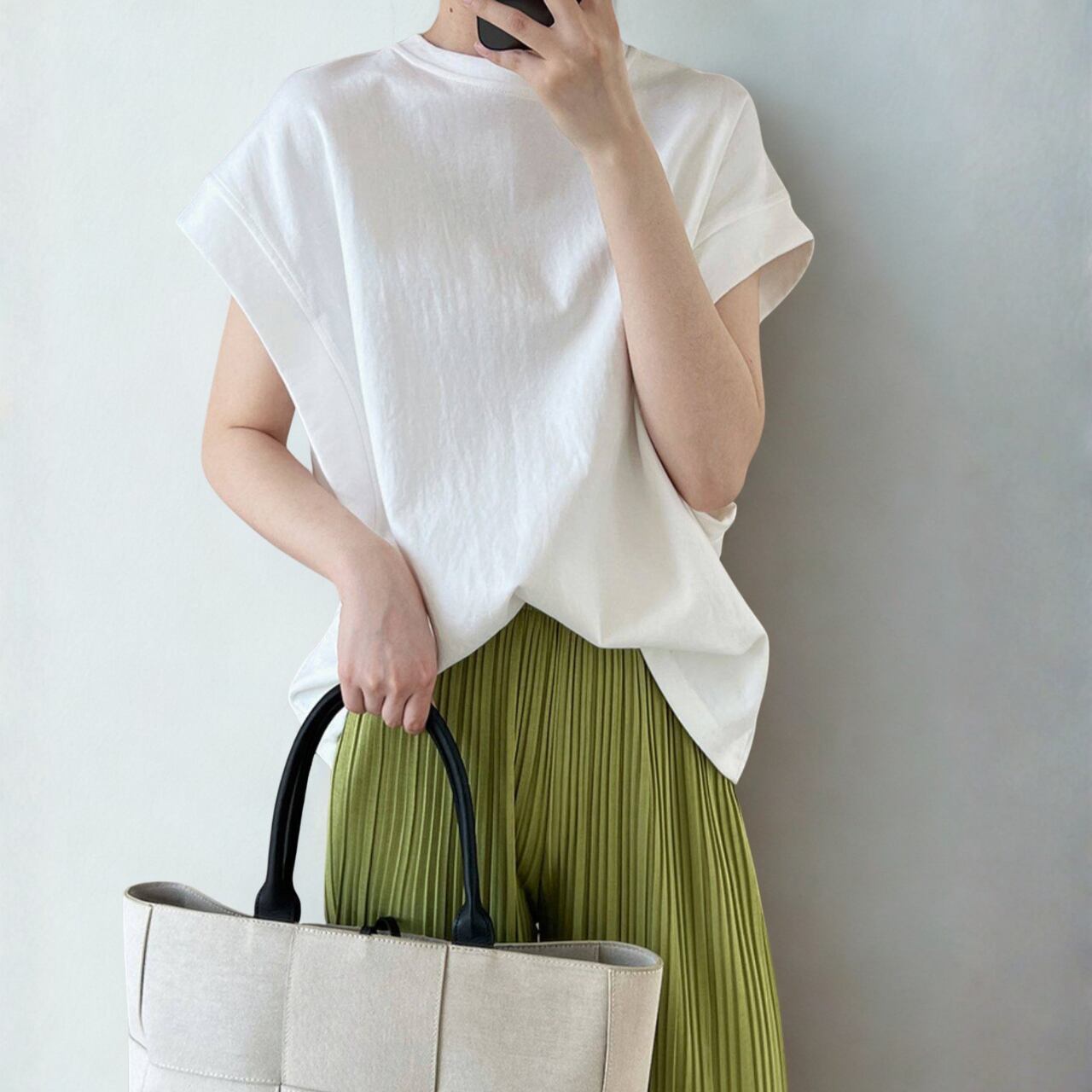 シンプルながらも洗練された印象のクルーネックTシャツ。