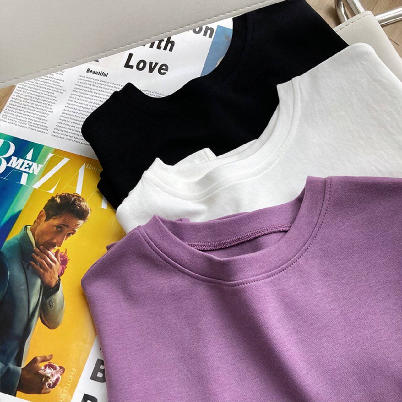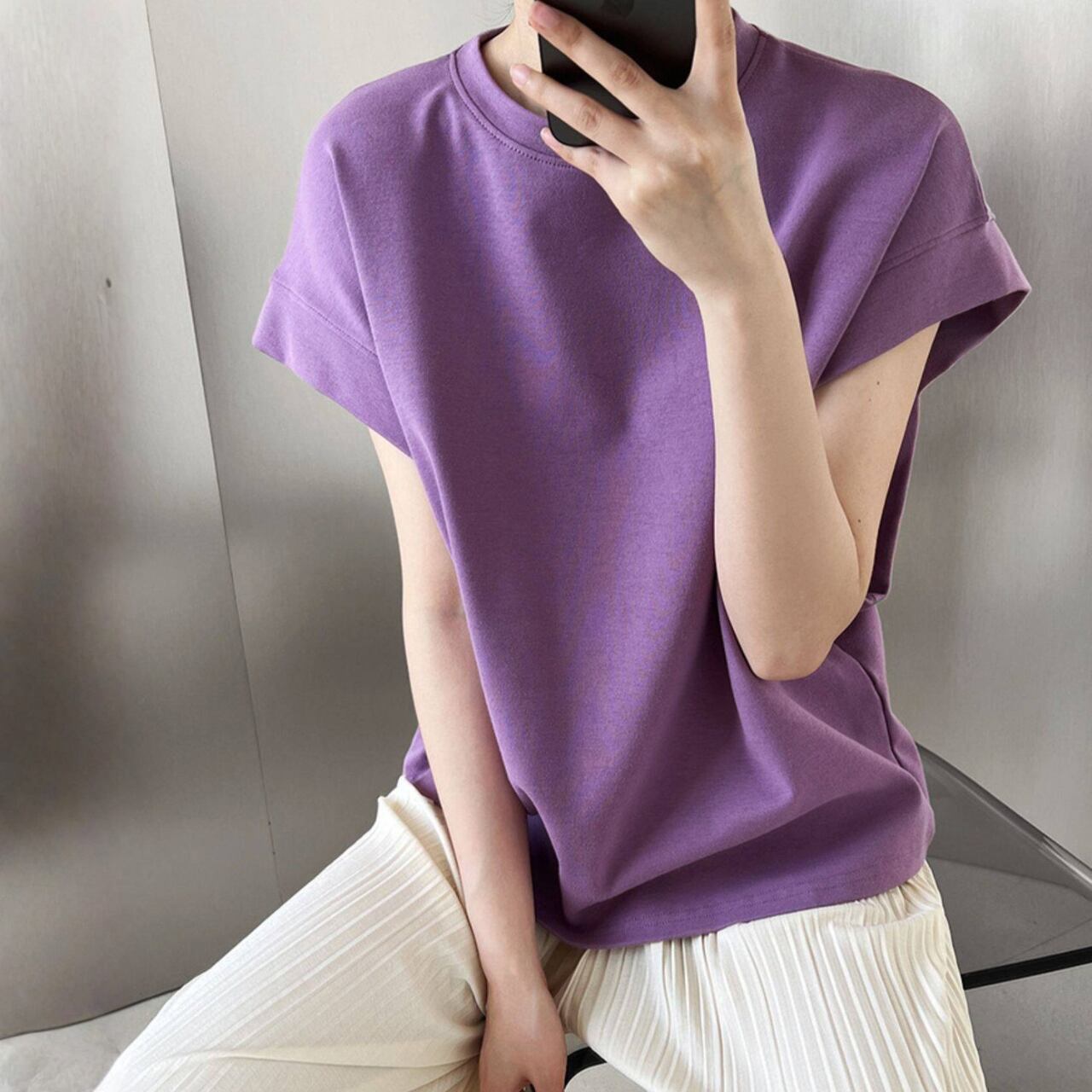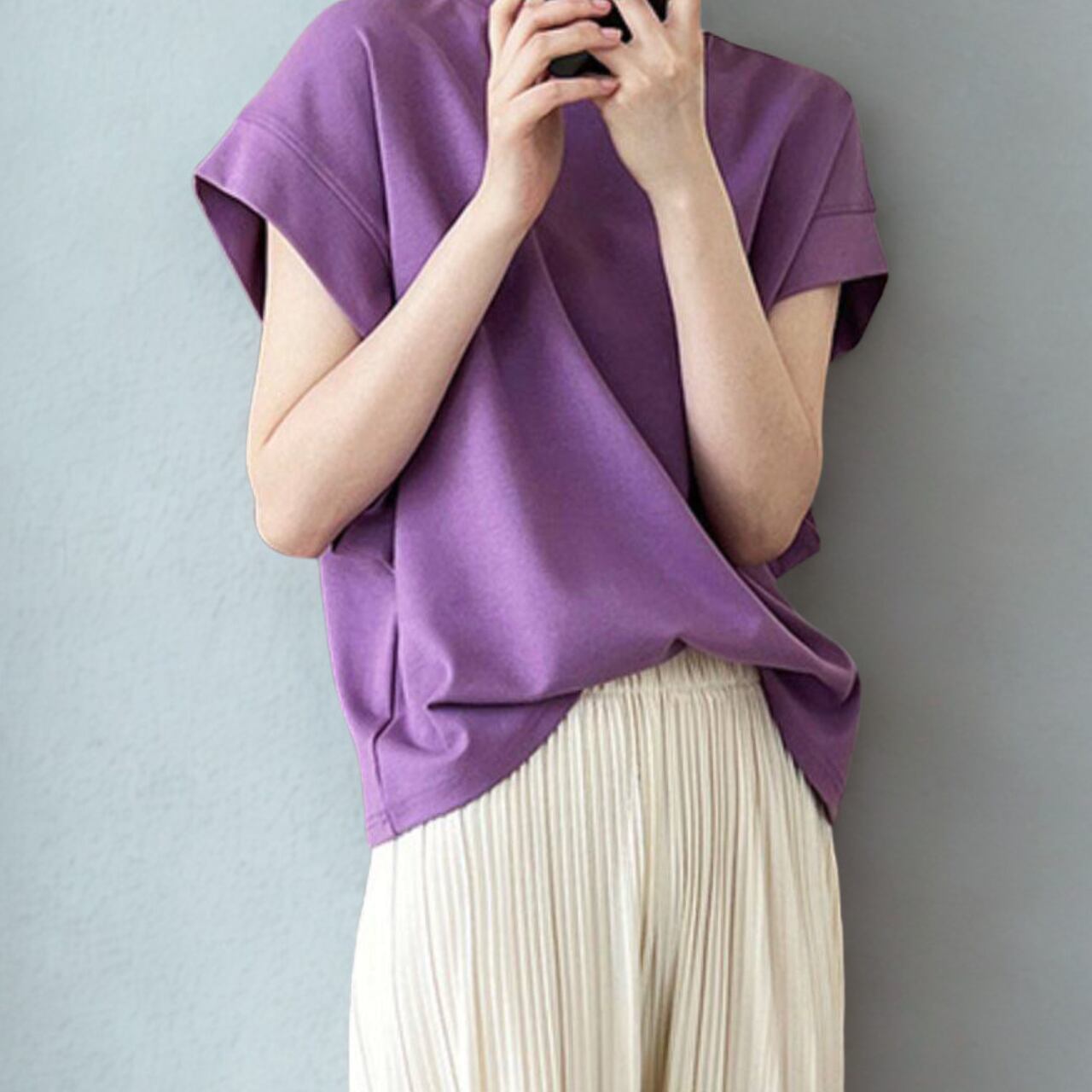 シンプルながらも洗練された印象のクルーネックTシャツ。