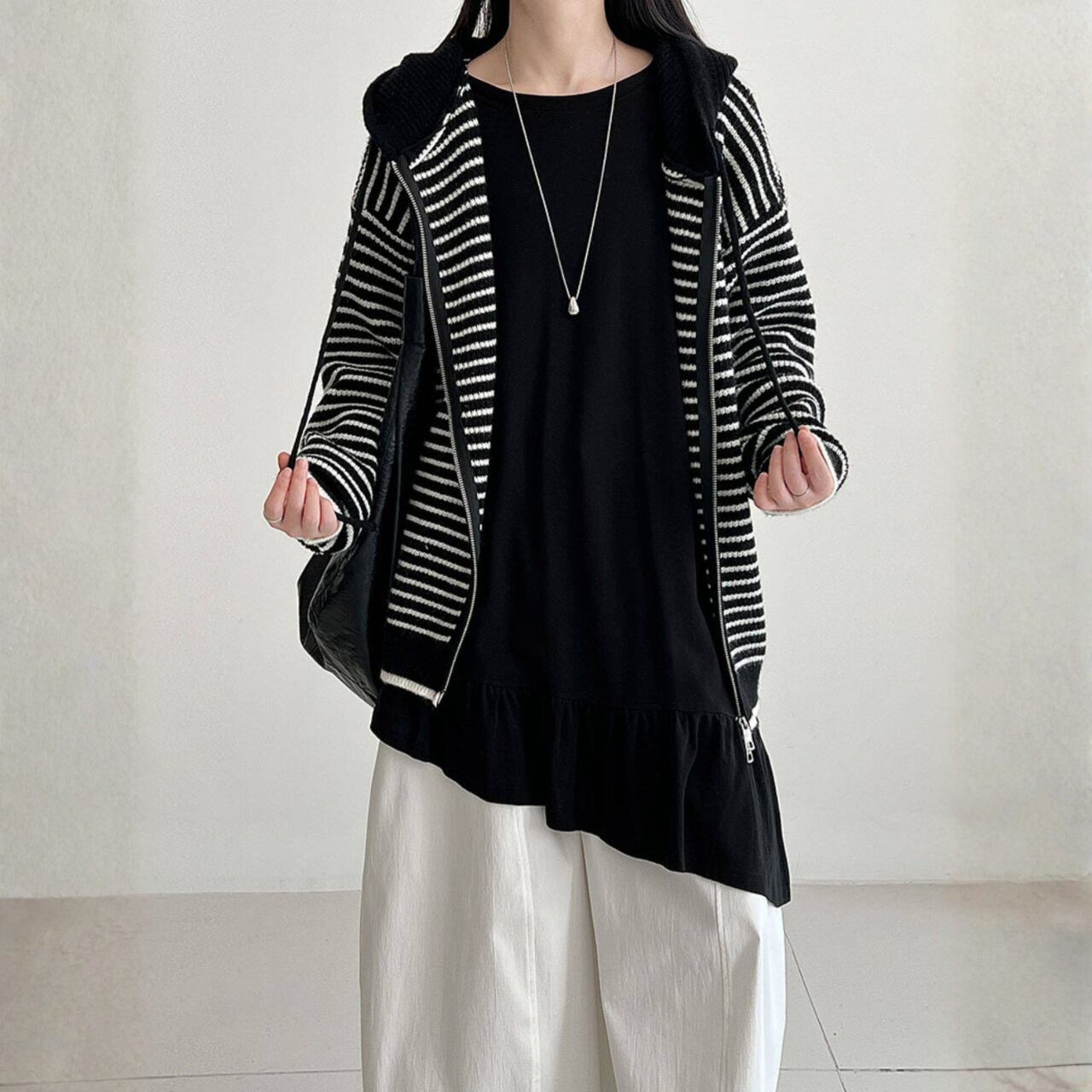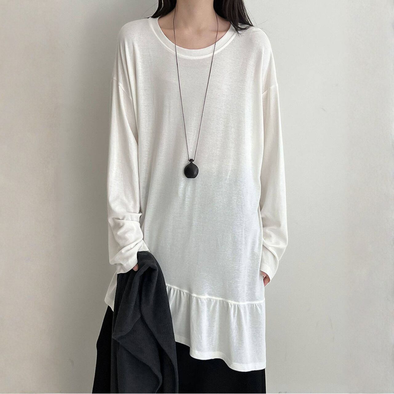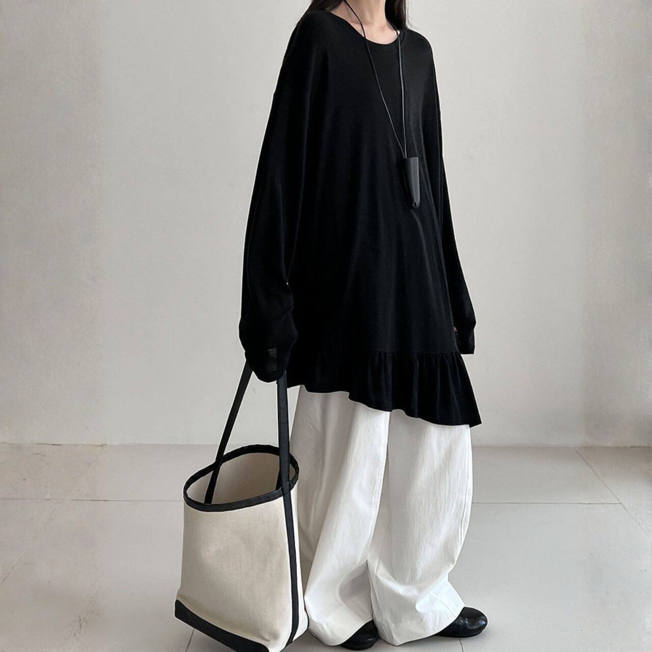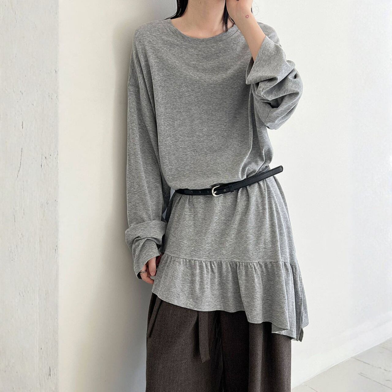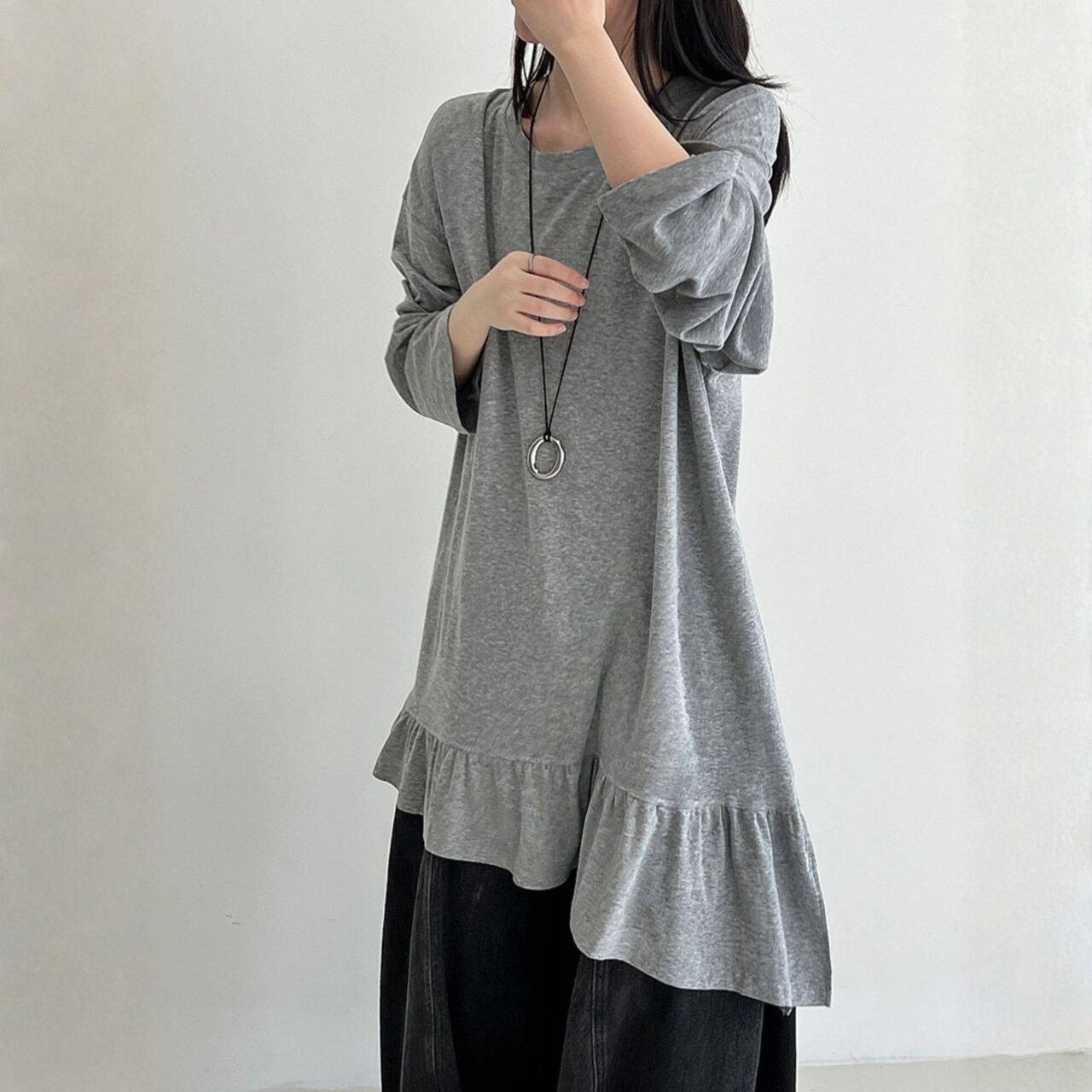 裾のフリルが歩くたびに揺れ、さりげない可愛らしさを演出します。普段使いから、ちょっとしたお出かけまで、幅広いシーンで活躍するアイテムです。