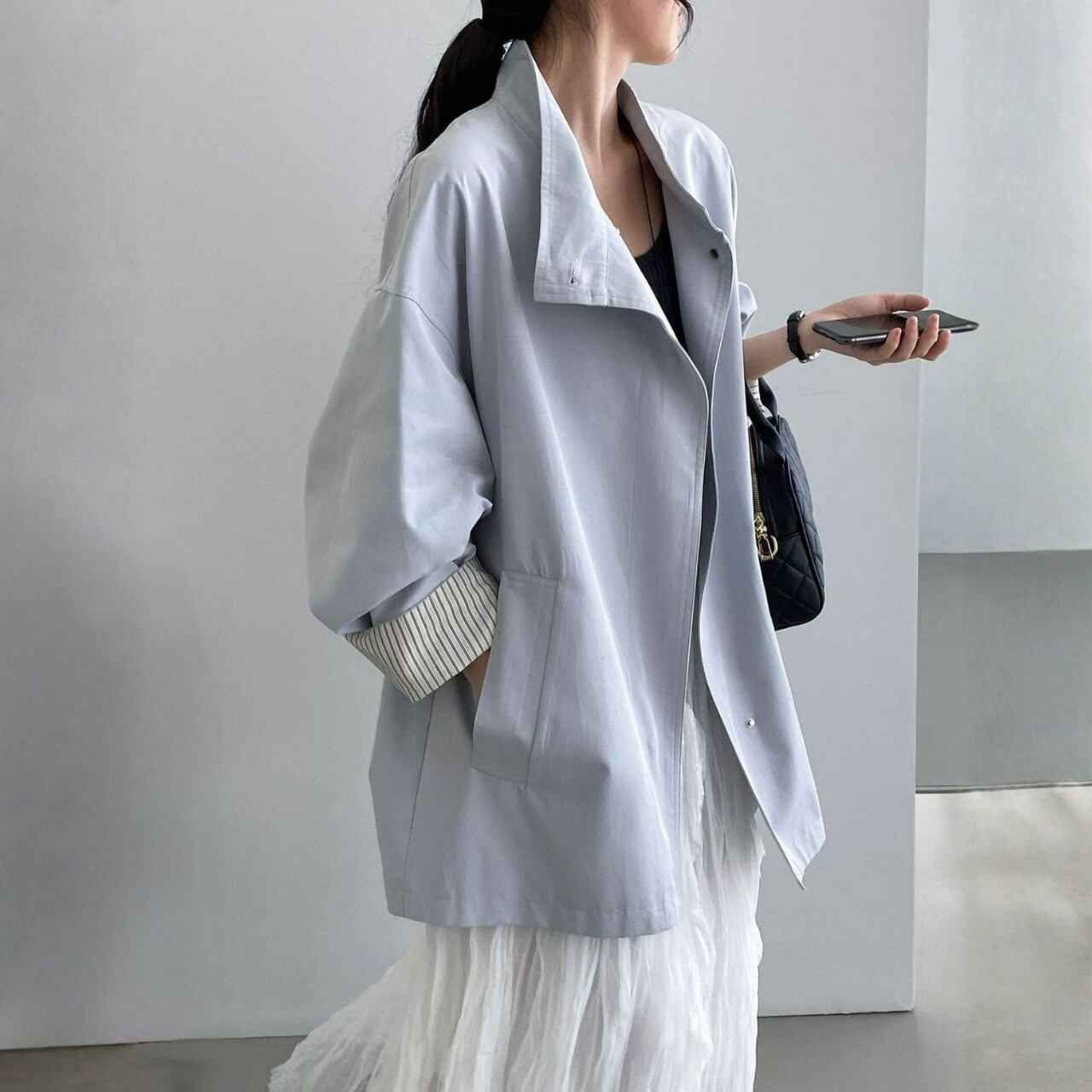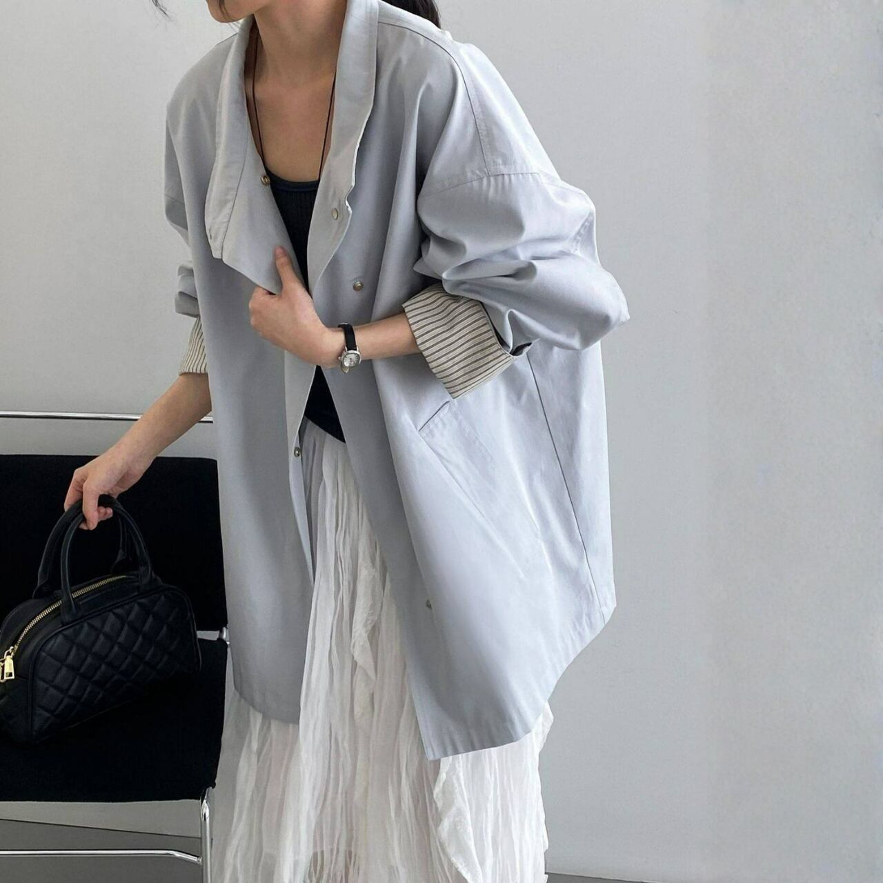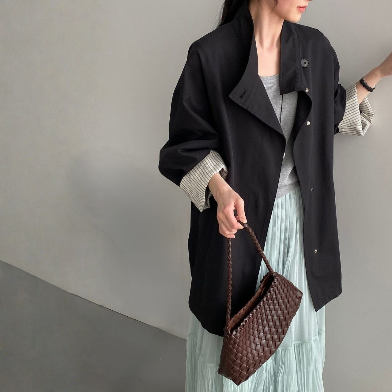 シンプルなコーディネートに羽織るだけで、こなれ感を演出できます。