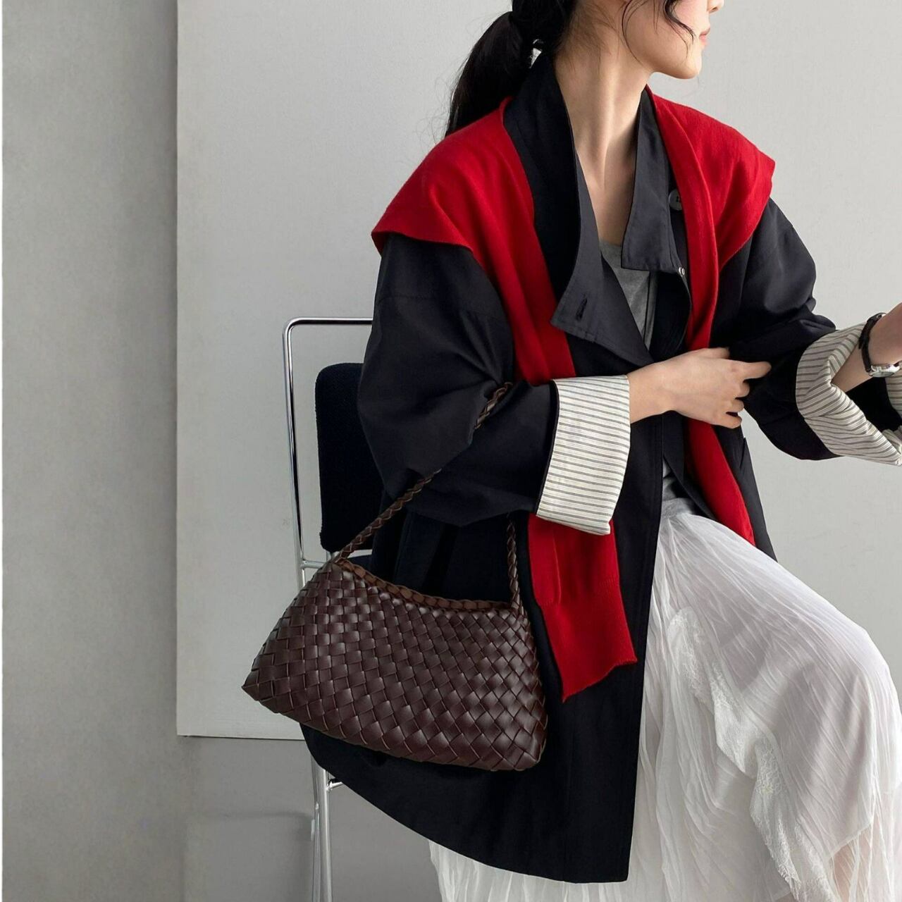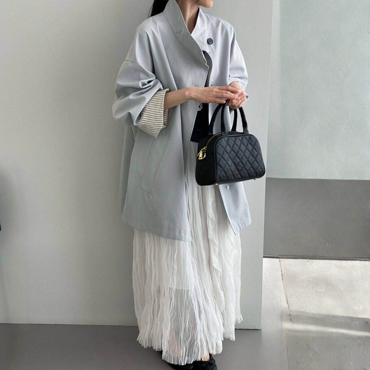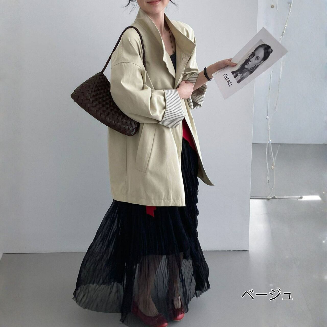 シンプルなコーディネートに羽織るだけで、こなれ感を演出できます。