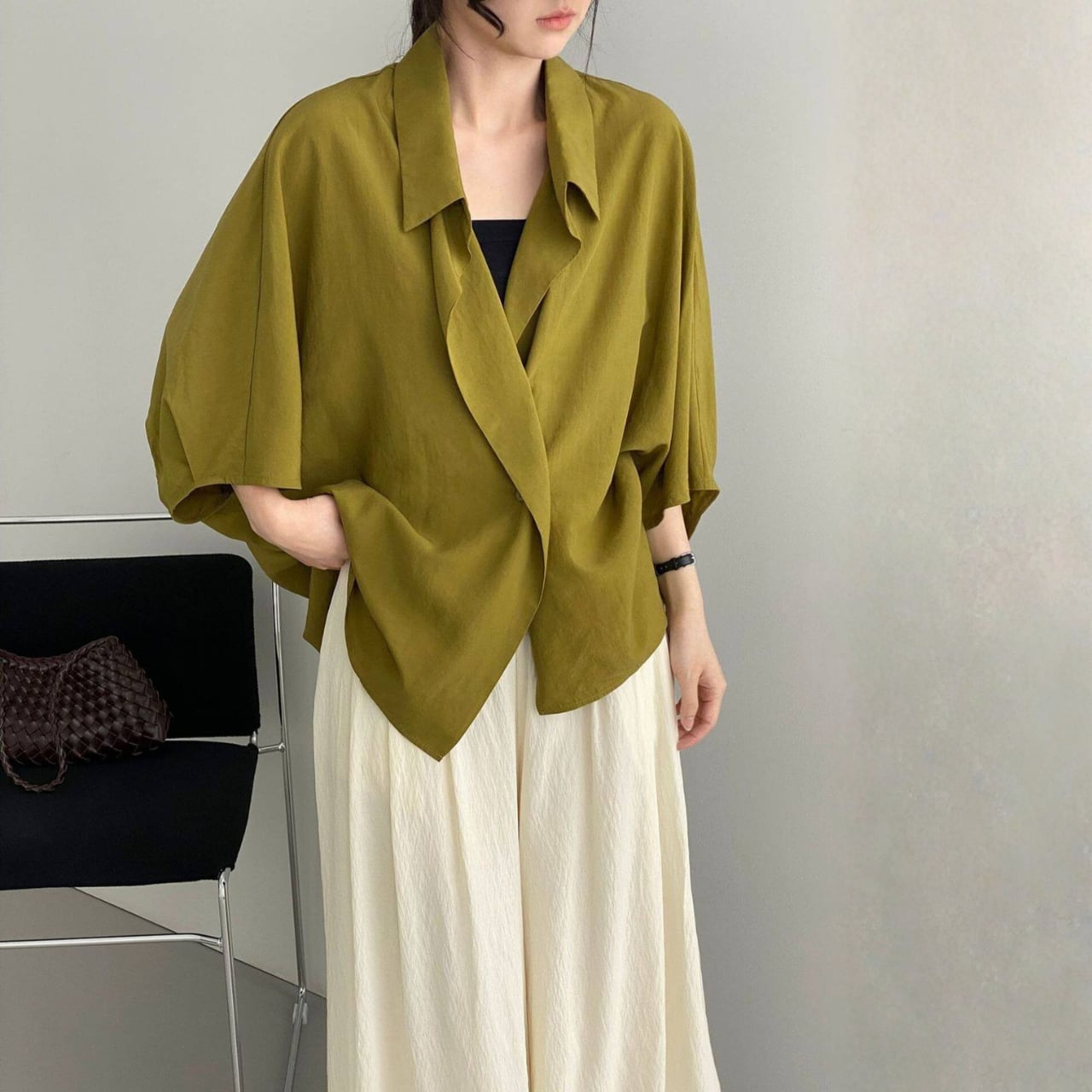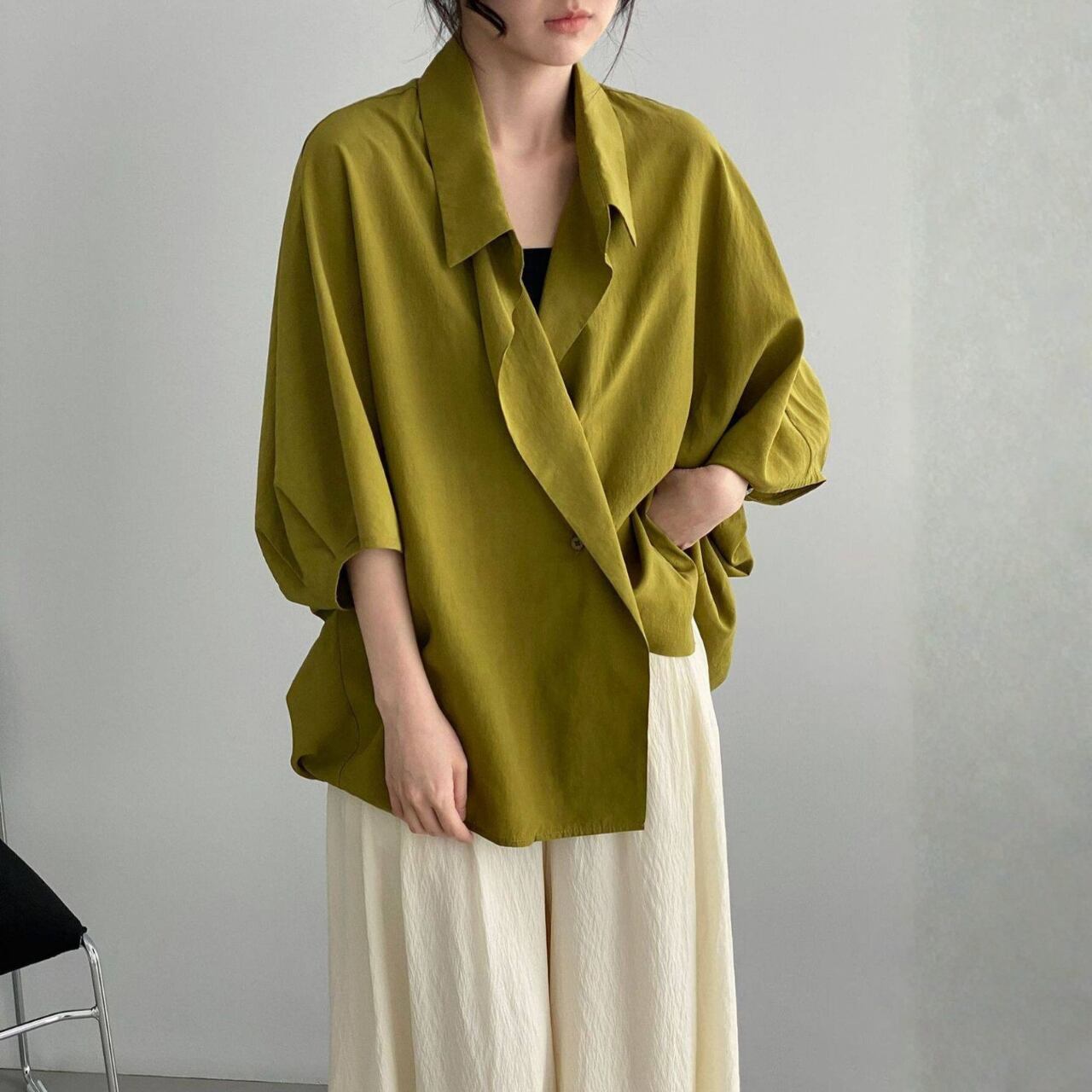 シンプルなデザインながらも、着るだけでおしゃれに見えるブラウスは、ワードローブにぜひ加えていただきたい一枚です。
