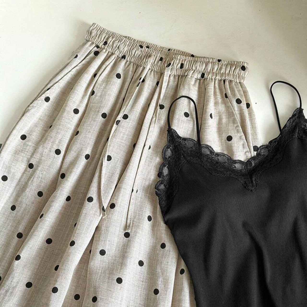 可愛らしいドット柄が、コーディネートに遊び心をプラスします。