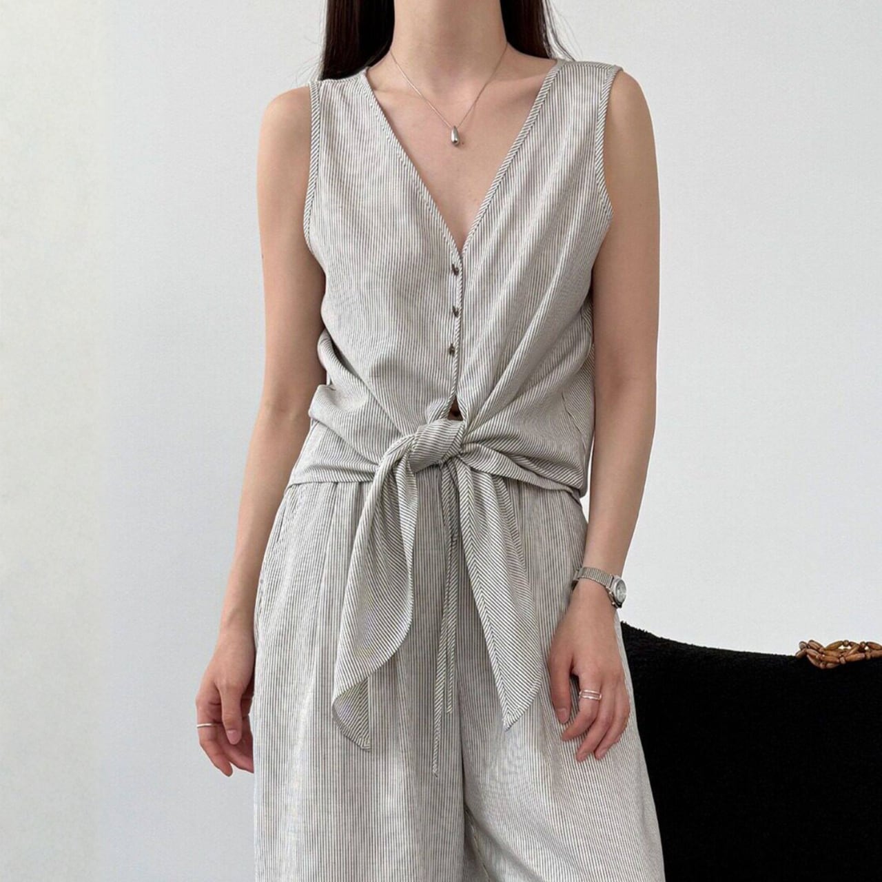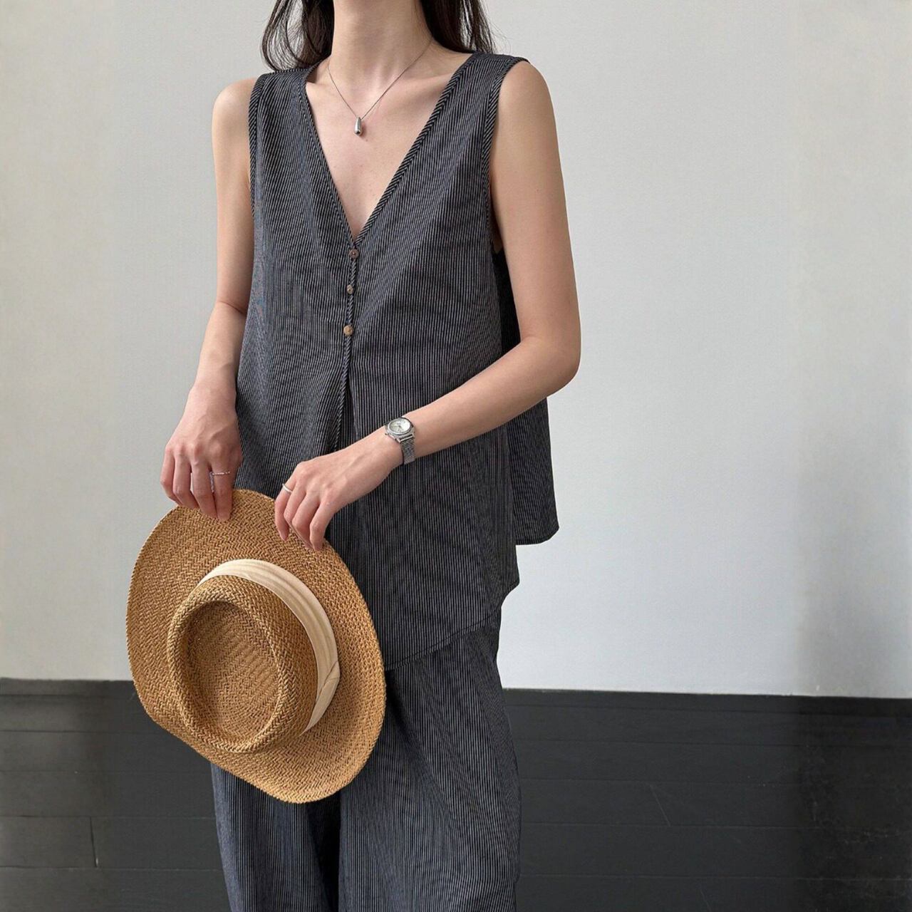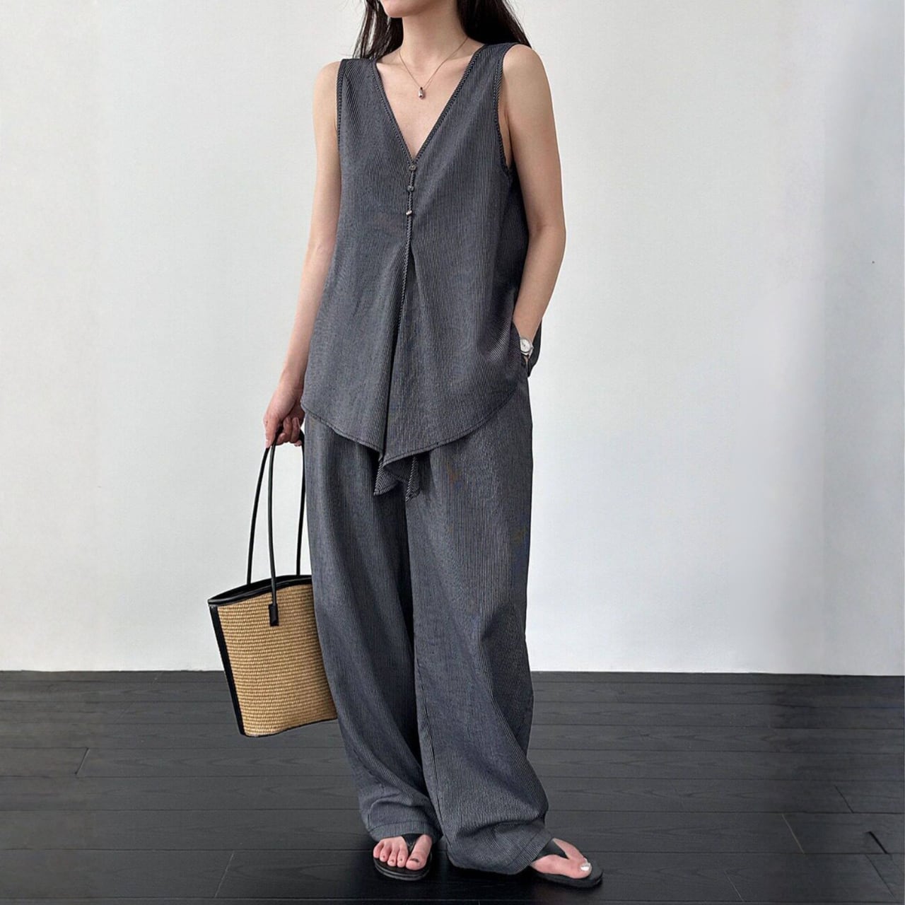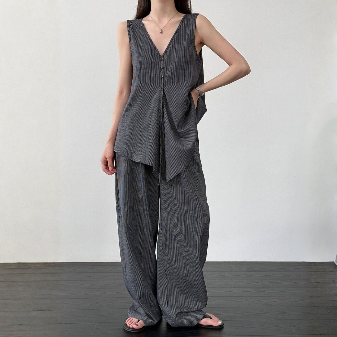 Vネックノースリーブ ワイドパンツ セットアップ N00371