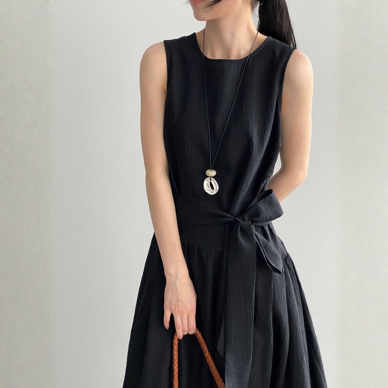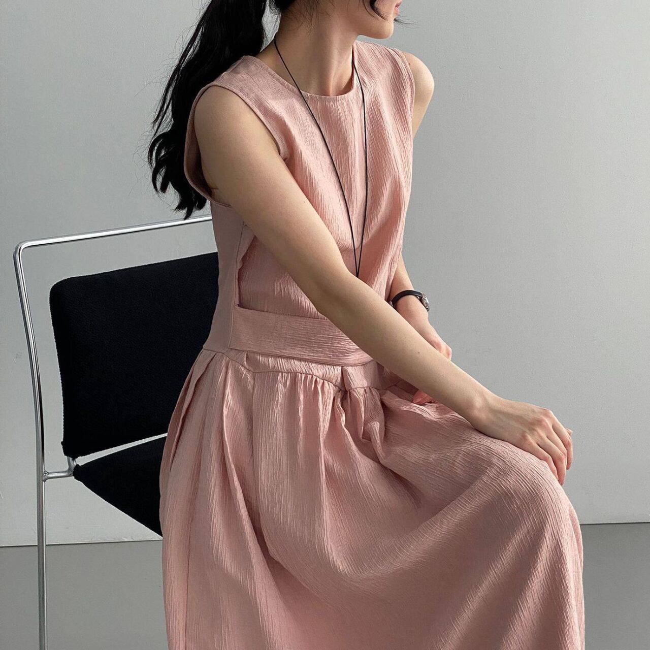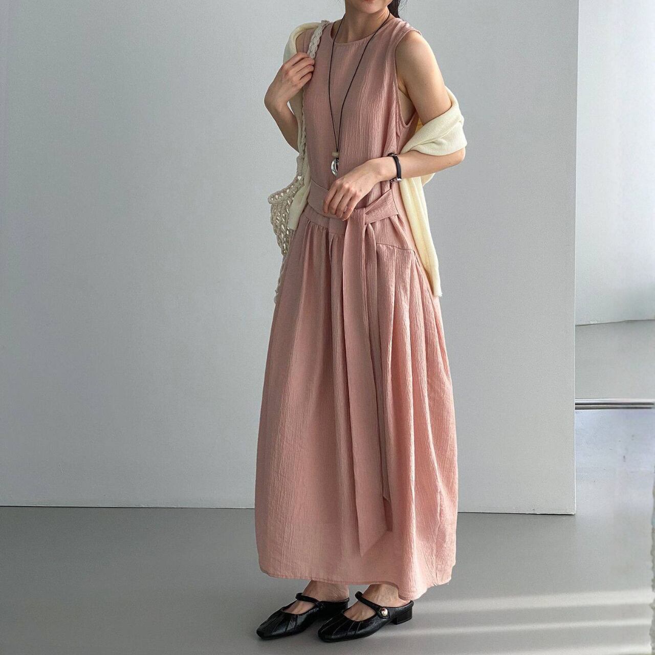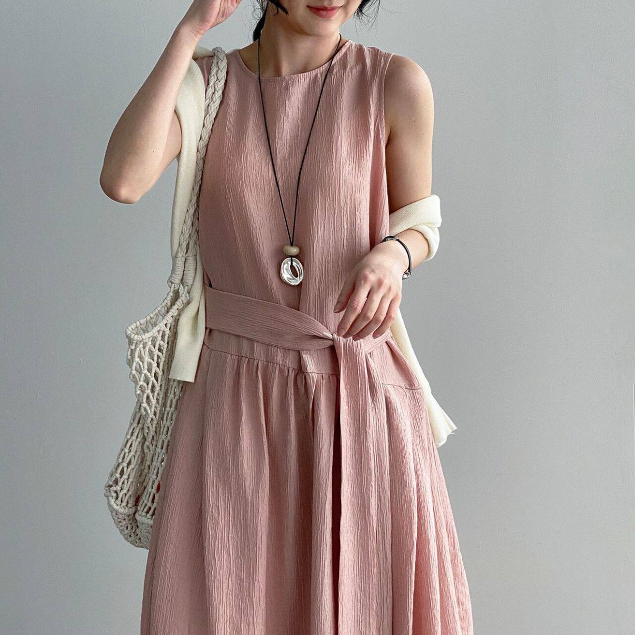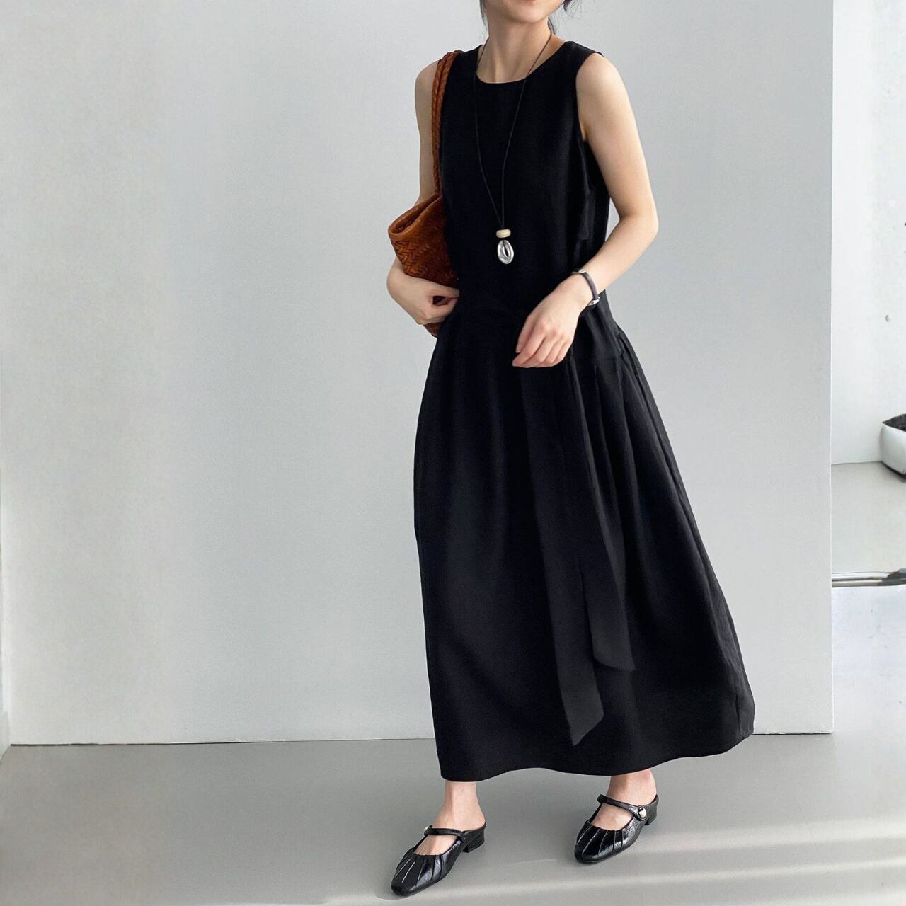 ウエストリボン ノースリーブワンピース N00380