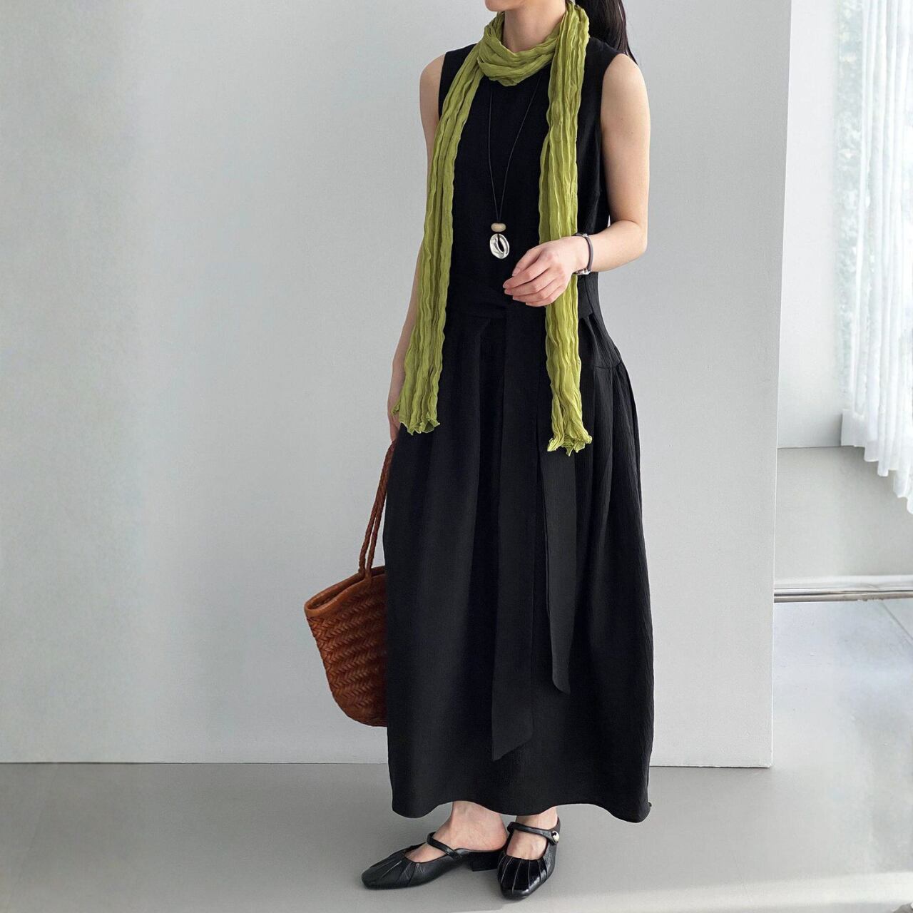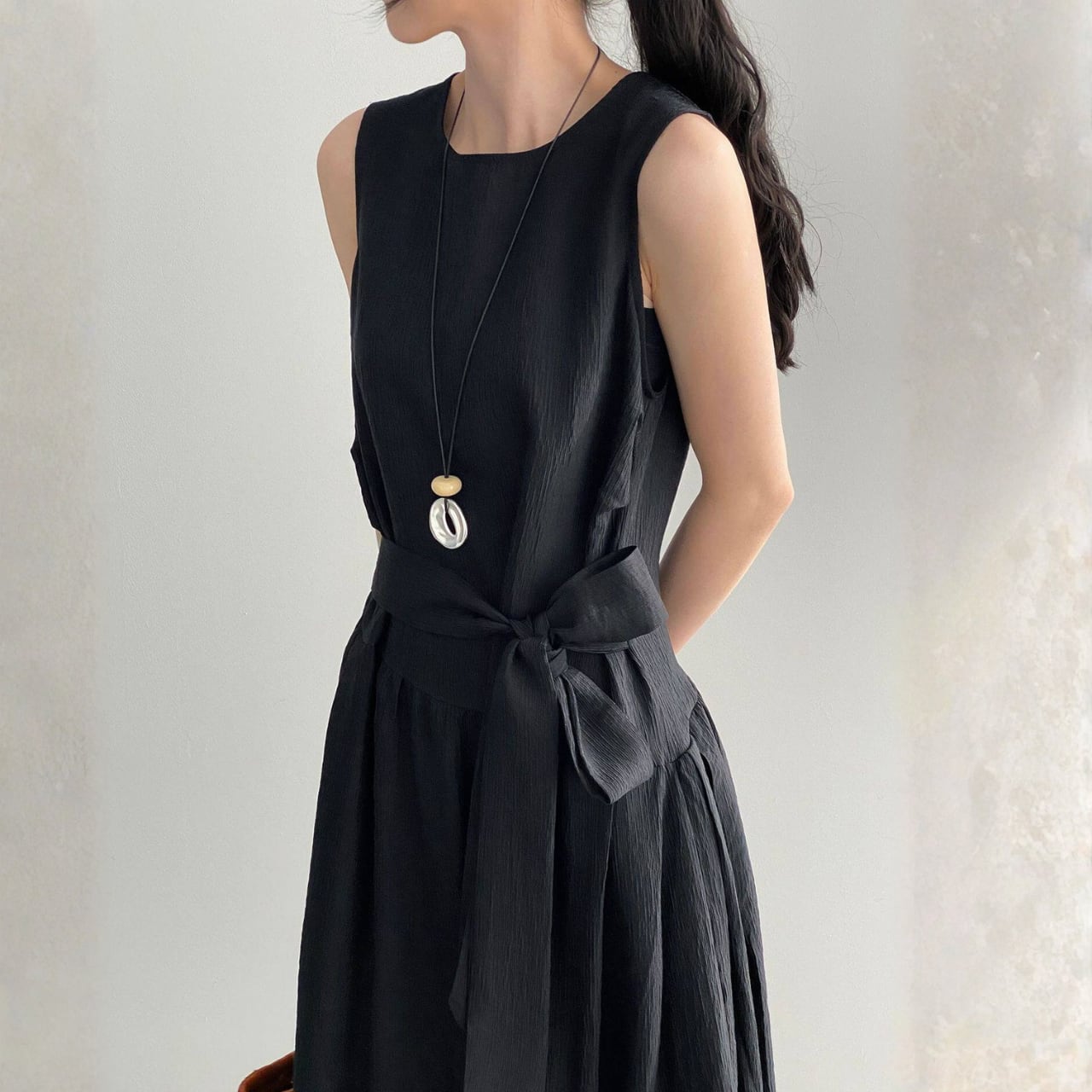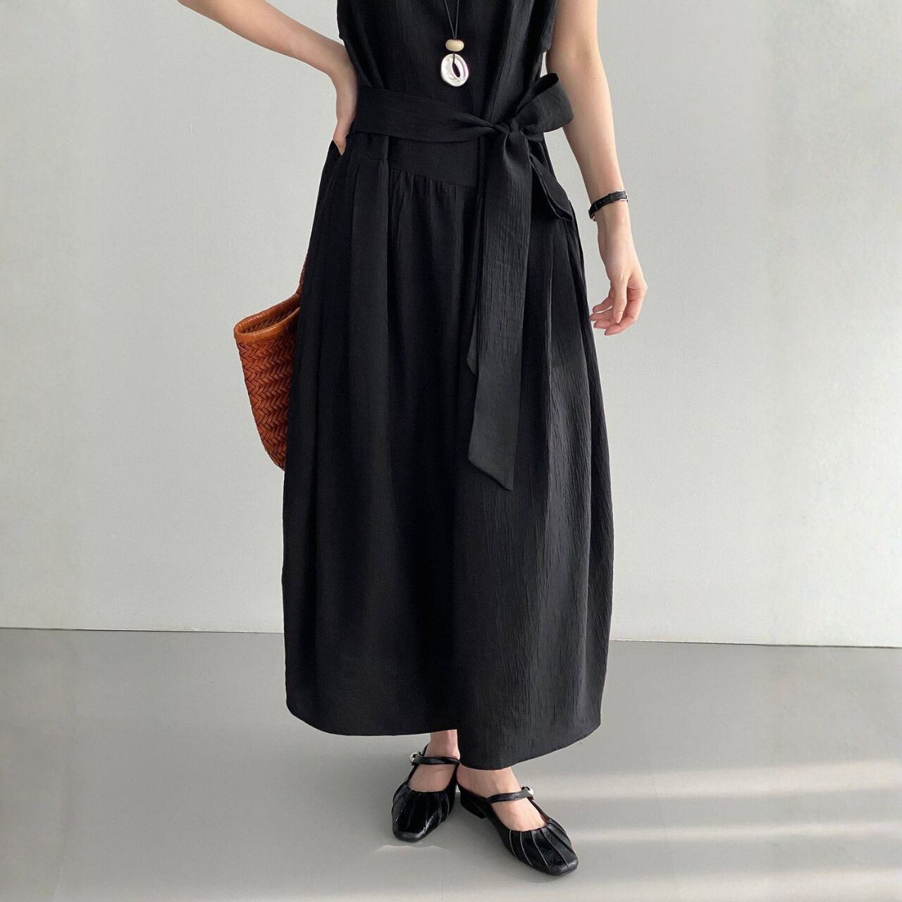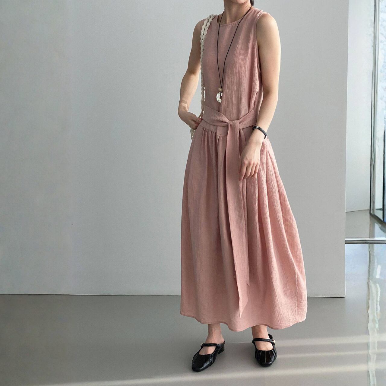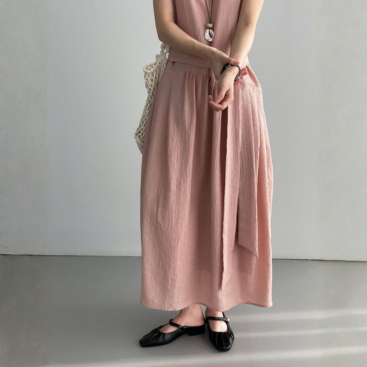 ウエストリボン ノースリーブワンピース N00380